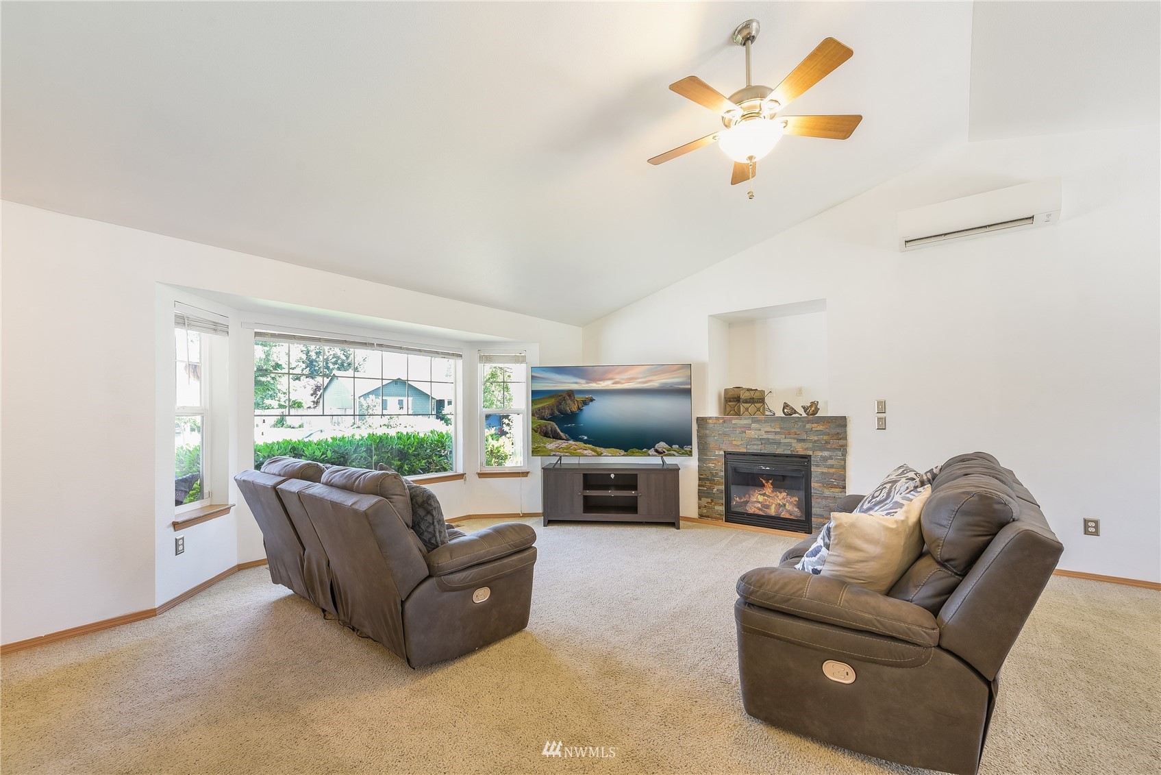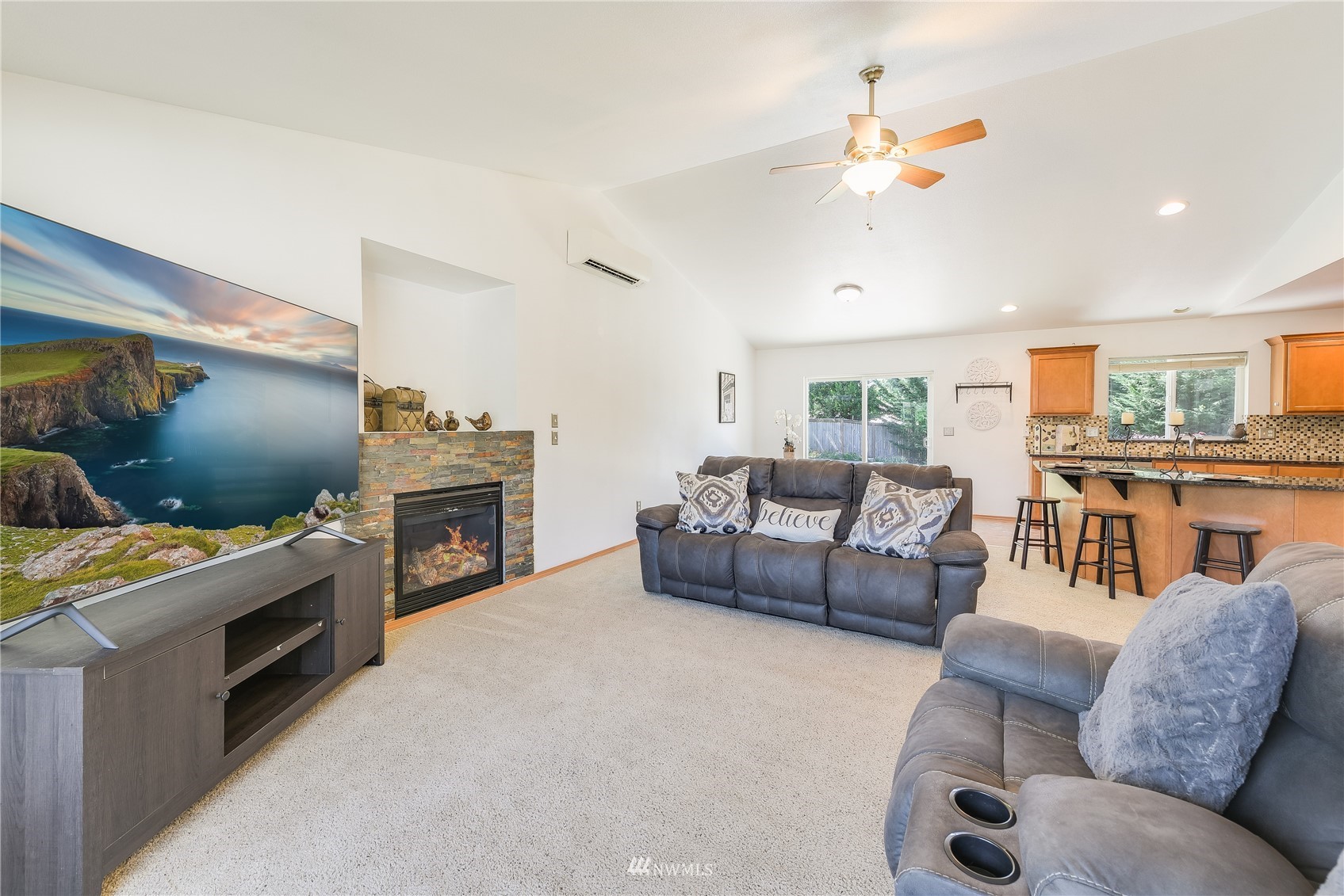 Welcome to this Wonderful 3 bed/2 bath rambler on a 12,000+ Sqft lot with a beautiful view of the mountains. This light & bright home has an open floor plan with vaulted ceilings, gas fireplace, air conditioning and a large picture window with mountain views. Spacious updated kitchen w/large breakfast island, granite counters, under mount sink, new SS appliances which includes a gas stove. Primary bedroom has 2 closets, and primary bath. Primary and 2nd bath have been updated with new granite counters, new faucets, sinks and flooring. Large fenced backyard has patio and plenty of space for a vegetable garden/flower garden. Tons of parking space and a new graveled gated RV/boat driveway. Conveniently located & close to all recreational fun.