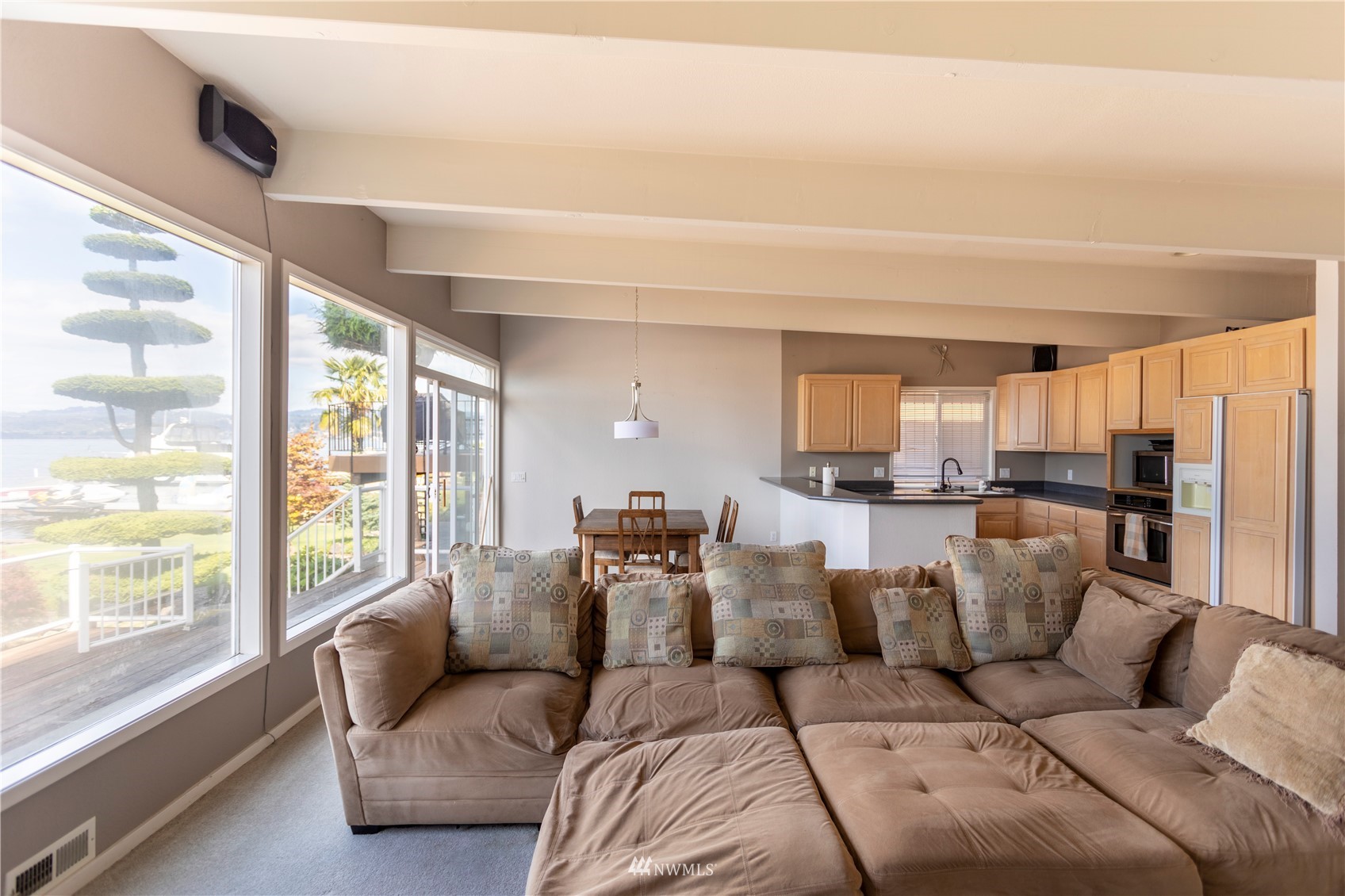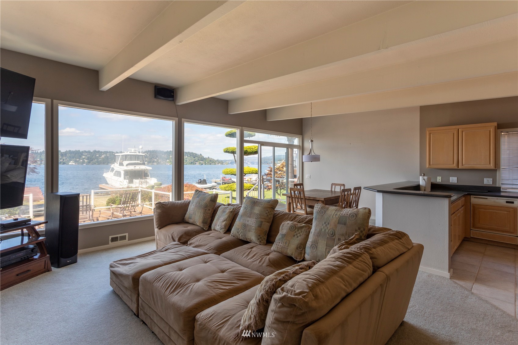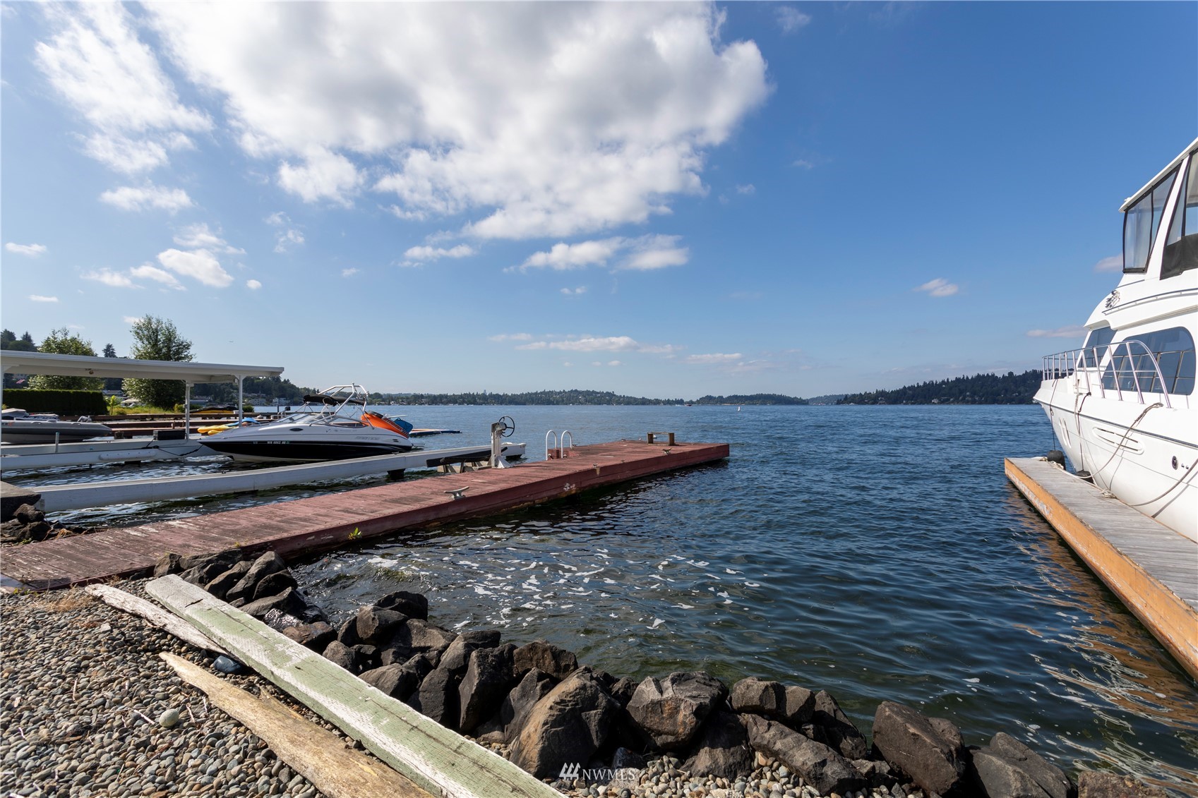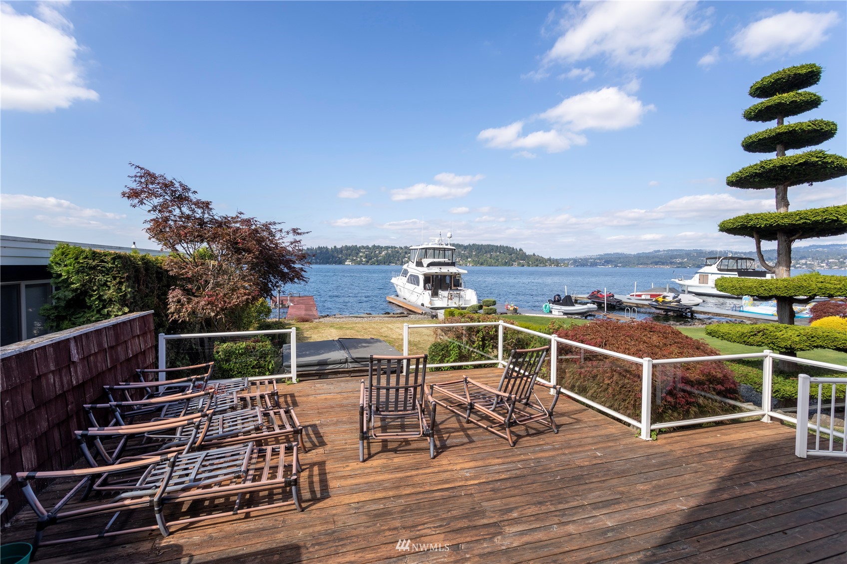 A surface area of 21,000+ Acres of water wonderland that we call Lake Washington is just outside of your back door. The rigors of the day seem to melt away when you arrive to this Oasis on the shores of one of the finest natural lakes in the country. Your own private deep water moorage dock with attached water toy lift. Positioned well below the street level providing for the additional serenity that is inherent to life on the shores. Huge detached garage for the large SUV's and water toys with a spacious living space above for guests or potential income. Enjoy the Blue Angels, fish or just watch the boats pass by from your deck or dock. The perfect opportunity to enjoy all that Lake Washington has to offer.