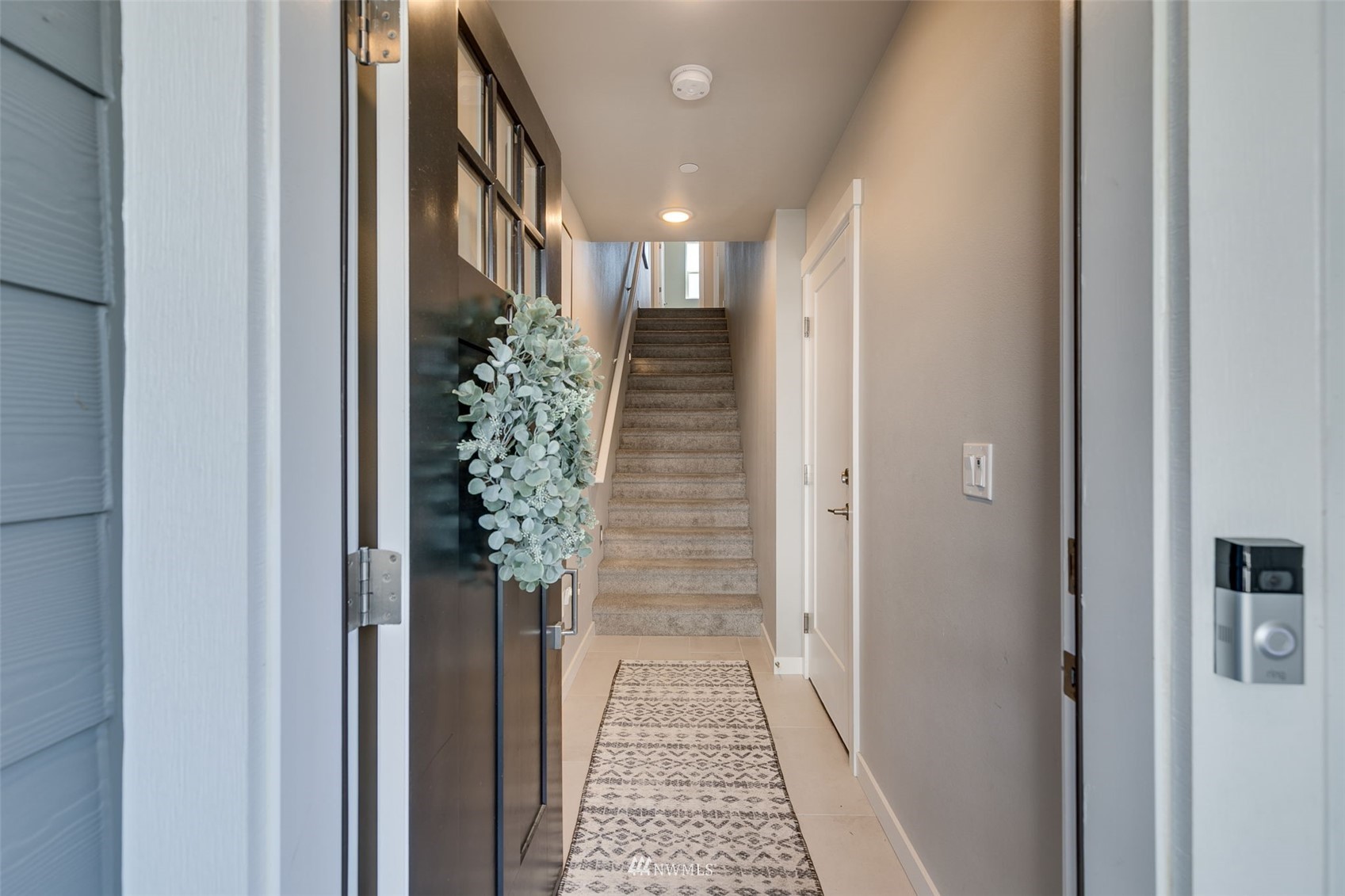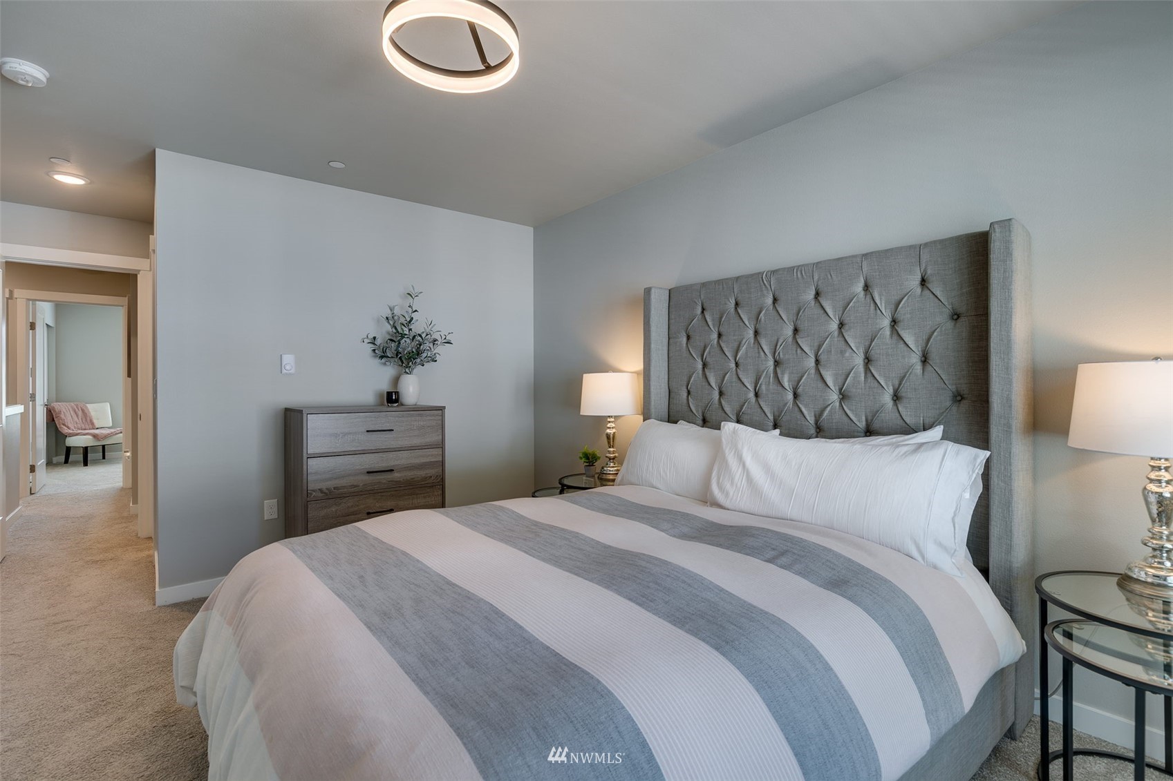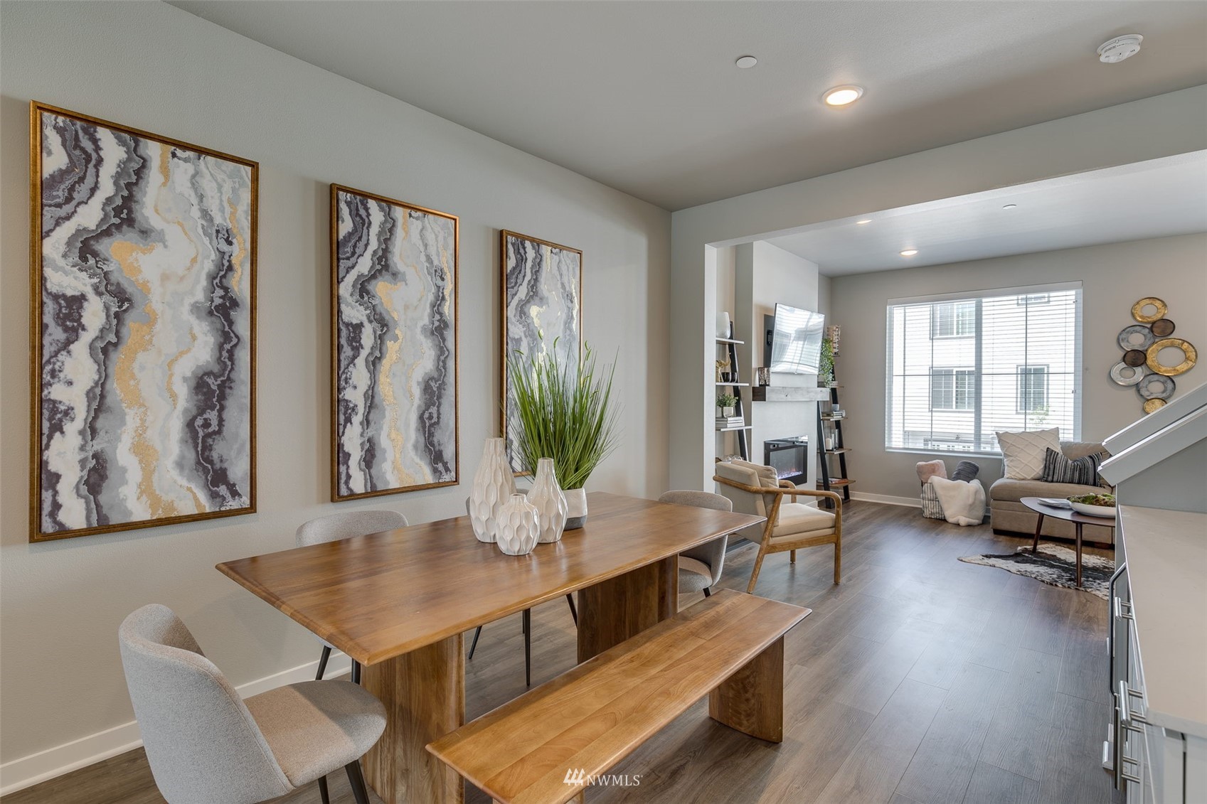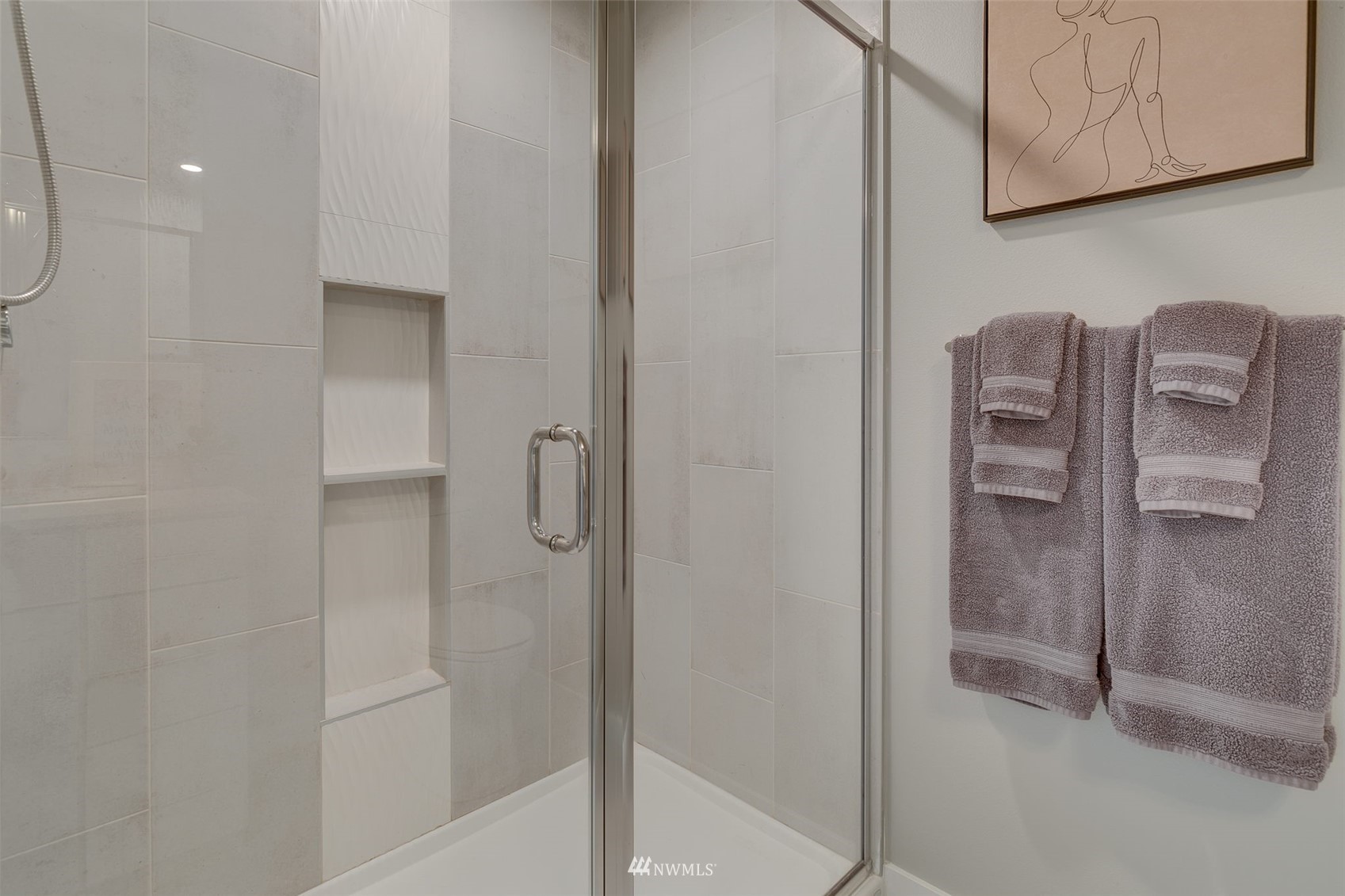 Modern Open Concept. White cabinetry, Quartz counters, Stainless Steel appliances, Built-in Wine Bar with Beverage/Wine Fridge, Wide Plank Laminate Wood Floors, 9' Ceilings, Oversized Windows in Family Room with Ample Lighting, Electric Fireplace w/Mantle, Plus Guest Bath on Main Floor. Primary Bedroom features Barn Door Walk-in Closet and Custom Oversized Tile Shower. Second Bedroom has In-Suite Full Bathroom. Full Size Front Load Washer and Dryer. Energy Efficient, Ductless Heat/AC System. Two Car Tandem Garage; Low Monthly Dues; Minutes to Hwy 9, I-5; New Costco is in walking distance. Lake Stevens excellent Schools and Convenient to Lake Stevens' Boat Launch and Centennial Trail! Wonderful community to call HOME!
