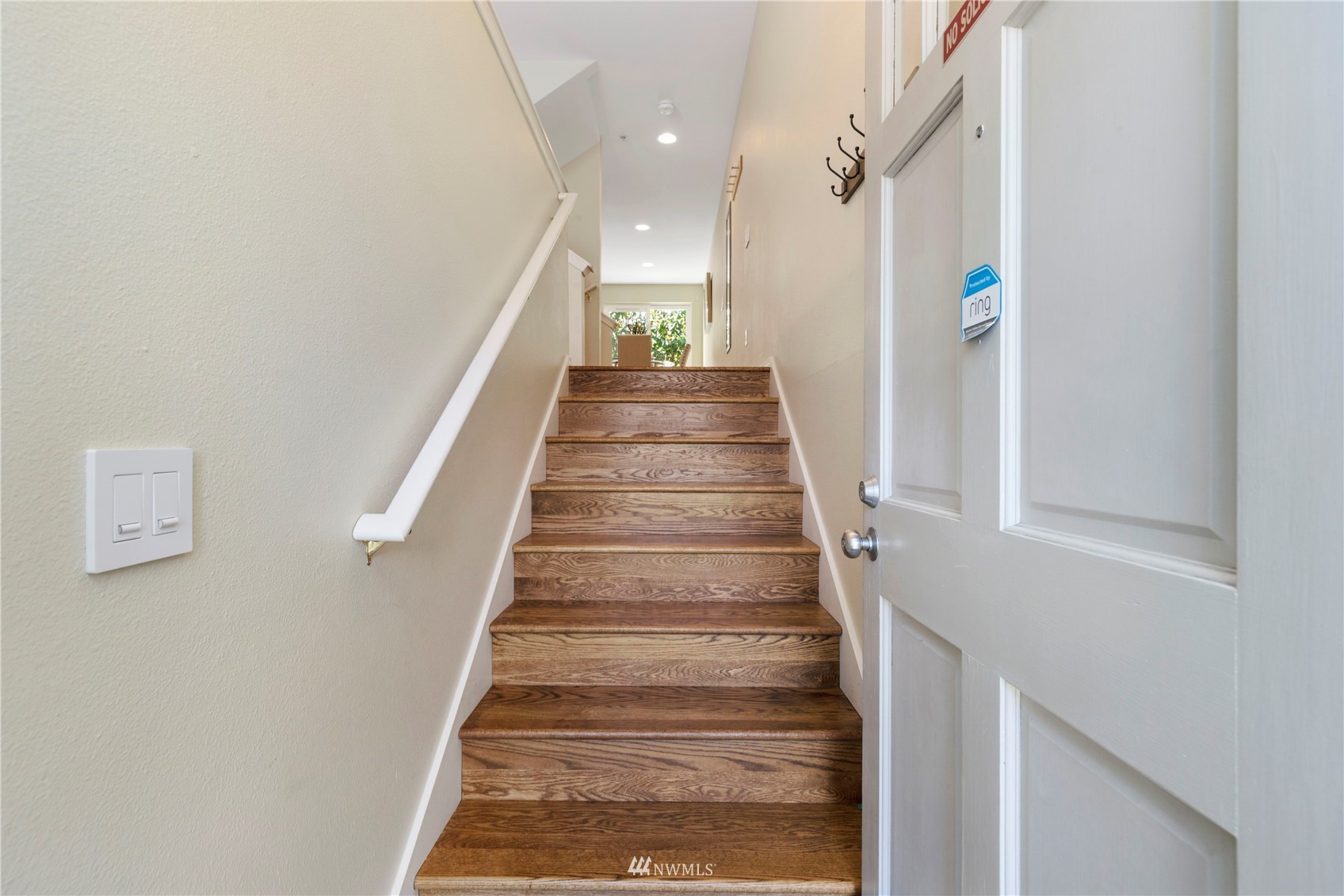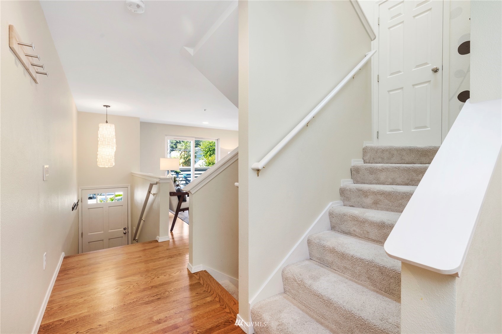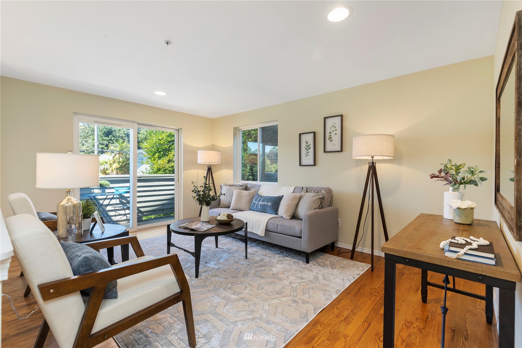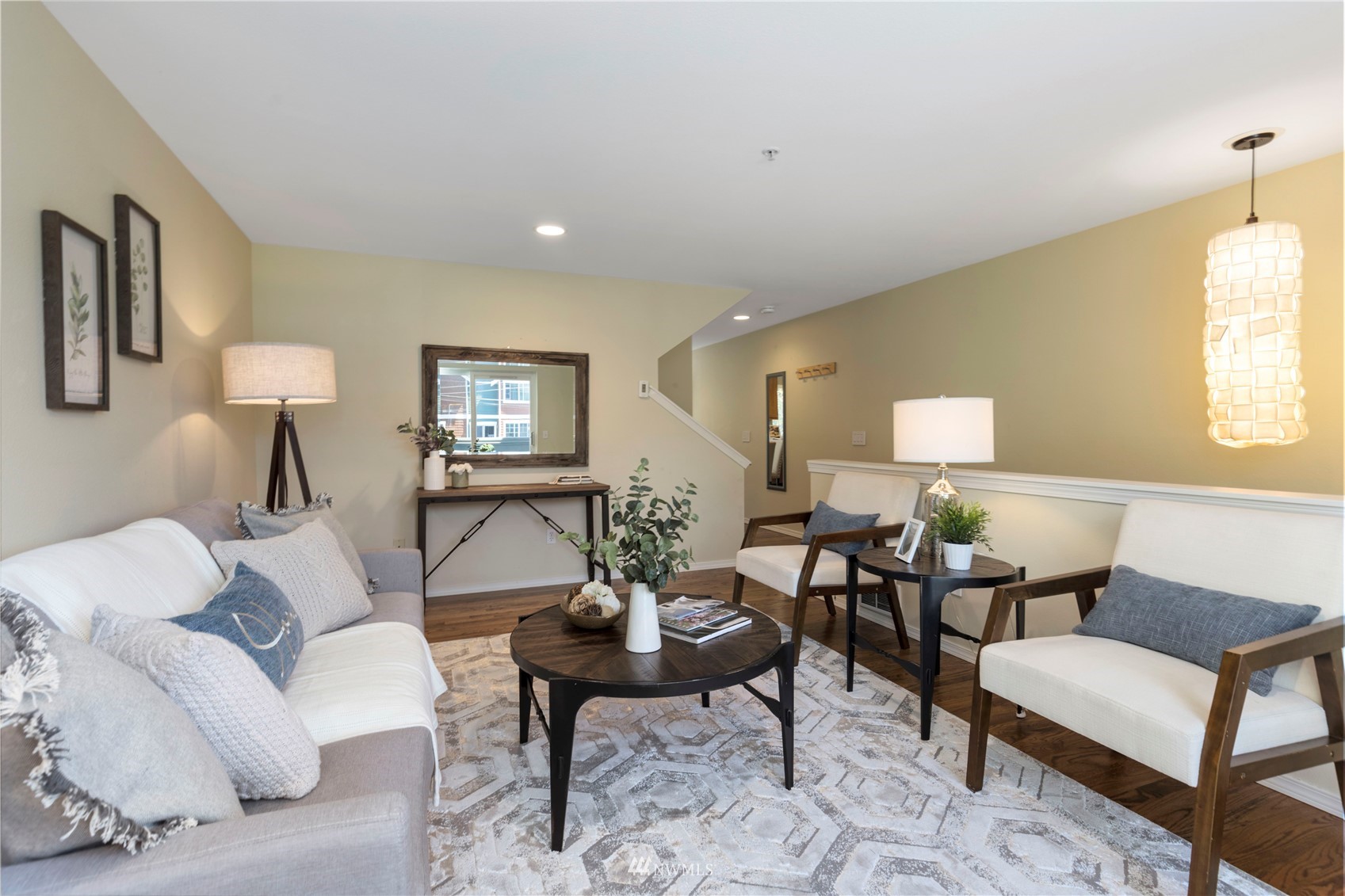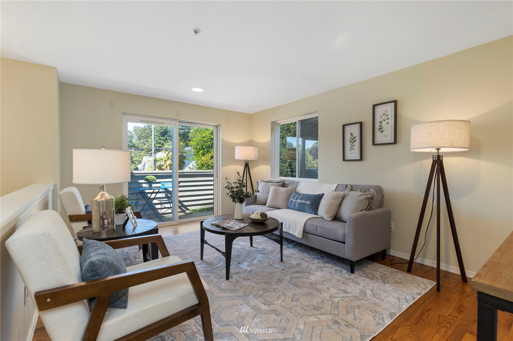 Welcome to this well maintained and move-in-ready end unit townhome (NO HOA) with everything the Golden Garden area has to offer! You will find the living room, kitchen and upper bedrooms all with ample natural light, also featured are two decks with a low maintenance paved backyard for outdoor pleasure. Vaulted ceiling upper level bedrooms, also a lower level ensuite bedroom that easily turns into a home office or yoga space, garage with 2 extra parking spaces on driveway. Minutes walk to Microsoft Connector, Golden Gardens park and trail, Caffè Fiorè, a great spot to set roots! Pre-inspection available!
