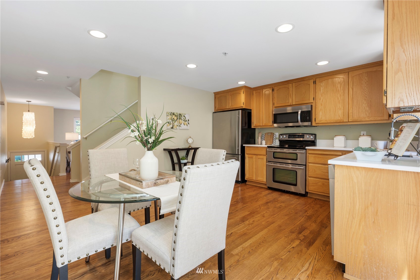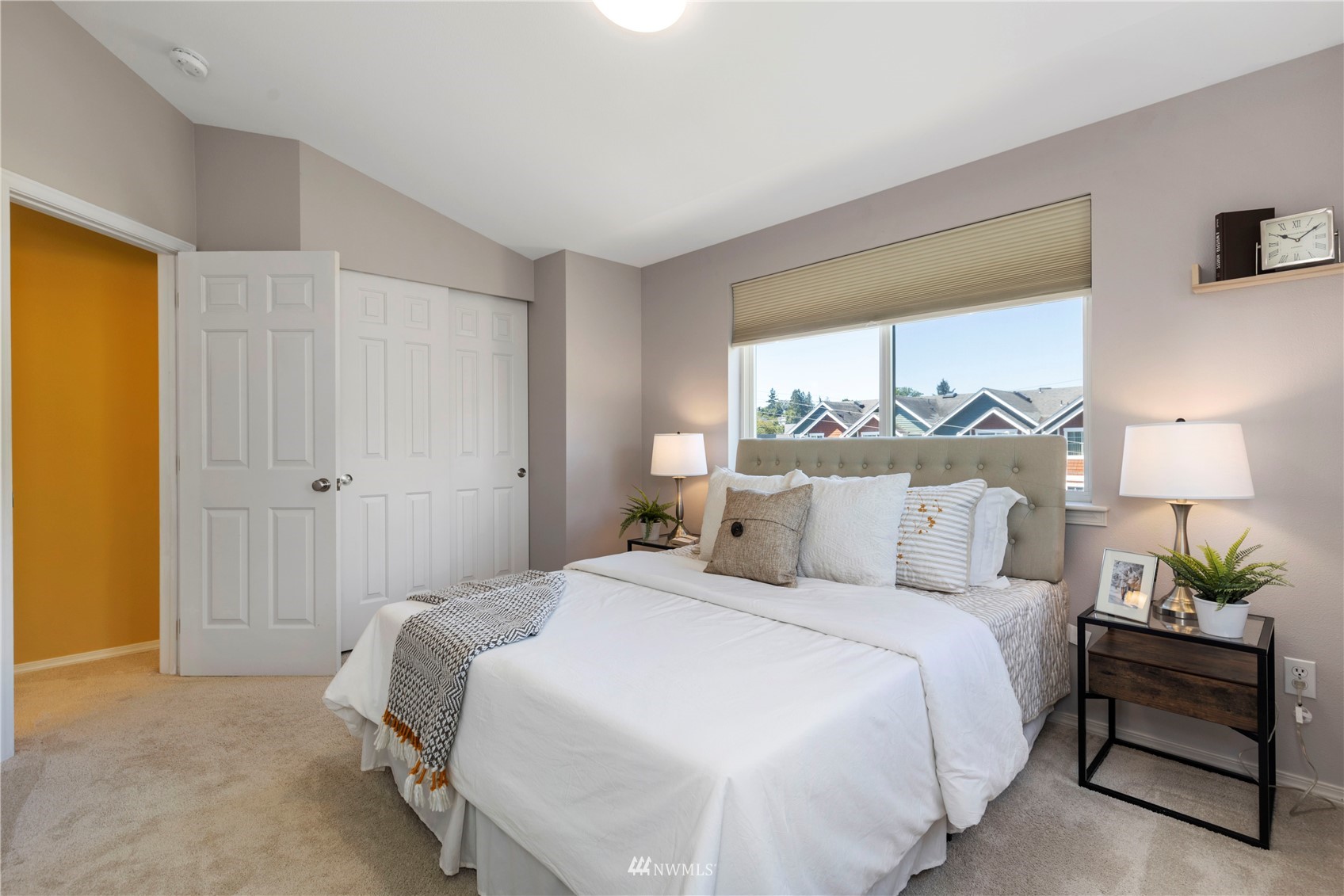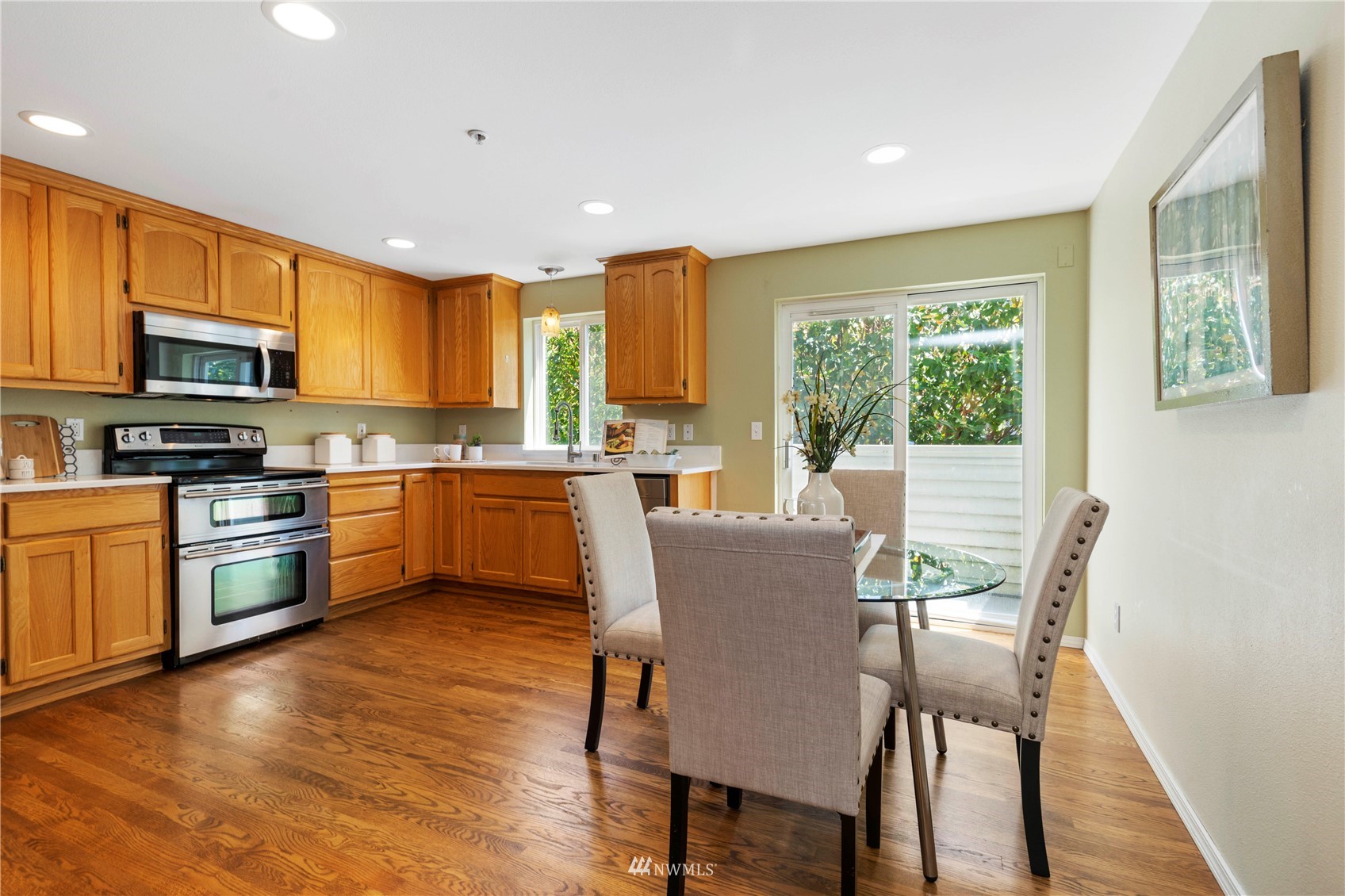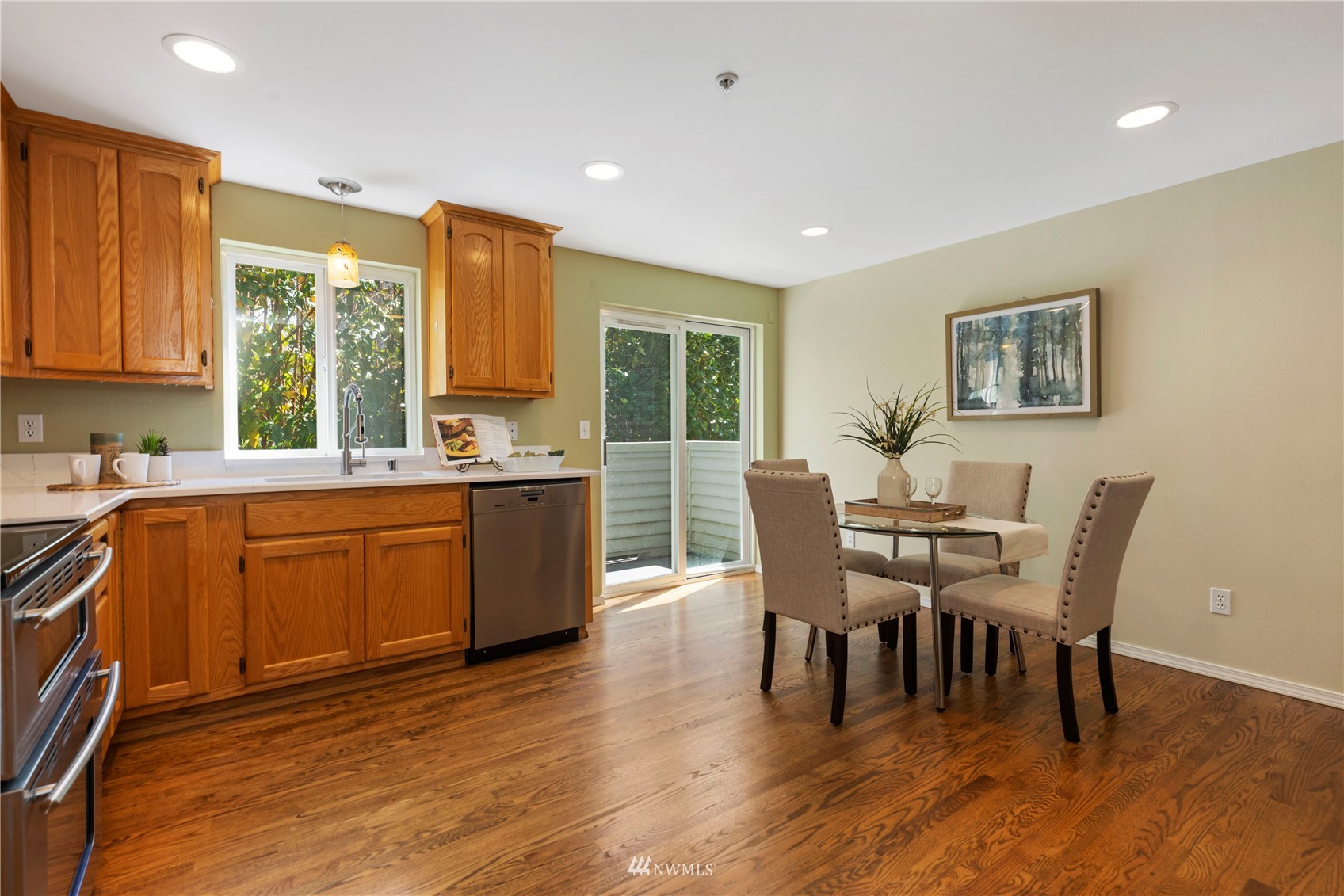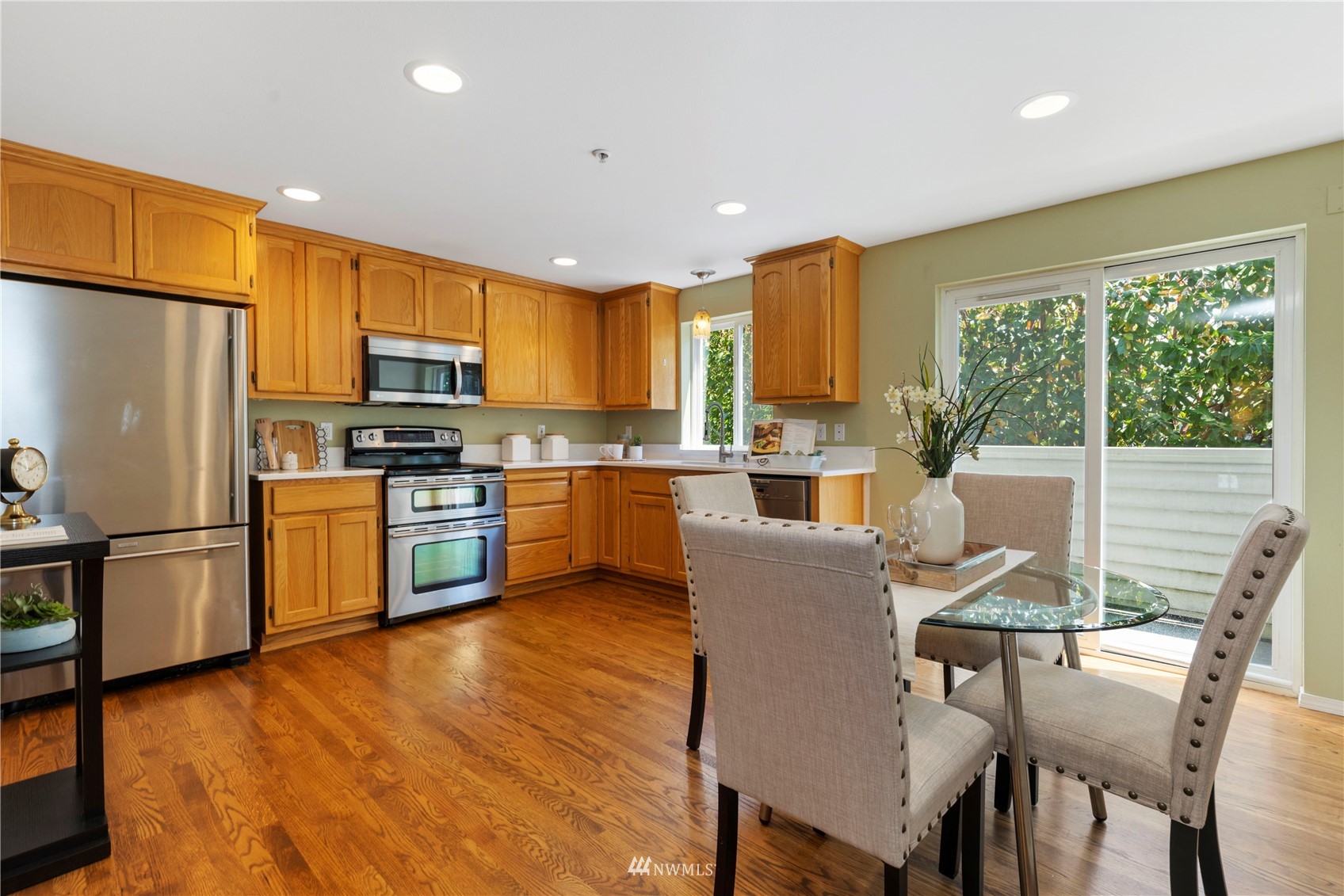 Welcome to this well maintained and move-in-ready end unit townhome (NO HOA) with everything the Golden Garden area has to offer! You will find the living room, kitchen and upper bedrooms all with ample natural light, also featured are two decks with a low maintenance paved backyard for outdoor pleasure. Vaulted ceiling upper level bedrooms, also a lower level ensuite bedroom that easily turns into a home office or yoga space, garage with 2 extra parking spaces on driveway. Minutes walk to Microsoft Connector, Golden Gardens park and trail, Caffè Fiorè, a great spot to set roots! Pre-inspection available!