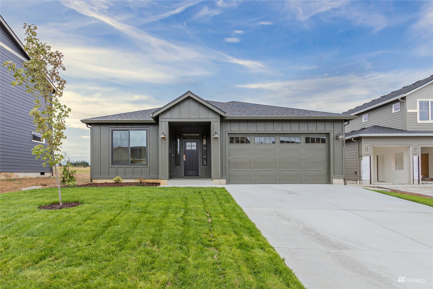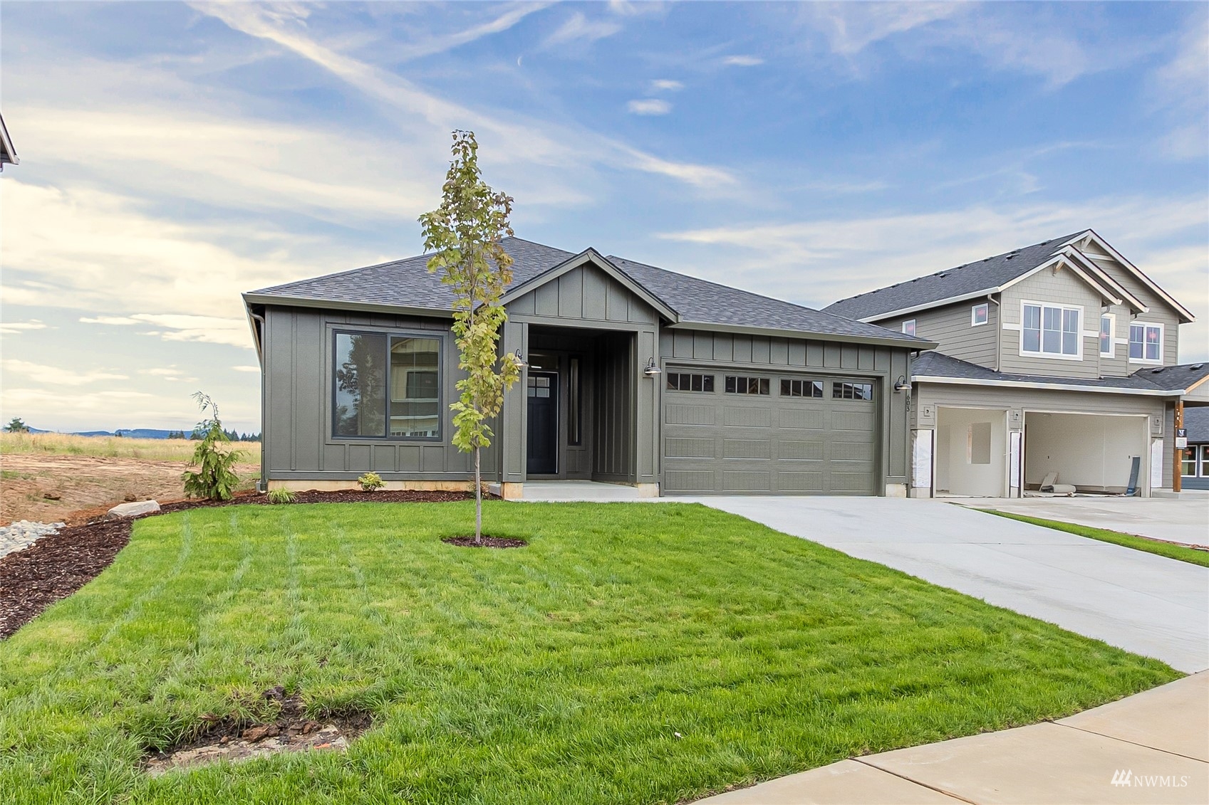 New Baker Plan Modern Farmhouse Designer Home is now complete and available for purchase! 4 Bedroom, 2 Bathroom spacious ranch plan. Custom alder cabinets, slab quartz, full backsplash, luxury vinyl plank waterproof flooring, fireplace, smart wiring, covered patio, 2-car garage. Owner's Suite with large soaking tub, dual sinks, separate shower and walk-in closet. Heat pump/AC, full front landscaping and sprinkler system. ENERGY STAR Certified for lower monthly utility bills and increased comfort. 2-10 Warranty included! Desirable Grand Prairie Estates community with neighborhood park and playground, easy I-5 access. *Adding included new Refrigerator, Washer, Dryer and blinds. Photos don't yet reflect additions.