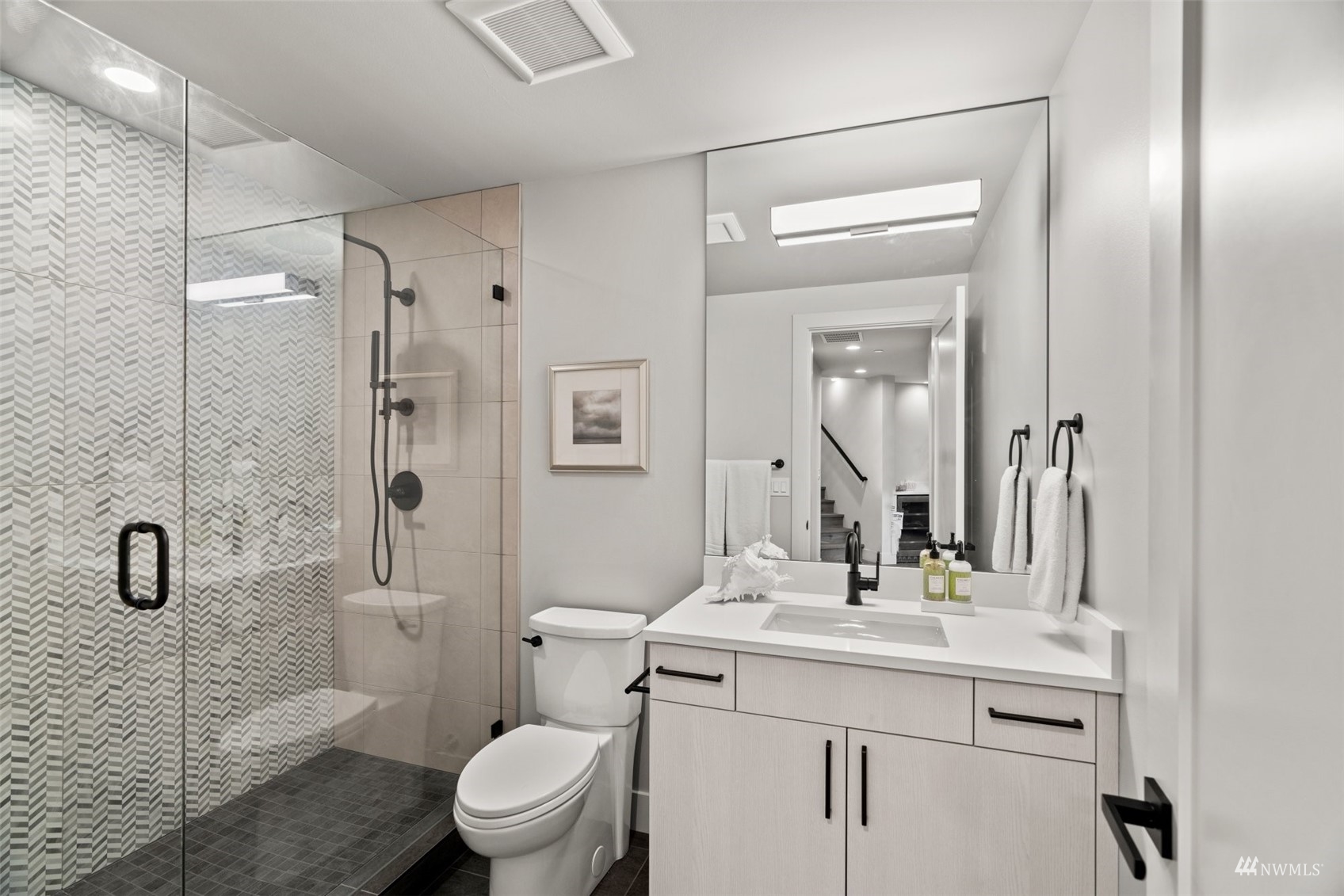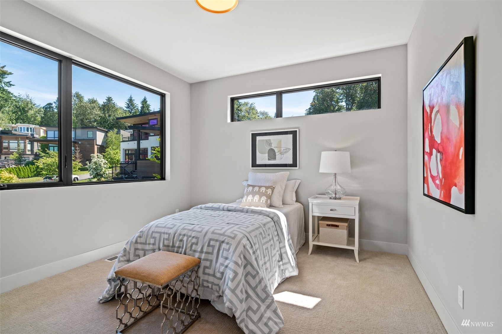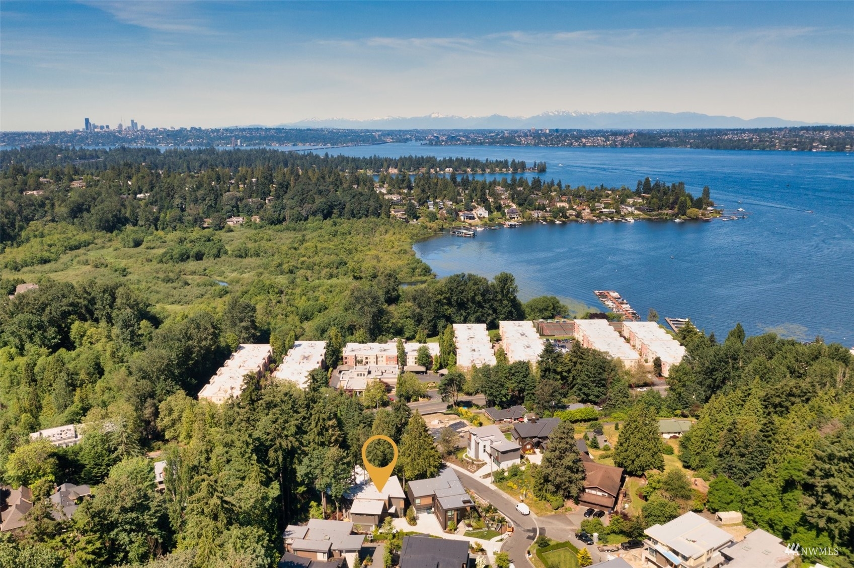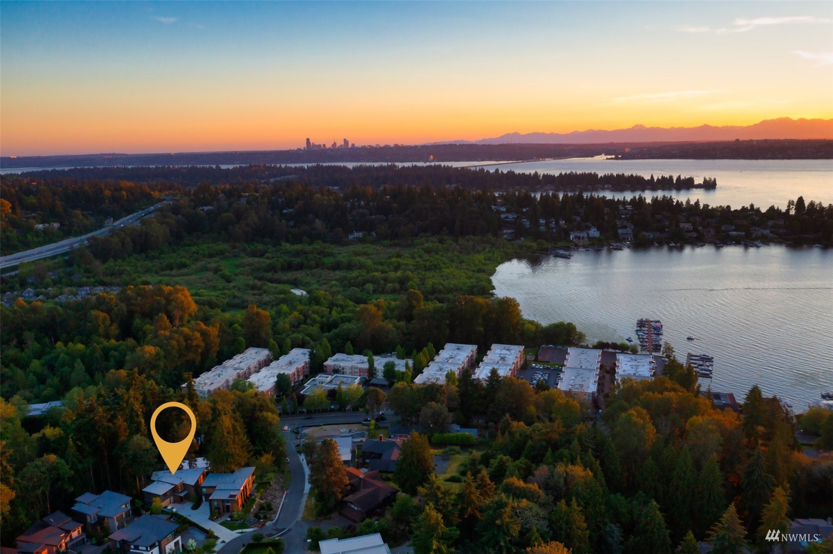 Stunning brand new NW Contemporary in desirable Houghton neighborhood surrounded by all new construction & offering beautiful Lake Washington views. Overlooking Yarrow Bay, this bright open concept custom build brings the outside in with soaring 9.5ft+ ceilings, expansive windows, modern hardwoods & a designer kitchen with a sweeping quartz island, luxury appliances & glamorous light fixtures. Enjoy a beautiful west facing deck sure to bring stunning sunsets! Master suite designed with a 5-piece spa bath, expansive walk-in closet & lake views. Main level guest suite with private bath. 3 spacious guest bedrooms upstairs all have walk-in closets. LL bonus with wet bar & patio terrace. Prime access to corridor trail, Google & downtown.