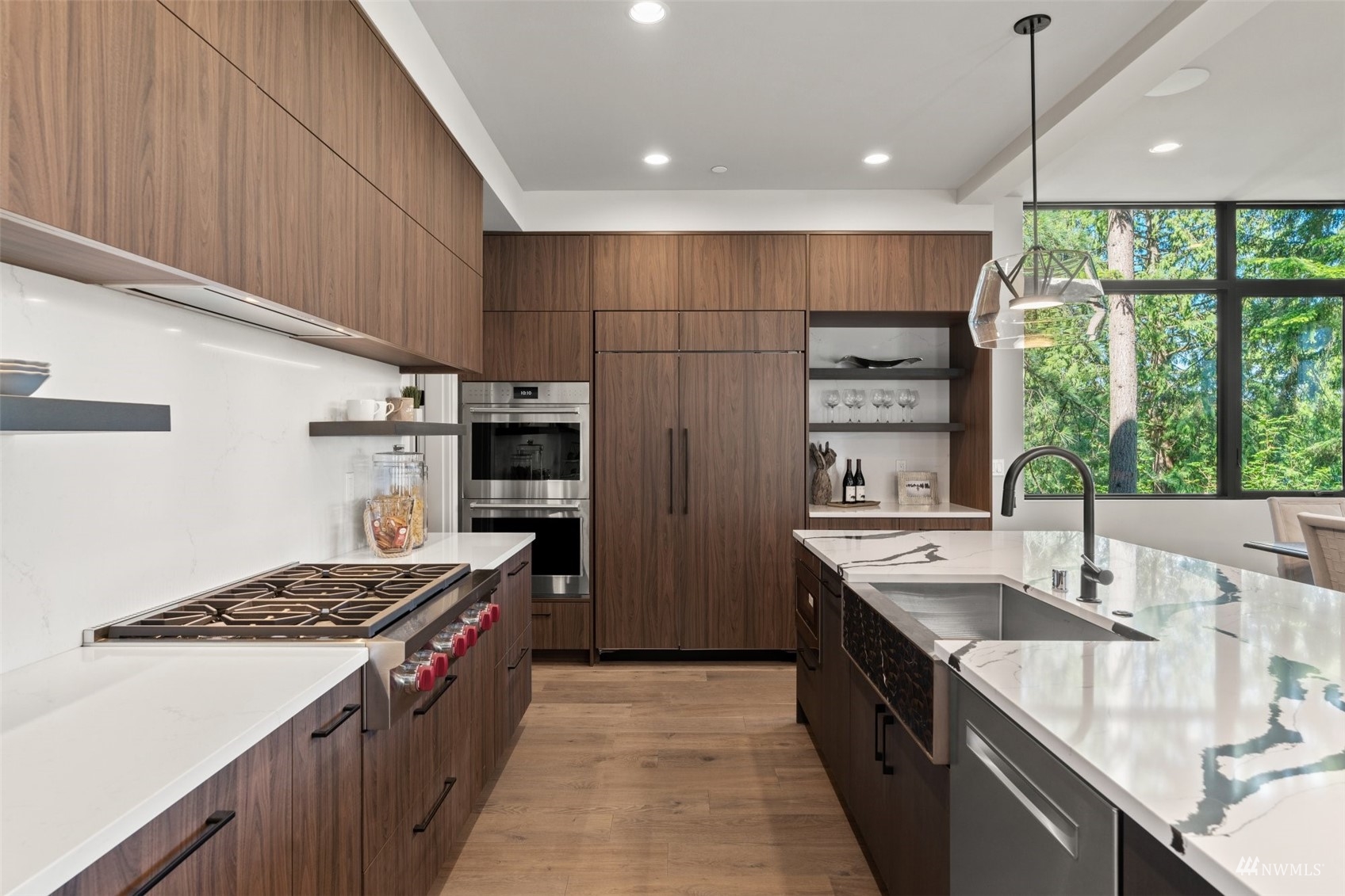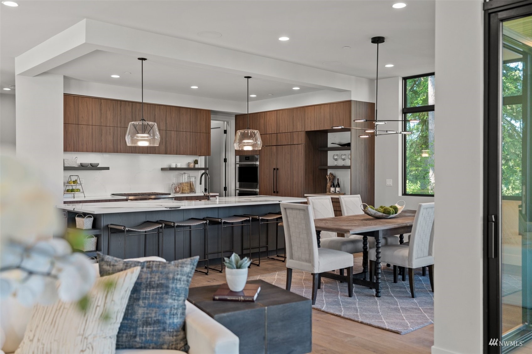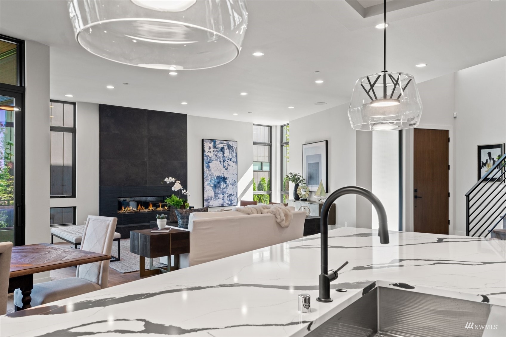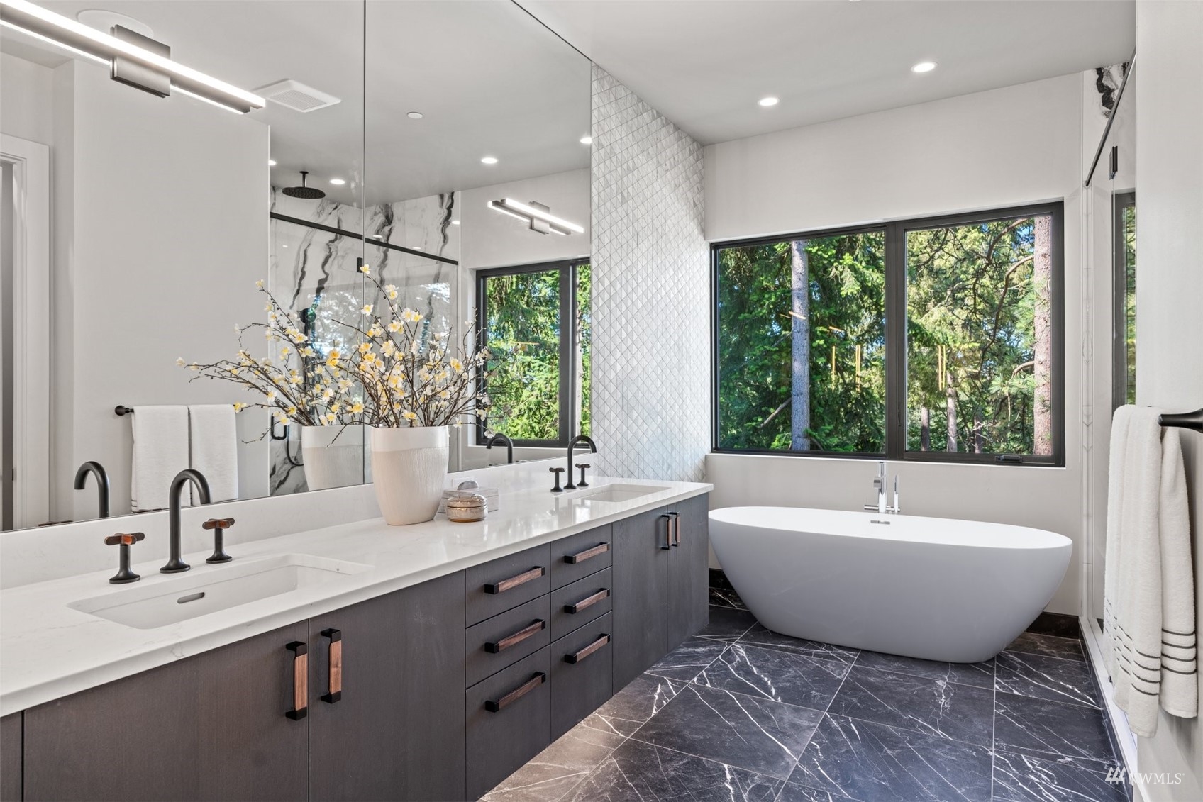 Stunning brand new NW Contemporary in desirable Houghton neighborhood surrounded by all new construction & offering beautiful Lake Washington views. Overlooking Yarrow Bay, this bright open concept custom build brings the outside in with soaring 9.5ft+ ceilings, expansive windows, modern hardwoods & a designer kitchen with a sweeping quartz island, luxury appliances & glamorous light fixtures. Enjoy a beautiful west facing deck sure to bring stunning sunsets! Master suite designed with a 5-piece spa bath, expansive walk-in closet & lake views. Main level guest suite with private bath. 3 spacious guest bedrooms upstairs all have walk-in closets. LL bonus with wet bar & patio terrace. Prime access to corridor trail, Google & downtown.