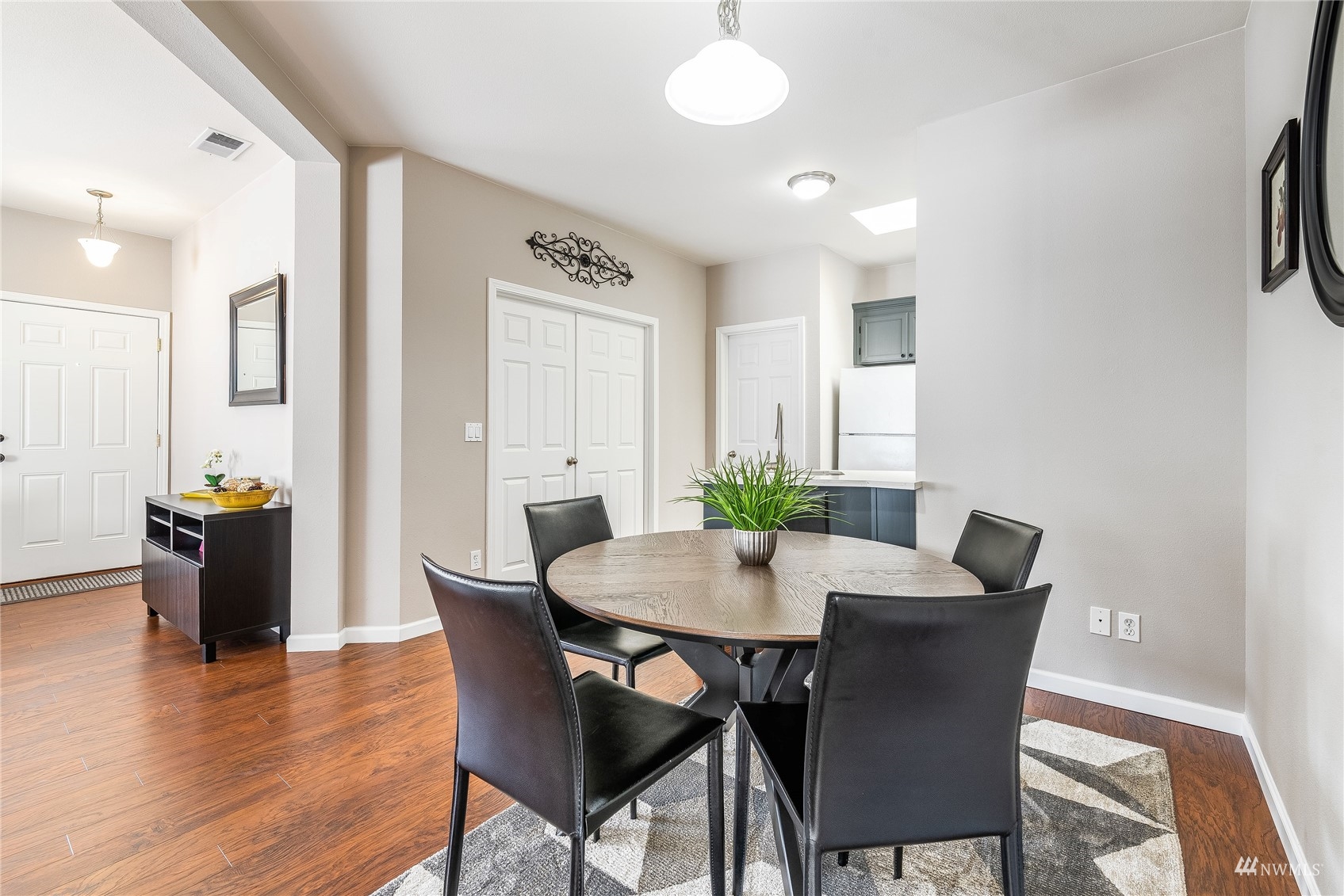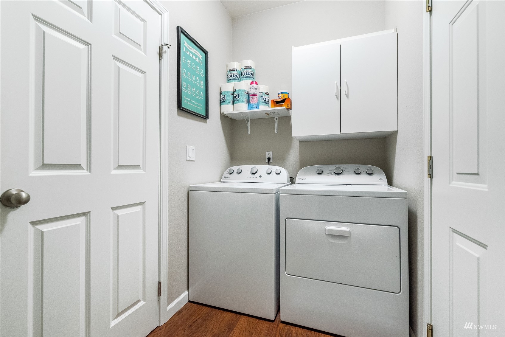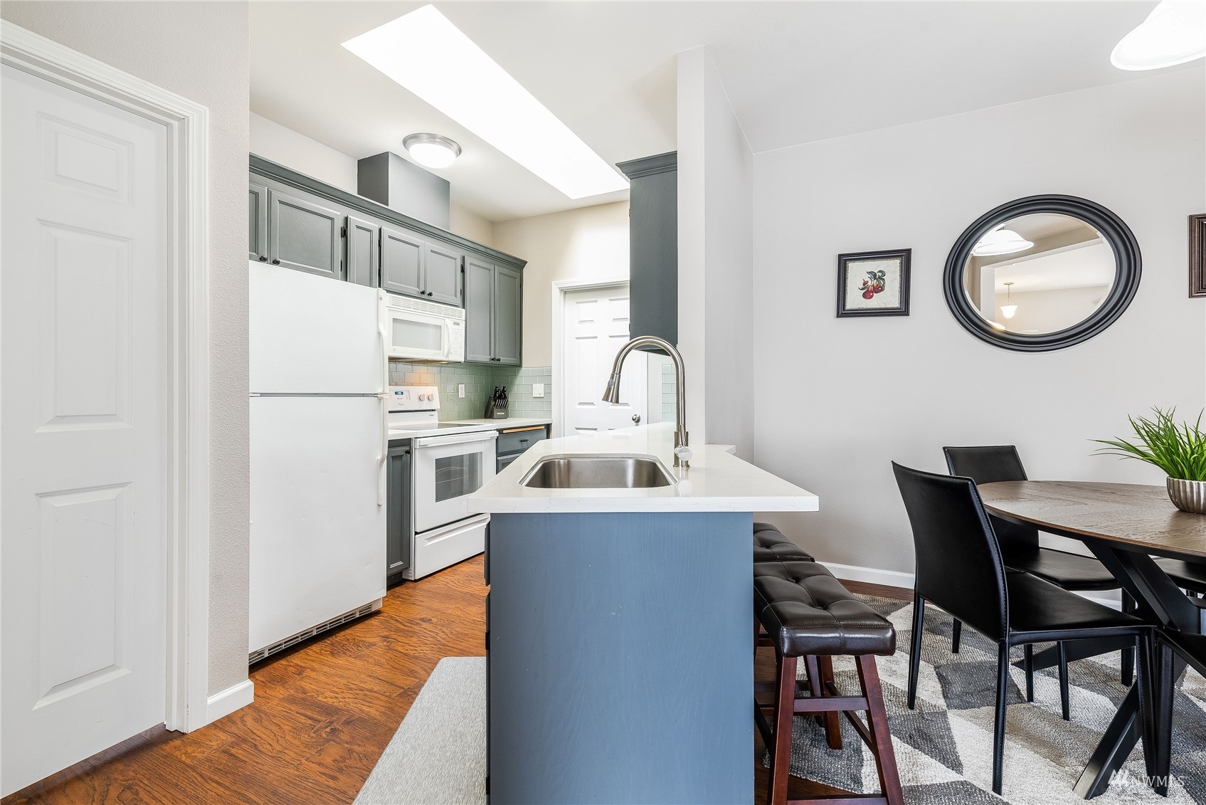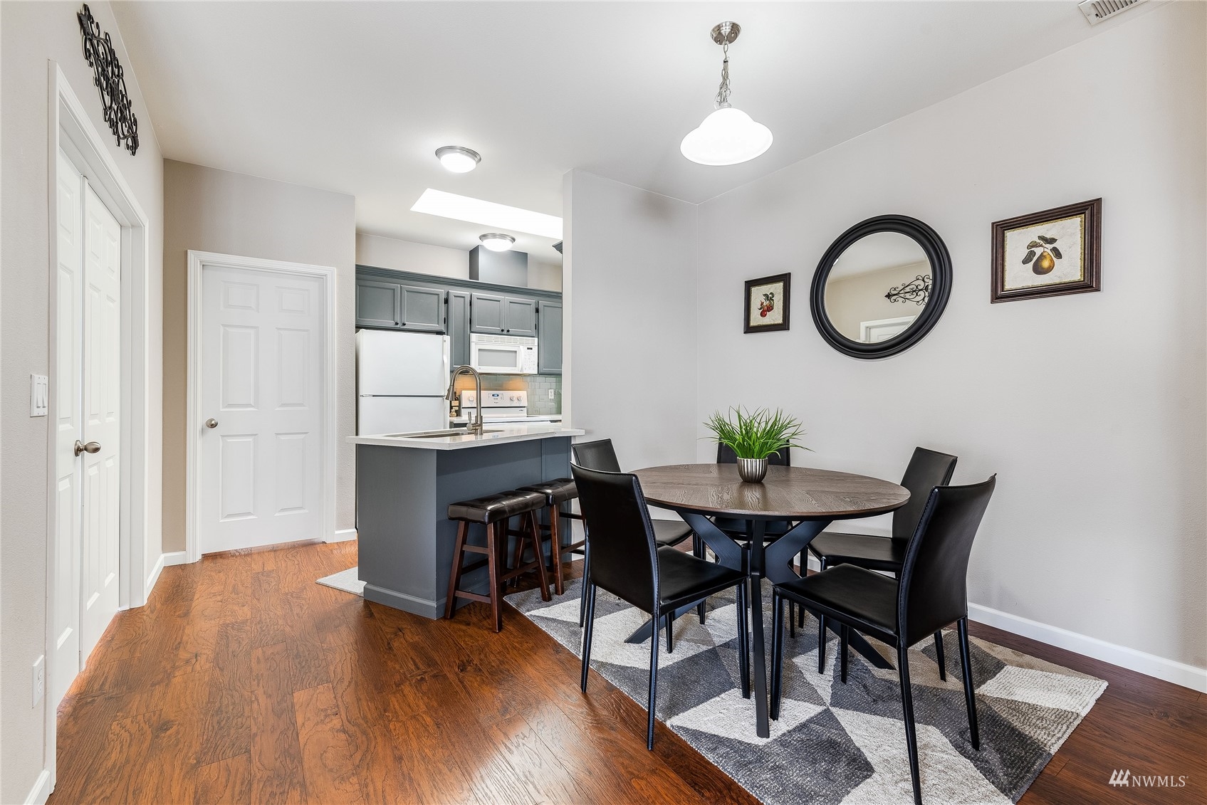 This stunning Puyallup condo offers more than expected! Come into the bright open-concept living area, complete with large windows and a cozy gas fireplace. Remodeled kitchen boasts granite countertops, custom backsplash, contemporary cabinets and appliances that all stay! Master suite includes a remodeled full bath and a spacious walk-in closet. The second bedroom is adjacent to the main bath, and a third room can be used as an office/den/playroom/etc.. Attached garage has extra storage space- very convenient! Laundry in unit and both W&D stay! Low HOA dues cover yardwork, water and sewer! Central A/C allows cool living in the summer, custom blinds throughout home, newer floors & paint, entire unit updated and ready for new owners!