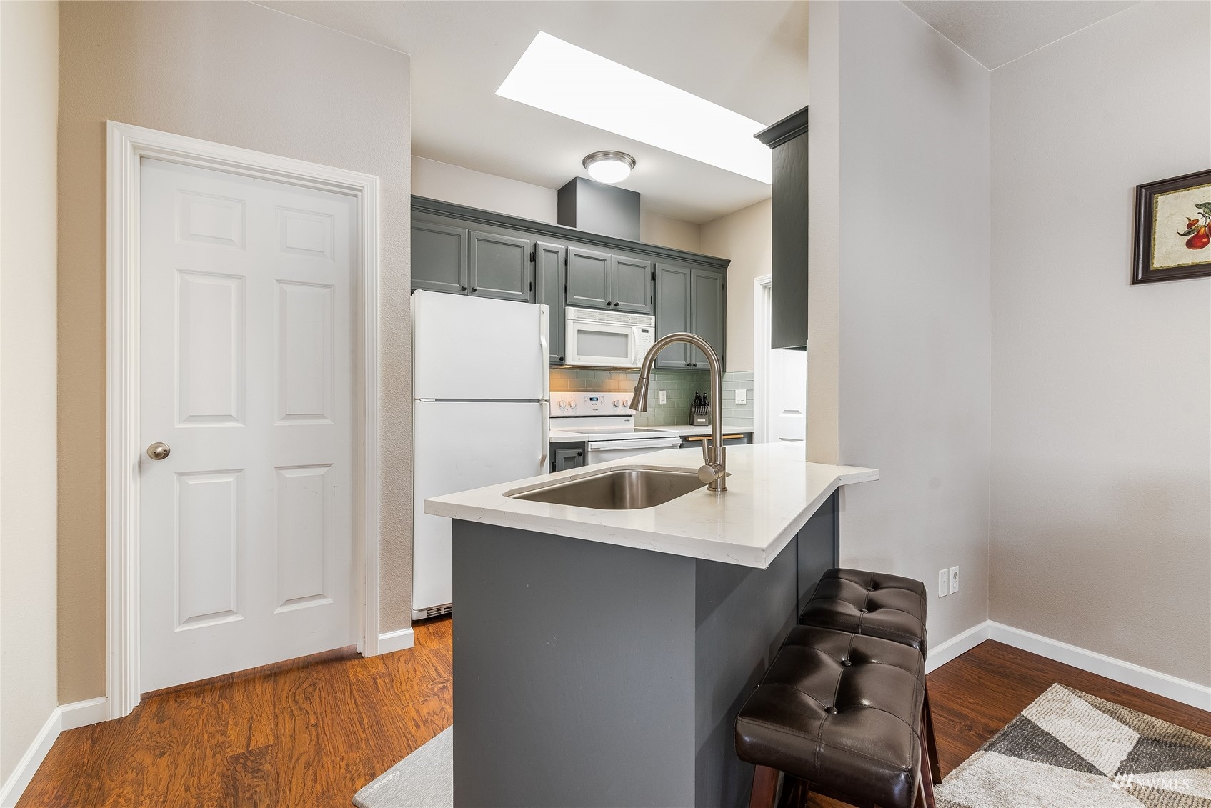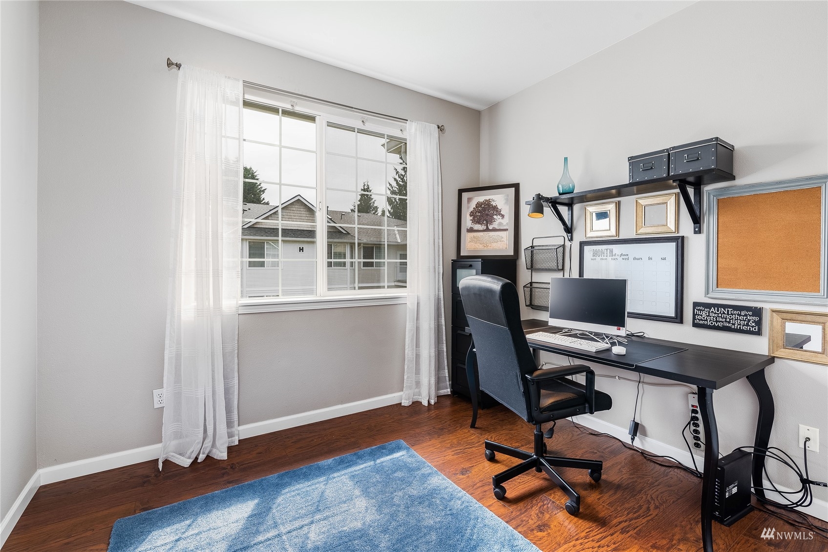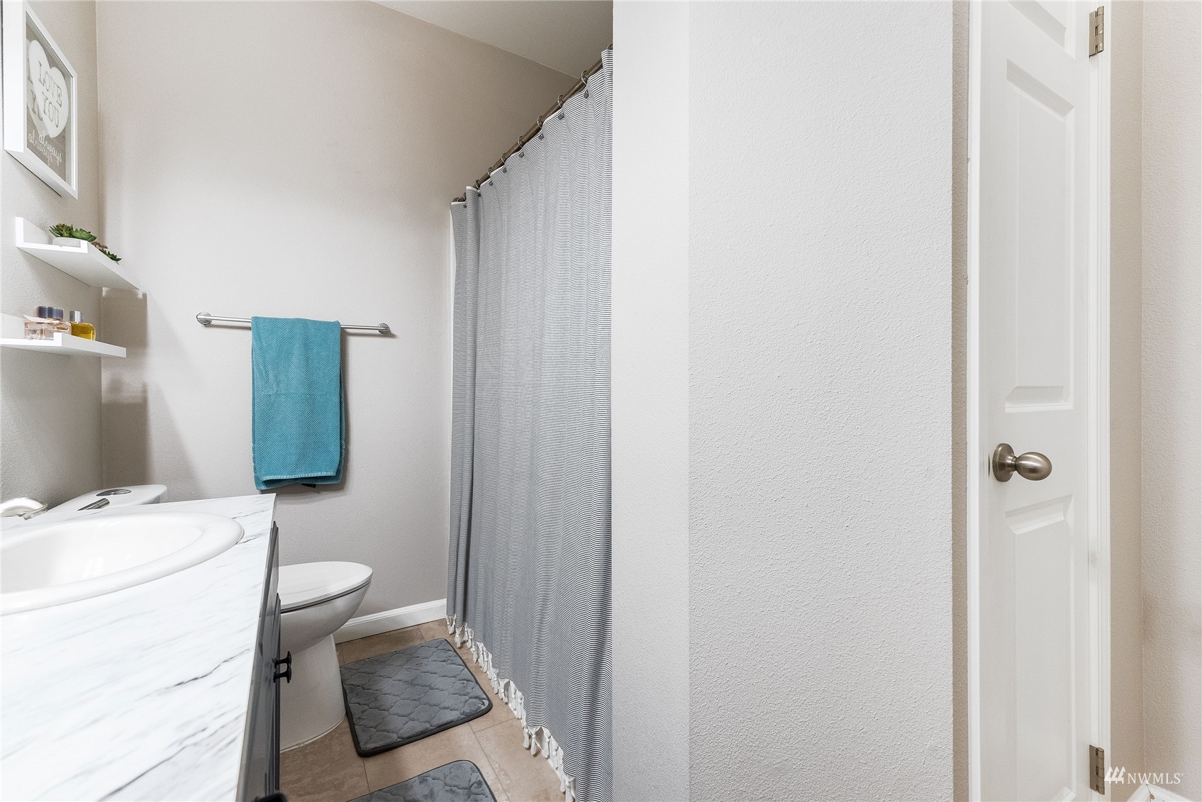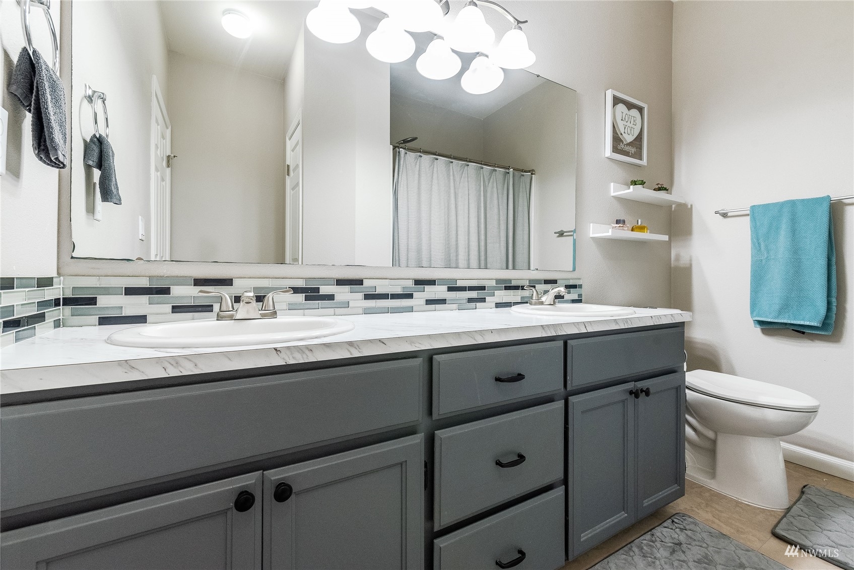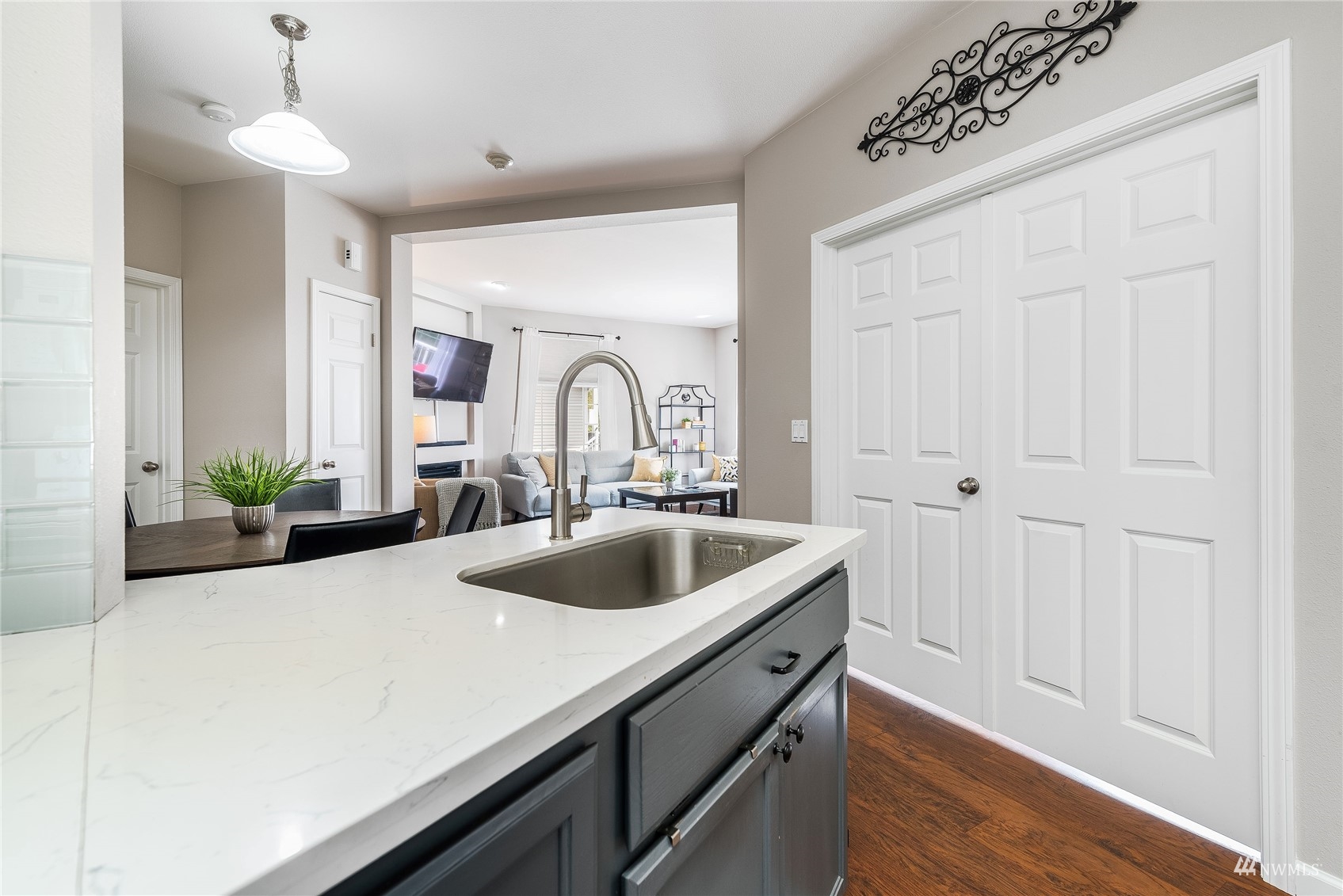 This stunning Puyallup condo offers more than expected! Come into the bright open-concept living area, complete with large windows and a cozy gas fireplace. Remodeled kitchen boasts granite countertops, custom backsplash, contemporary cabinets and appliances that all stay! Master suite includes a remodeled full bath and a spacious walk-in closet. The second bedroom is adjacent to the main bath, and a third room can be used as an office/den/playroom/etc.. Attached garage has extra storage space- very convenient! Laundry in unit and both W&D stay! Low HOA dues cover yardwork, water and sewer! Central A/C allows cool living in the summer, custom blinds throughout home, newer floors & paint, entire unit updated and ready for new owners!
