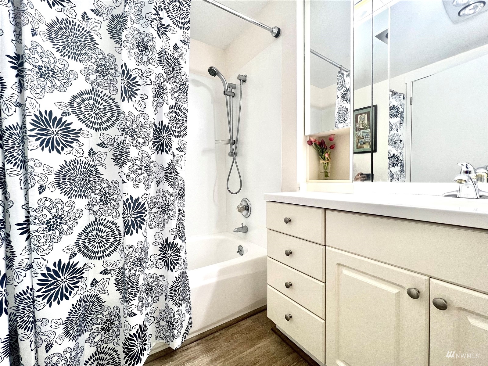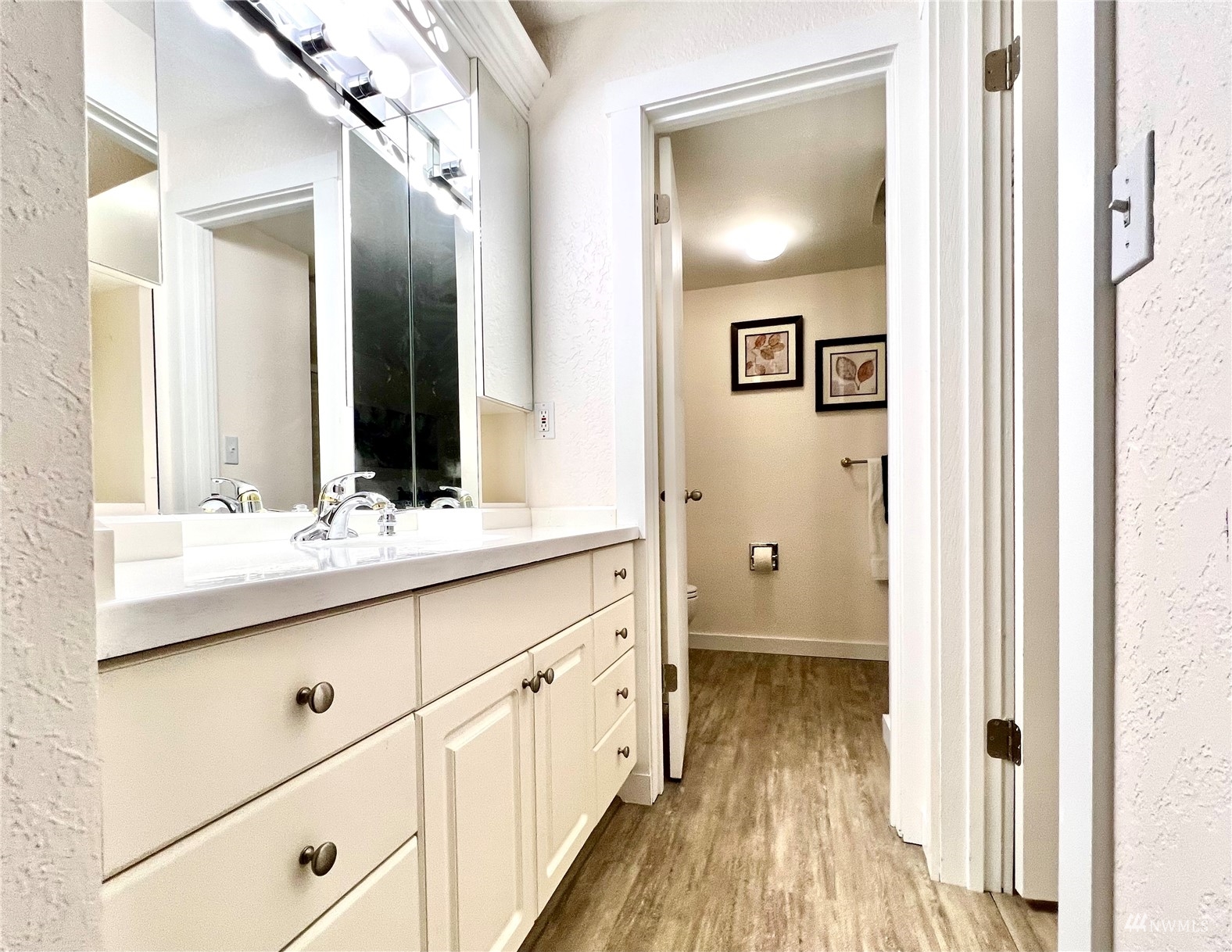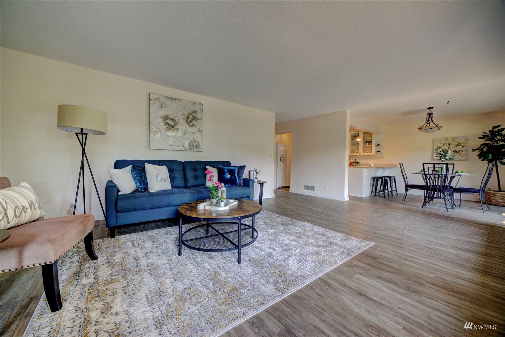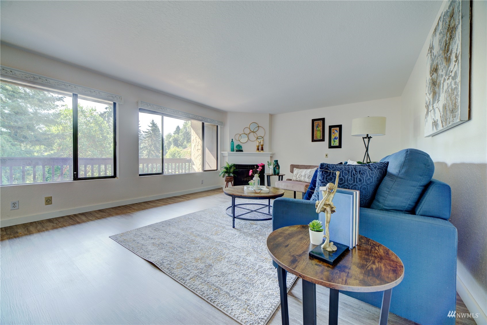 Welcome to Park Place - Enjoy Living in this Private First Floor Condo with a large covered deck and covered parking space. This 1-level unit has open floor plan, fresh paint, Brand New Luxury Vinyl Plank Floors, White Cabinets, a massive living room with large windows and a Cozy Wood-burning fireplace leads out from a sliding door to a large private patio. 3-Storage Units, plus an assigned 1-car covered parking with lots of guest parking. This is a very quiet community in Shoreline with an amazing opportunity for pride of home ownership. A Bonus Entertainment Clubhouse w/ Pool table. All located minutes to I-5, the New Light Rail Transit Center, North City, Lake Forest Park & Ballinger Shopping and Restaurants. Small pets allowed.