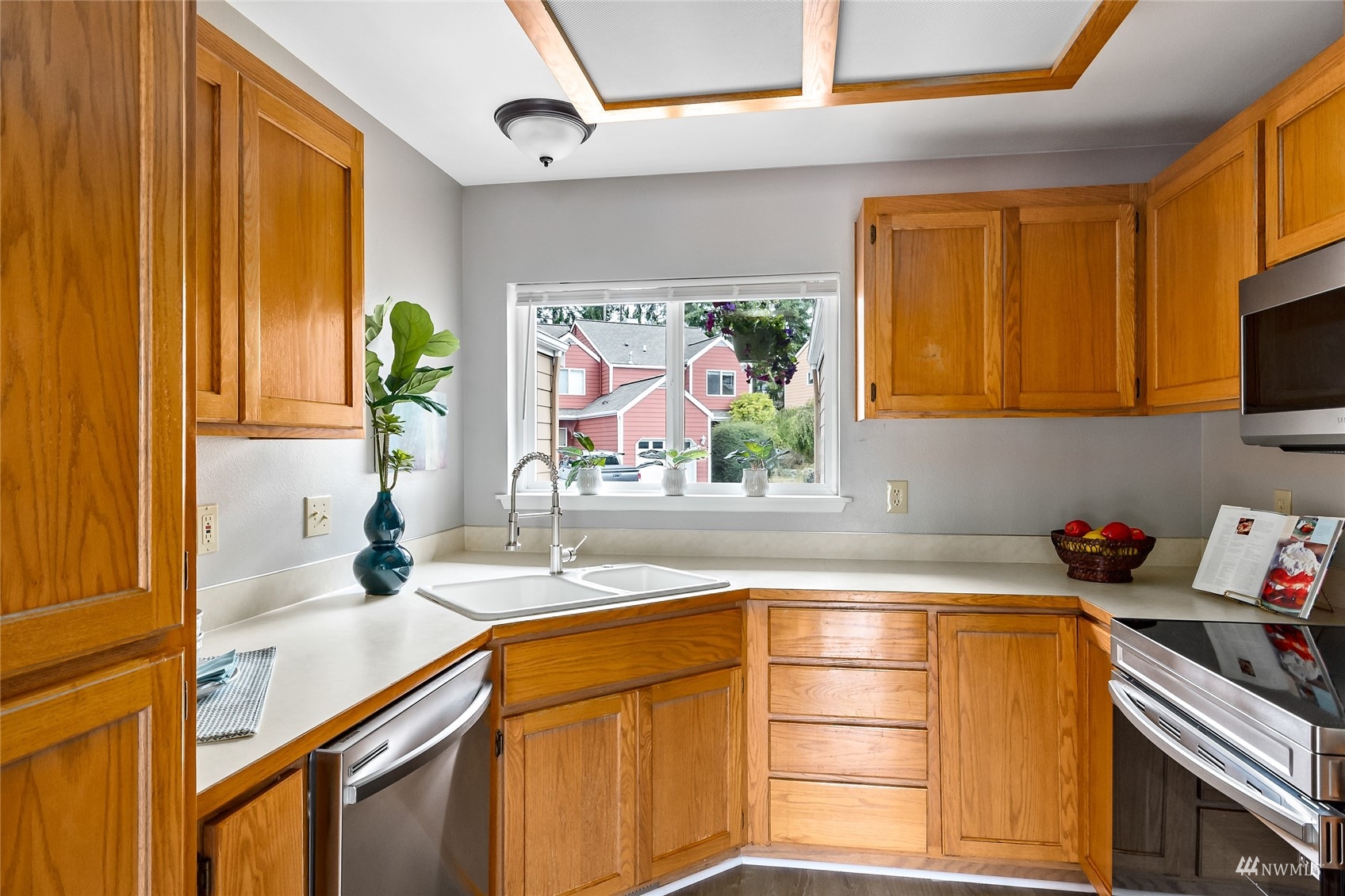 Beautifully updated town home style condo in the Birch Tree complex offers 3 bedrooms, 2.5 bath, & a single car garage! Brand new interior paint throughout including walls, trim & ceilings & brand new kitchen stainless appliances (stove & fridge wifi enabled). Other upgrades include luxury vinyl plank flooring on the main level & bathrooms, new carpet, new lighting/ceiling fans, & handrails, & new wifi garage door motor. New roof installed 2021. Gas furnace is only 2 years old. Southern exposure floods lots of natural light in the living/dining areas. Primary bedroom w/ ensuite bath & walk-in closet. Additional bedrooms are good sized. Low HOA dues of $250 per month! Conveniently located to schools, shopping, downtown, & NAS Whidbey!!!