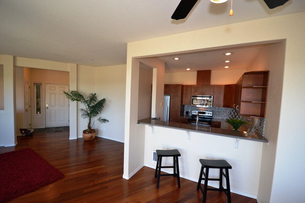 Its all about the location and expansive views. DT Redmond and the Cascade Mtns are amazing from the kitchen, living room and the outside deck from this penthouse townhome located just minutes to Marymoor Park, Microsoft campus and to 520/405. Tastefully remodeled with slab quartz countertops, rich wood cabinets with quiet hinges, stainless high end appliances and radiant heated foyer entry. Dont miss the 1 car garage located at the end and the extra office/den room with wood burning fireplace.