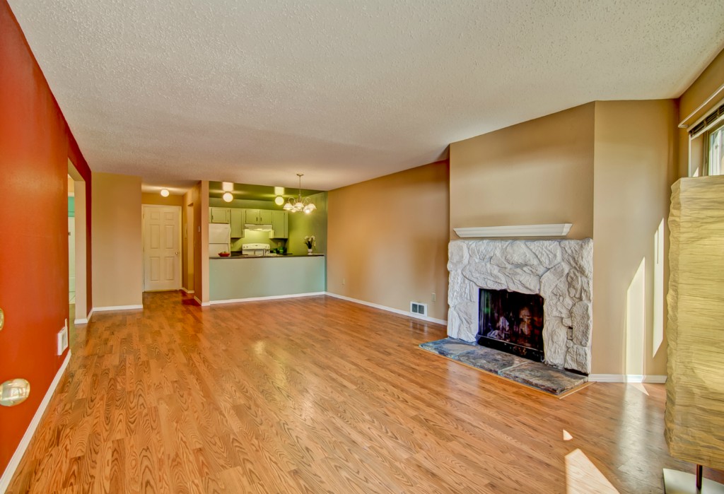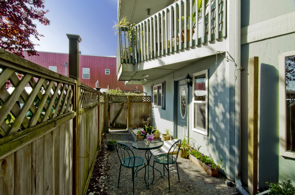 Spacious, updated 2-bedroom condo with private entrance & private fenced patio, in a small 10-unit complex. This condo has great flow, with kitchen open to dining|living room. Wood burning fireplace, updated appliances & windows, laminate hardwood floors, new carpet in bedrooms, abundant storage, and W/D in unit. Super-convenient location. Pet friendly building. Low HOA dues.