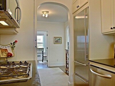 Masterfully remodeled & updated in 2005, this gracious 1910 Landmark building has exquisite period details intact & high tech amenities combining old & new. Spacious & southern lit luxurious 1 BD + office w/ grand living spaces, 9 ft ceilings w/crown molding, hardwood flrs, arches, & dbl pane windows. Galley kit w/ honed granite & tile, SS appliances, sub-zero frig, gas cooking & a charming Dutch door to back deck. Large tub in all-tile BA. Entry foyer & hall. Off-street parking. W/D in unit.