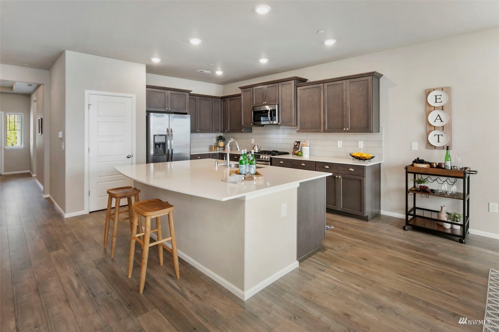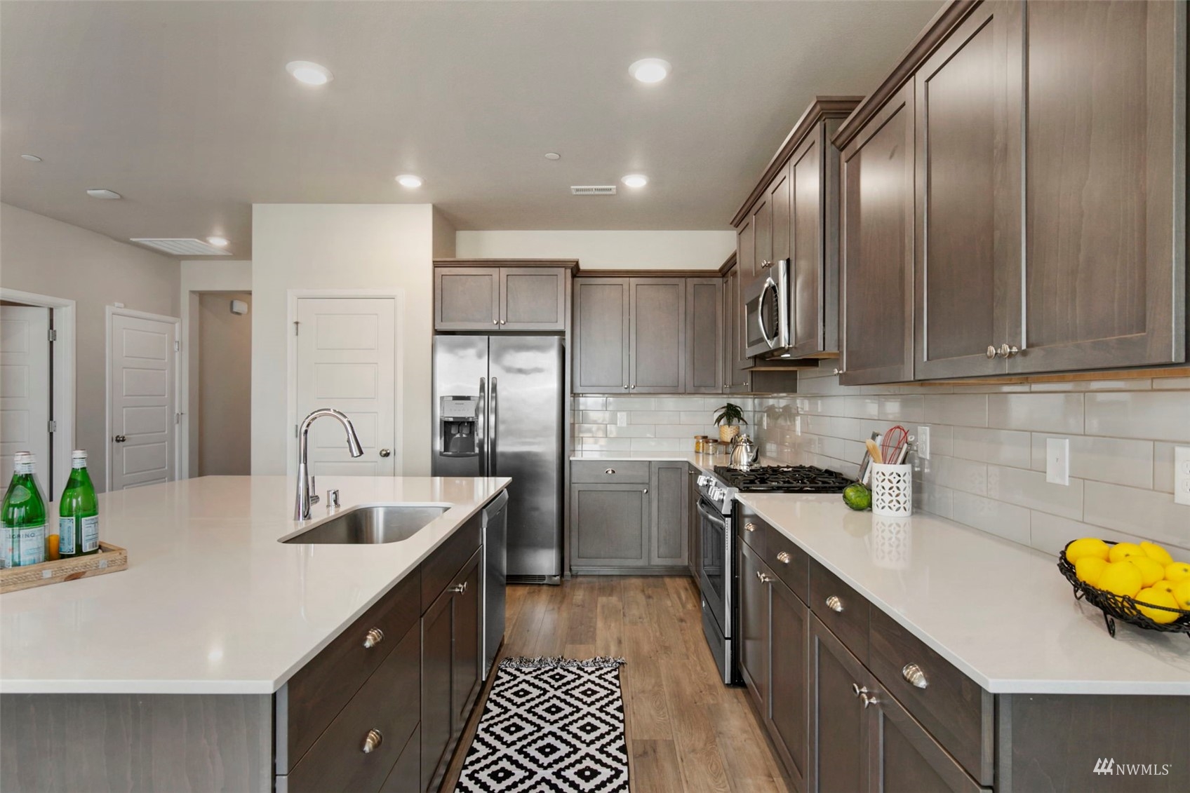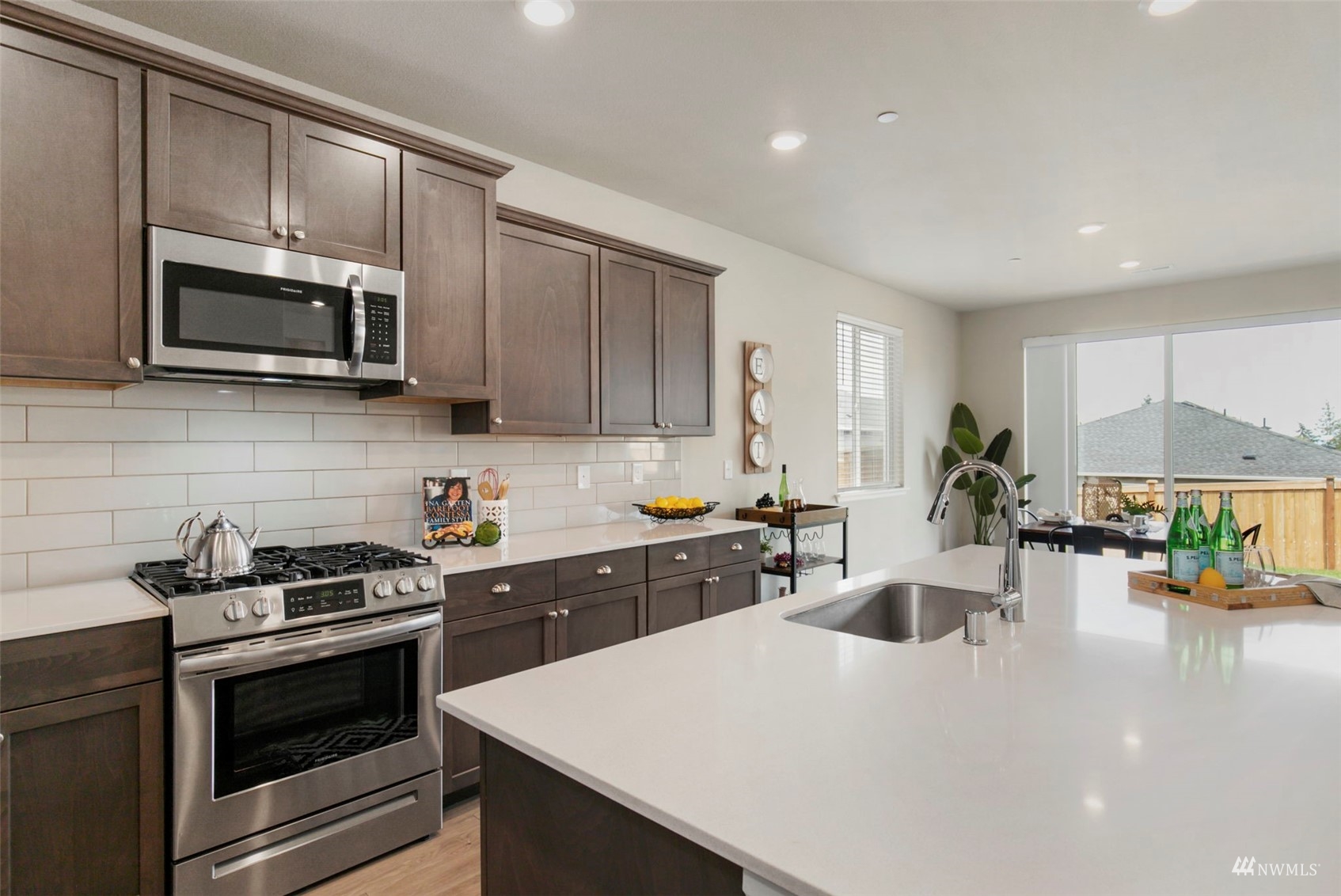 BETTER THAN NEW and IMPROVED PRICE TOO!!! Delightful single story home in Soundview Estates! Sunny and inviting, this home is ready for you! Light-filled great room concept and gorgeous modern dream kitchen that features a huge island, quartz counters, gas cooking, stainless steel appliances and a generous pantry. A perfect dining area to host a fabulous dinner party. Fully fenced backyard to entertain and a peek-a-boo water and mountain views. Don't forget to check out the pristine garage too! Enjoy the community trials, parks and playgrounds. Easy access for commuters to the ferries and convenient location just minutes from bases and all Kitsap's best dining and shopping spots. You don't want to miss this one!