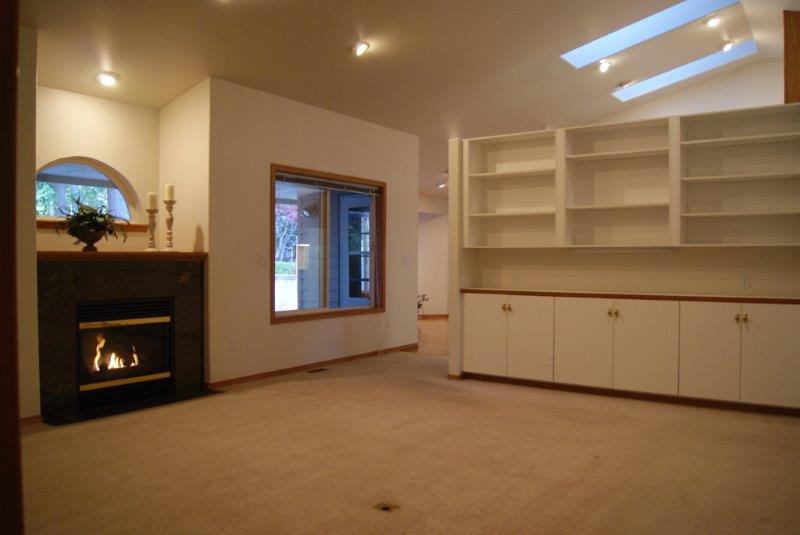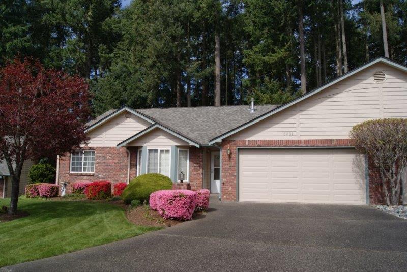 Convenient 1 level living in the quiet gated community of SPRINGWATER! Vaulted ceilings, skylights & lots of windows. Spacious GR w/built-ins & gas fpl. KIT & dining area looks out to private covered patio & deck w/gas for BBQ. Master w/walk-in closet, en-suite bath w/sliders to patio. Guest room w/adjoining bath & walk-in closet. French doors to den w/bay window & storage bench, built-in desk & cabinets. New roof, 2-CG, pull down attic & loads of storage! Close to shopping, golf courses & JBLM.