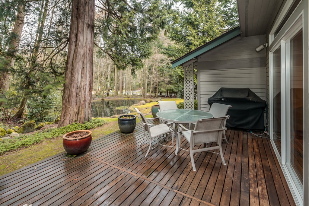 Tastefully and beautifully updated this home is a must see. Large gourmet kitchen with upper end appliances, maple cabinets, silestone counters. Good sized master bedroom overlooking a private pond with a luxurious master bath, upstairs laundry and two extra bedrooms for your guests. Lovely private outdoor space for entertaining with a spacious deck in the back and patio in front and a double car garage.