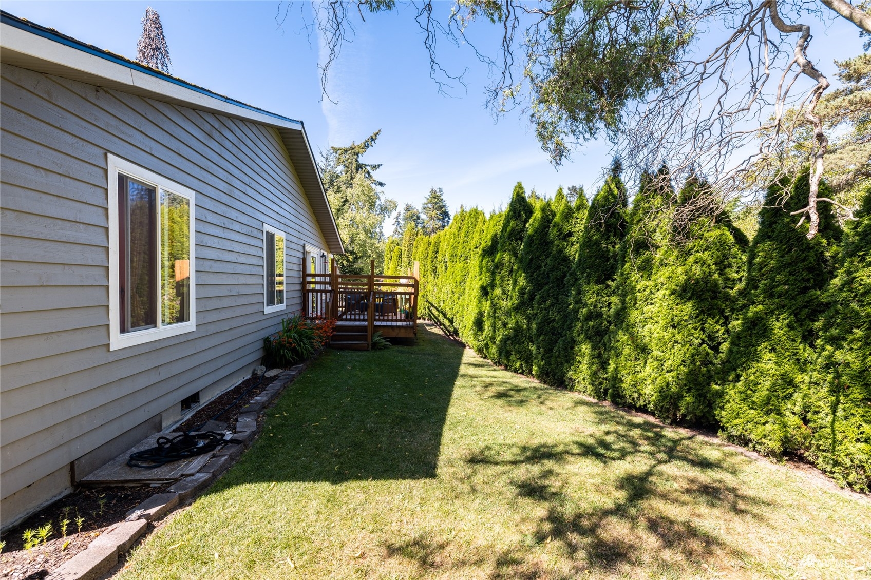 Great open layout of this cute 3 bedroom 2 full bath home located on a spacious level corner lot in Shelter Bay. This home has been updated with durable laminate floors in the living room, dining, primary bedroom and hallway and tiled floors in the bathrooms, kitchen, and laundry room. The spacious kitchen has butcher block counters, updated back splash, and stainless steel appliances. The living area opens out to a private back deck. There is also an office/studio off the living room and an attached 2 car garage. All this in a great neighborhood close to parks and beaches. Enjoy all the Shelter Bay amenities including marina, golf, swim, tennis, beach. Just across the Rainbow Bridge to the picturesque waterfront town of La Conner.
