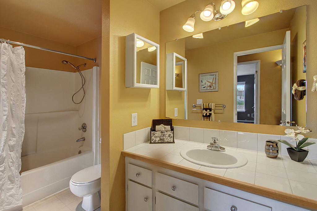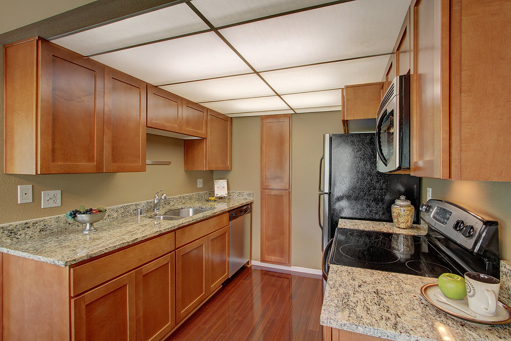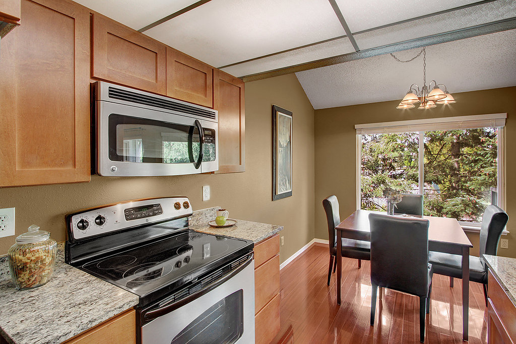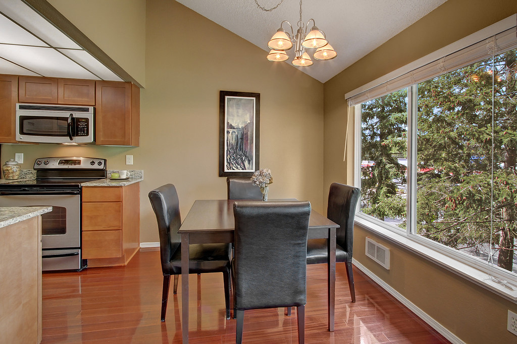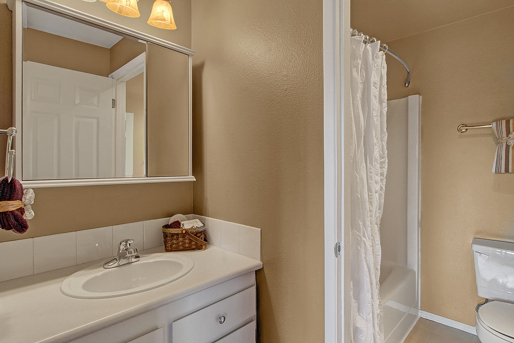 Come see this amazingly updated top floor unit. The travertine entry leads to cherry flooring in the kitchen, dinning & living rooms. Vaulted ceiling & wood burning fireplace highlight the large living room. The kitchen features cherry shaker cabinets, slab granite, & stainless appliances. Continental bath has additional vanity/sink in master. Designer paint, 6 panel doors, private patio, private laundry/utility room - you've got it all! Two parking spaces - one covered. Community clubhouse.