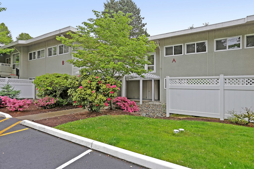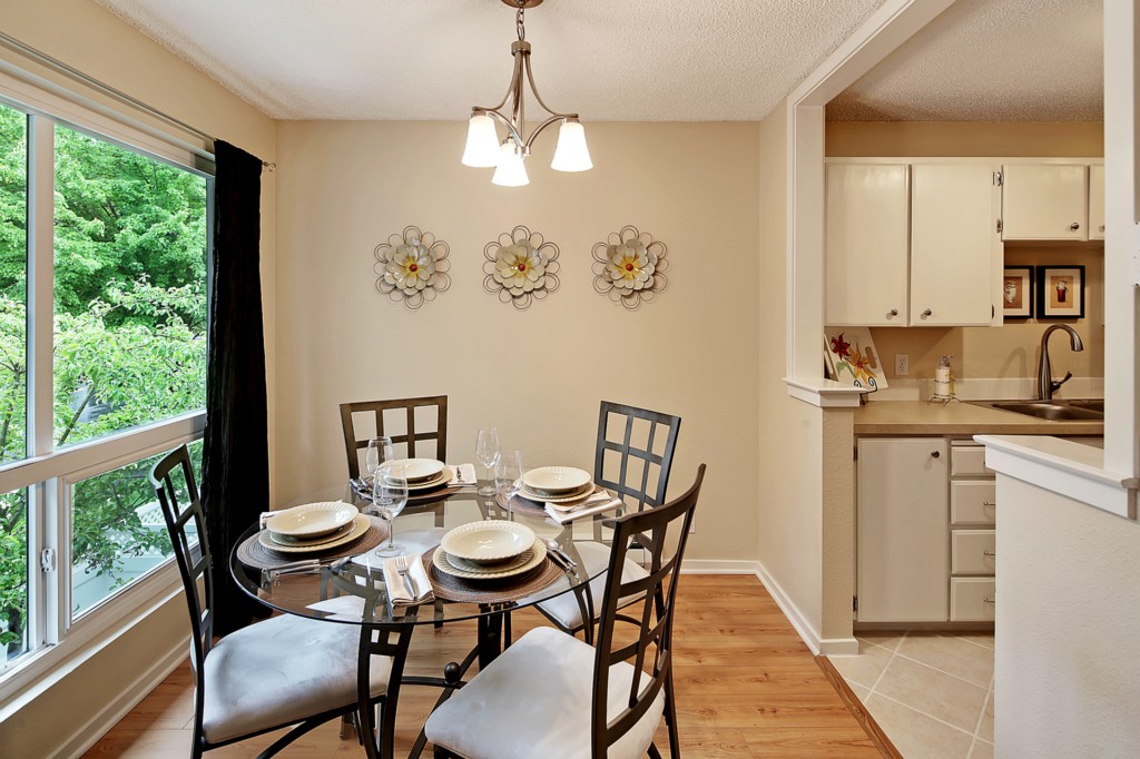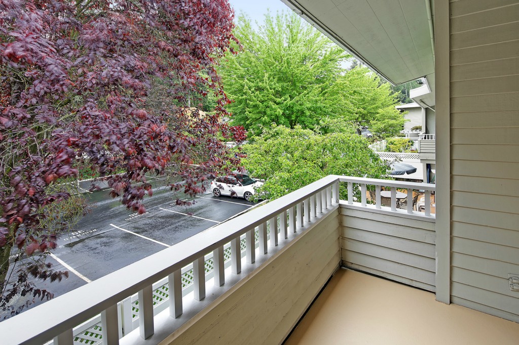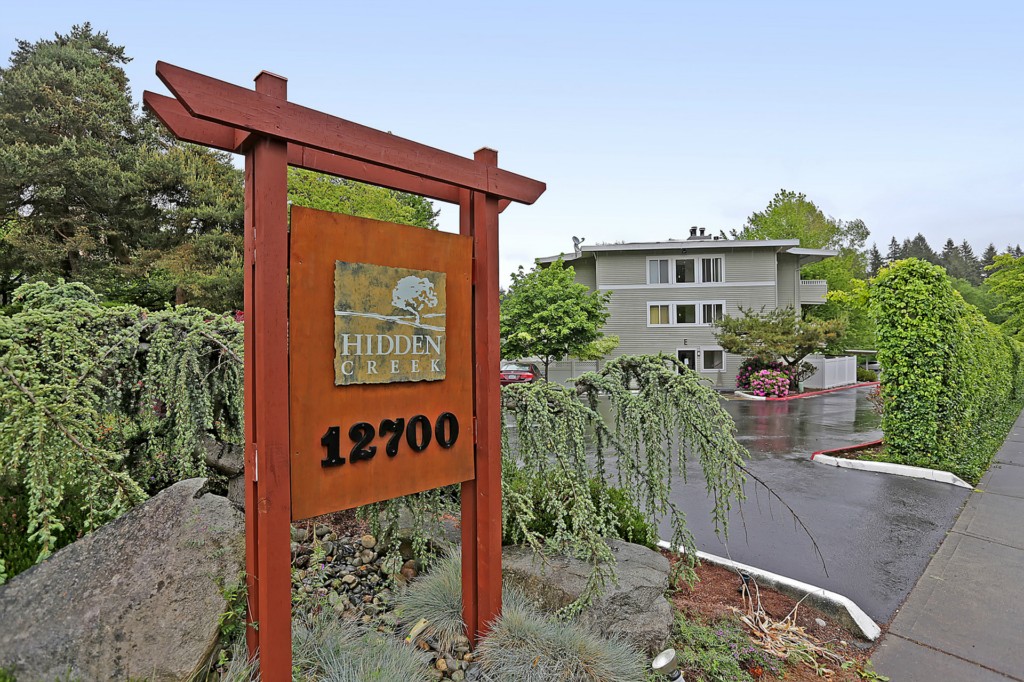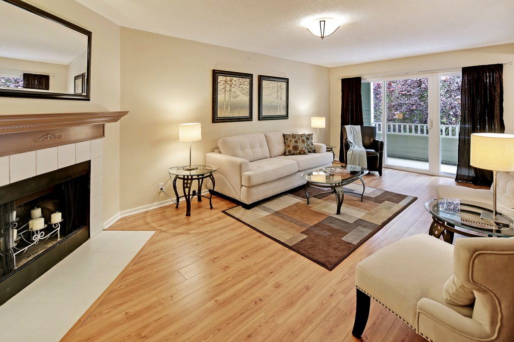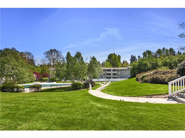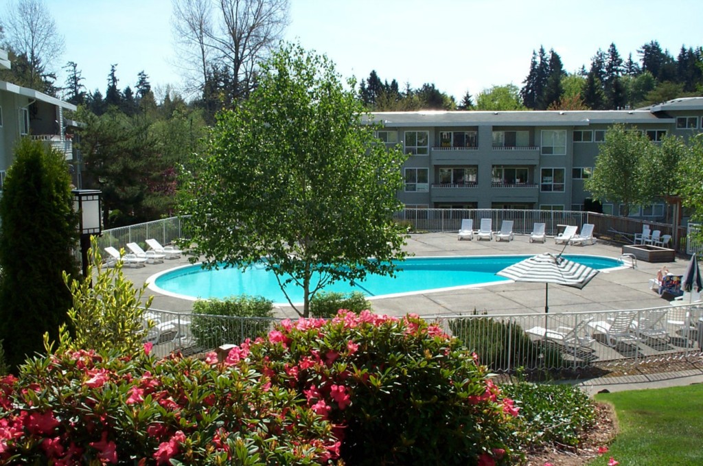Location, location, location! Just 1 mile to downtown Bellevue and I405. This move-in condition, top floor, 1 bedroom condo has been nicely updated & features secured entry, in-unit w/d, wood-burning fireplace, laminate and tile flooring, & updated bath & kitchen w/stainless appliances. The spacious living room w/large deck & tons of natural light plus dining space makes this unit especially appealing. Enjoy the outdoor pool on hot summer days, exercise facility, and community room. A Must See!