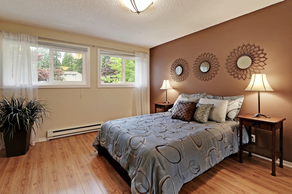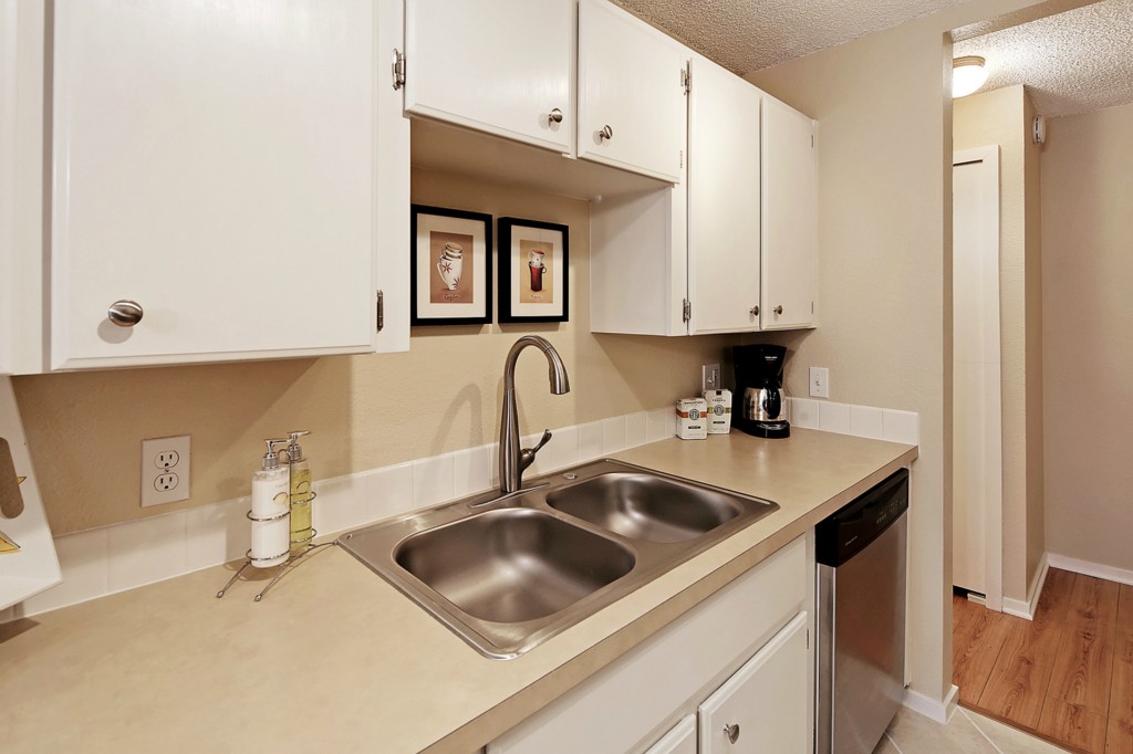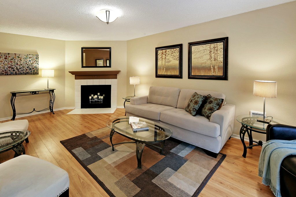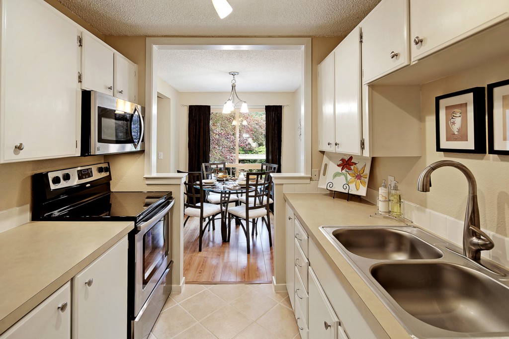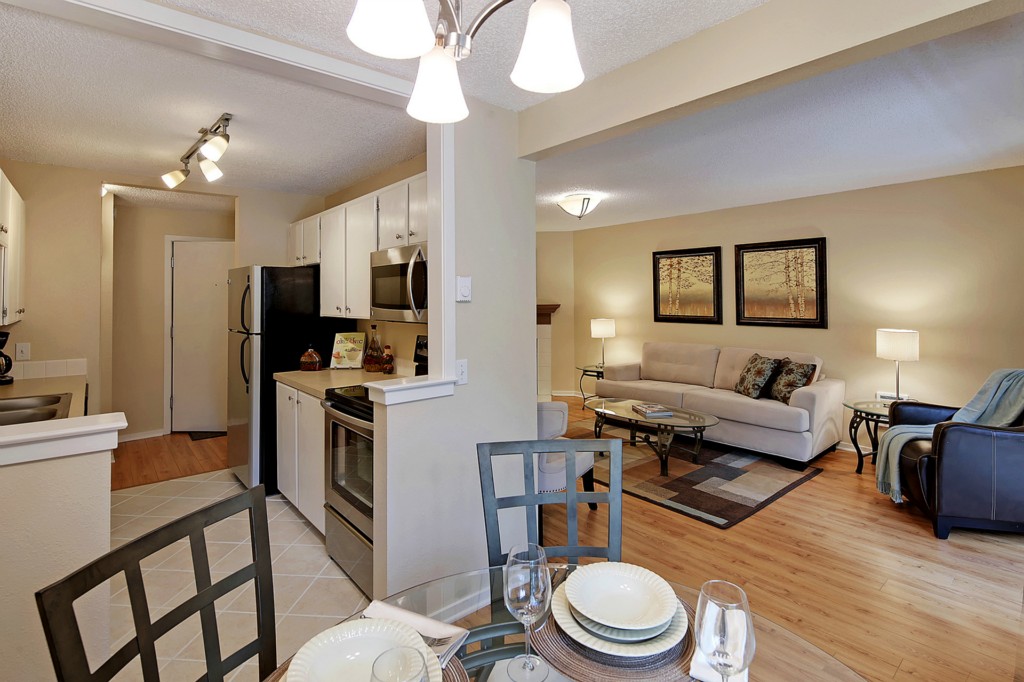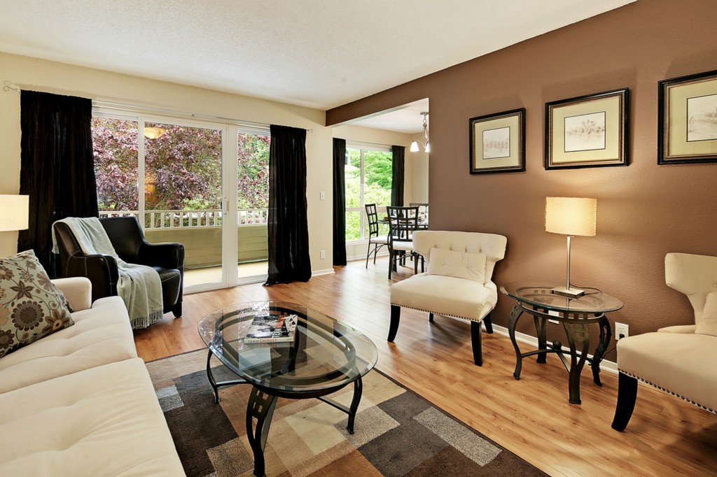 Location, location, location! Just 1 mile to downtown Bellevue and I405. This move-in condition, top floor, 1 bedroom condo has been nicely updated & features secured entry, in-unit w/d, wood-burning fireplace, laminate and tile flooring, & updated bath & kitchen w/stainless appliances. The spacious living room w/large deck & tons of natural light plus dining space makes this unit especially appealing. Enjoy the outdoor pool on hot summer days, exercise facility, and community room. A Must See!