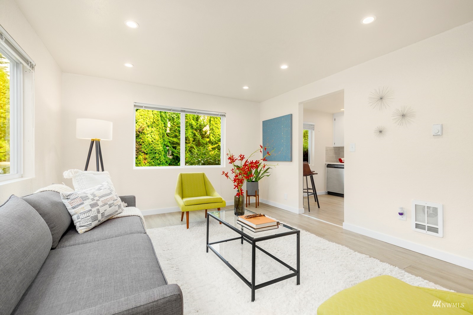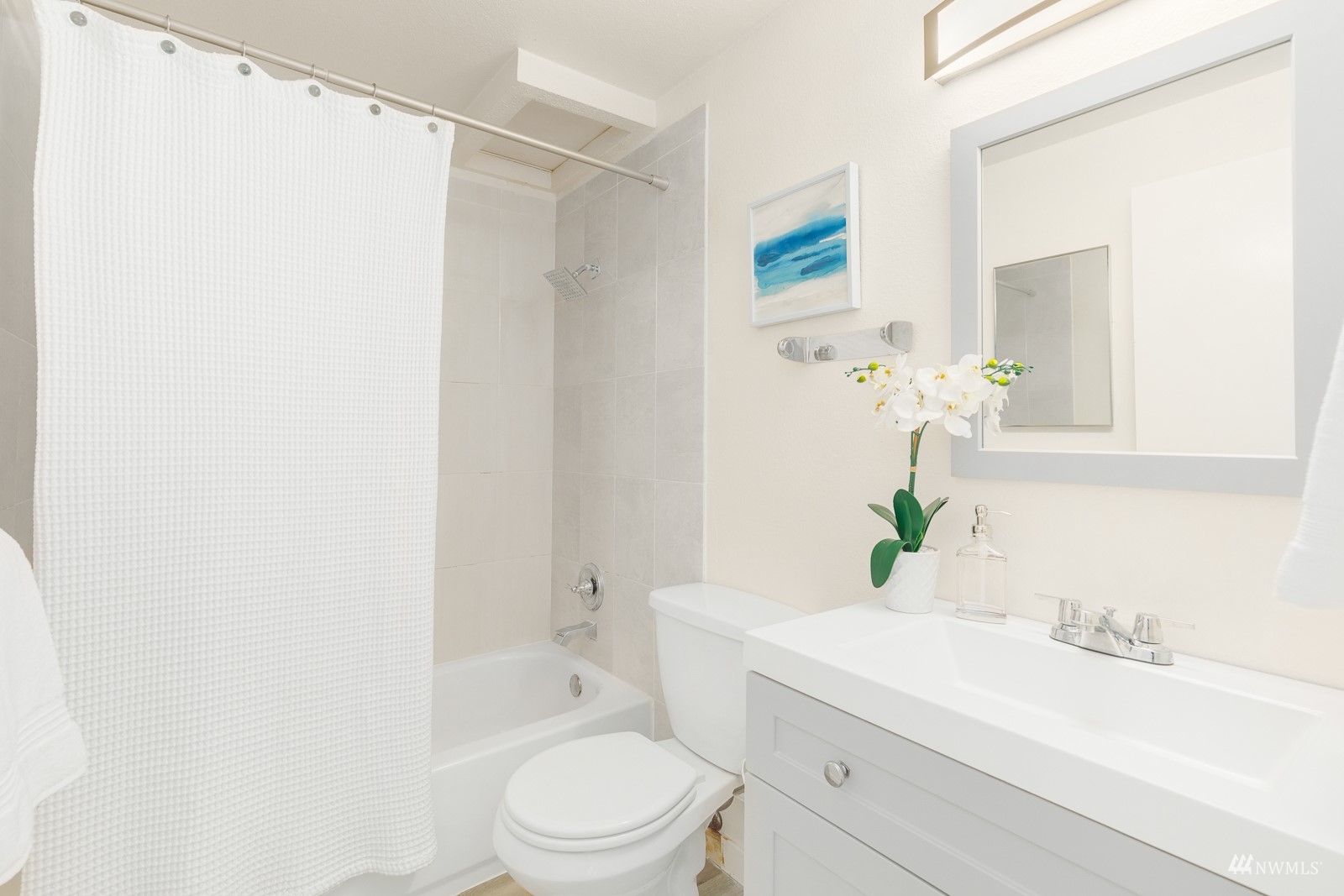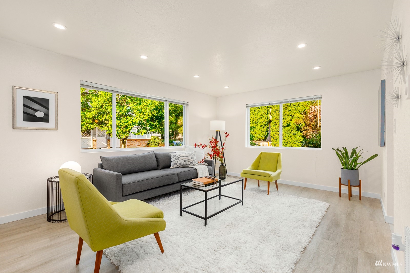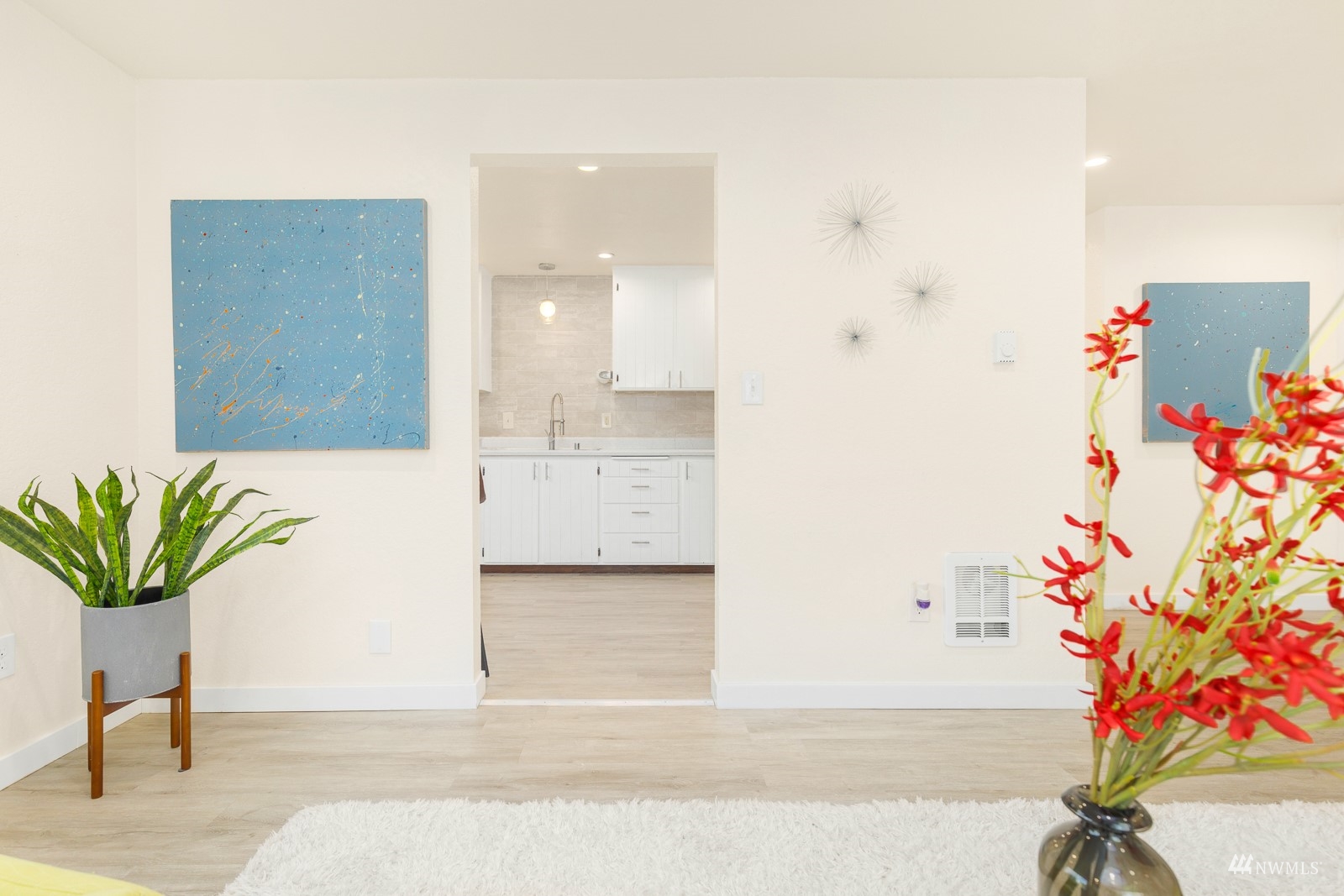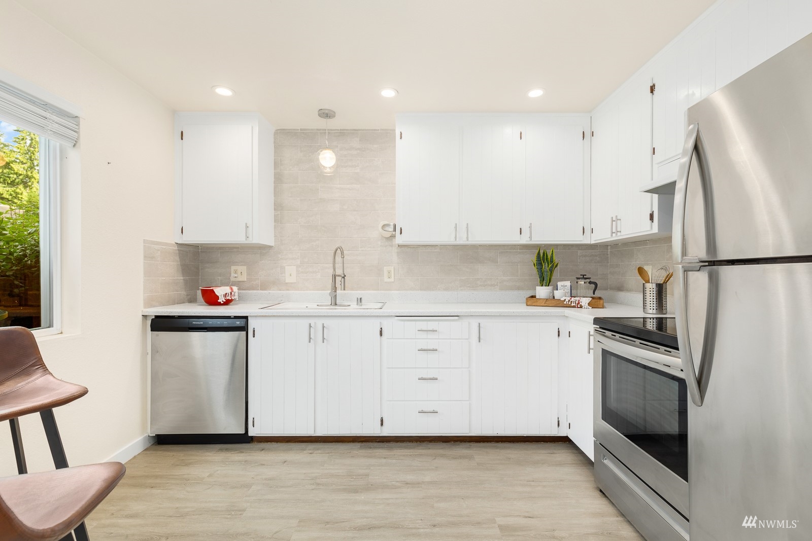 Bright & cheery end unit in adorable 14-unit complex in desirable Edmonds. This 2 bdrm, 1.5 bath condo is nicely updated throughout with recently remodeled kitchen, bathrooms, & newer vinyl plank flooring. Additional highlights include light & open living room, spacious bdrms, & full size w/d. Amazing outdoor common space for grilling and gatherings. W/S/G & common area maintenance are included in monthly HOA. No rent cap and one off-street parking place included. Close to I-5, Highway 99, shopping, light rail, and Downtown Edmonds. Back on the market after tenant move-out. This one won't last long!