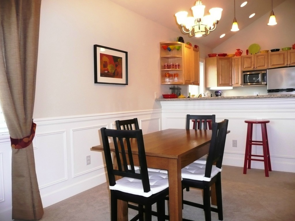 Walk to downtown, restaurants, events center + transportation center. 1 of 6 upscale townhomes, attached tandem 2 car garage, gas circulating hot water heat, gas fp, vaulted ceilings, full size utility room, kitchen w/ slab granite, maple cabinets, SS appliances, lots of painted mill work + crown molding, corner unit, lots of windows, courtyard entry, shows like new!