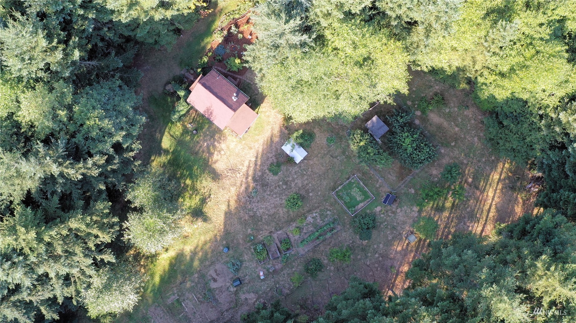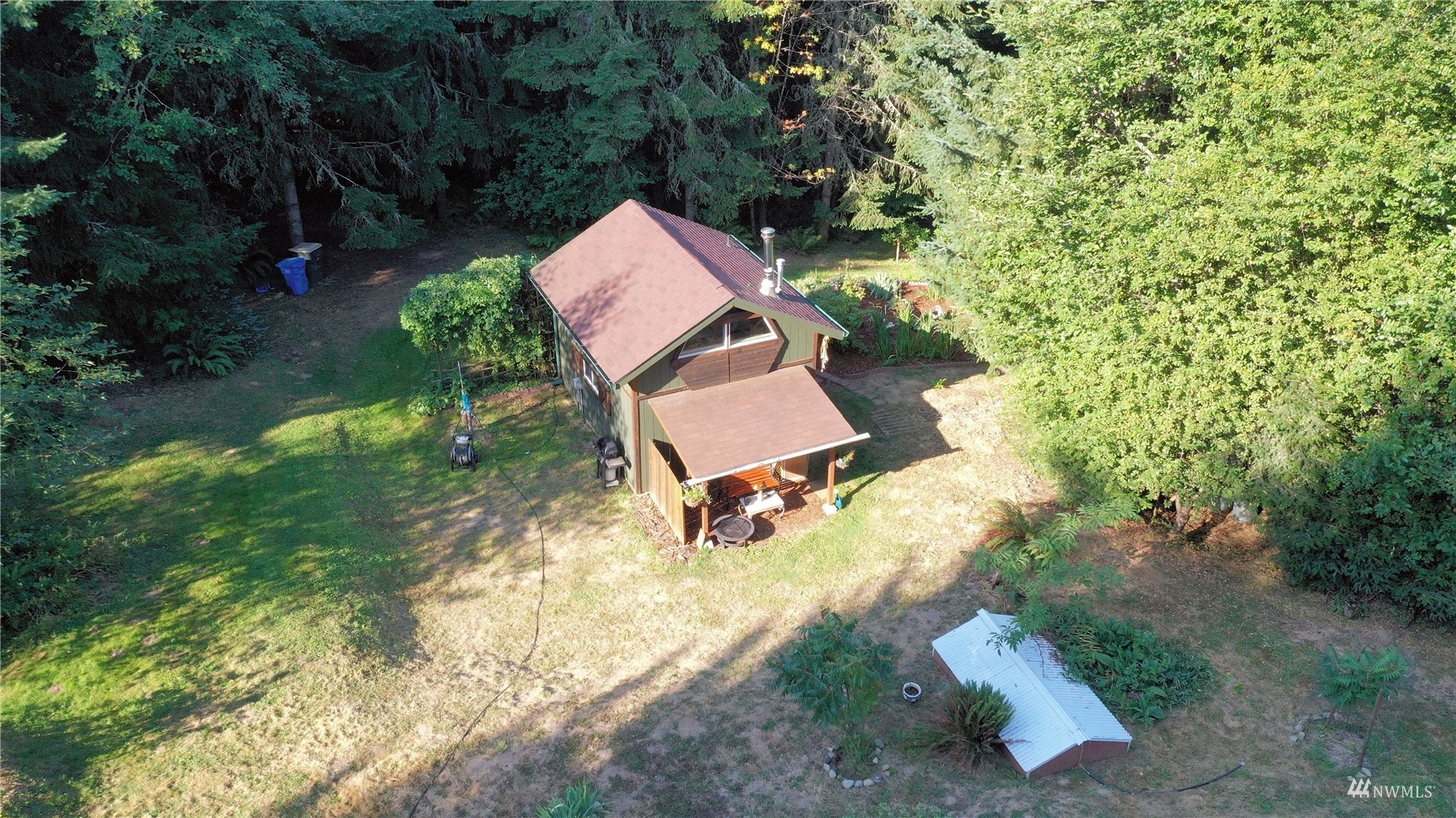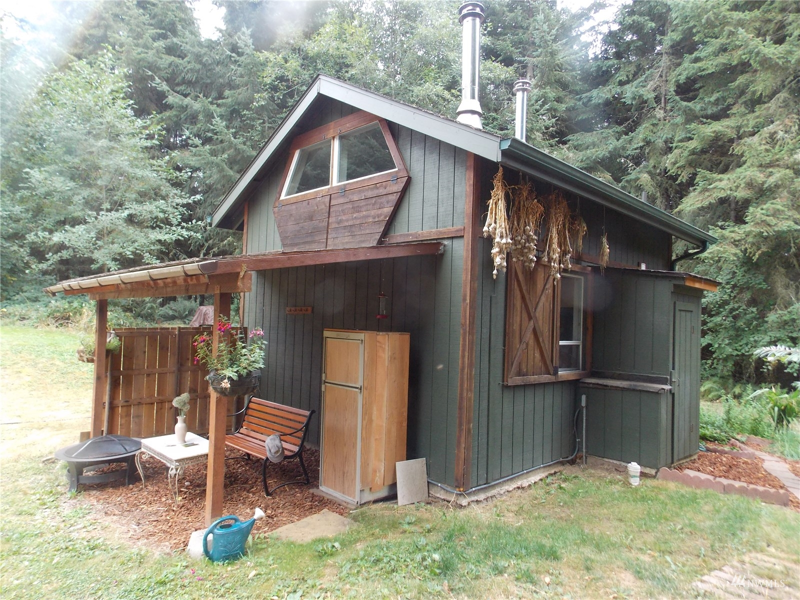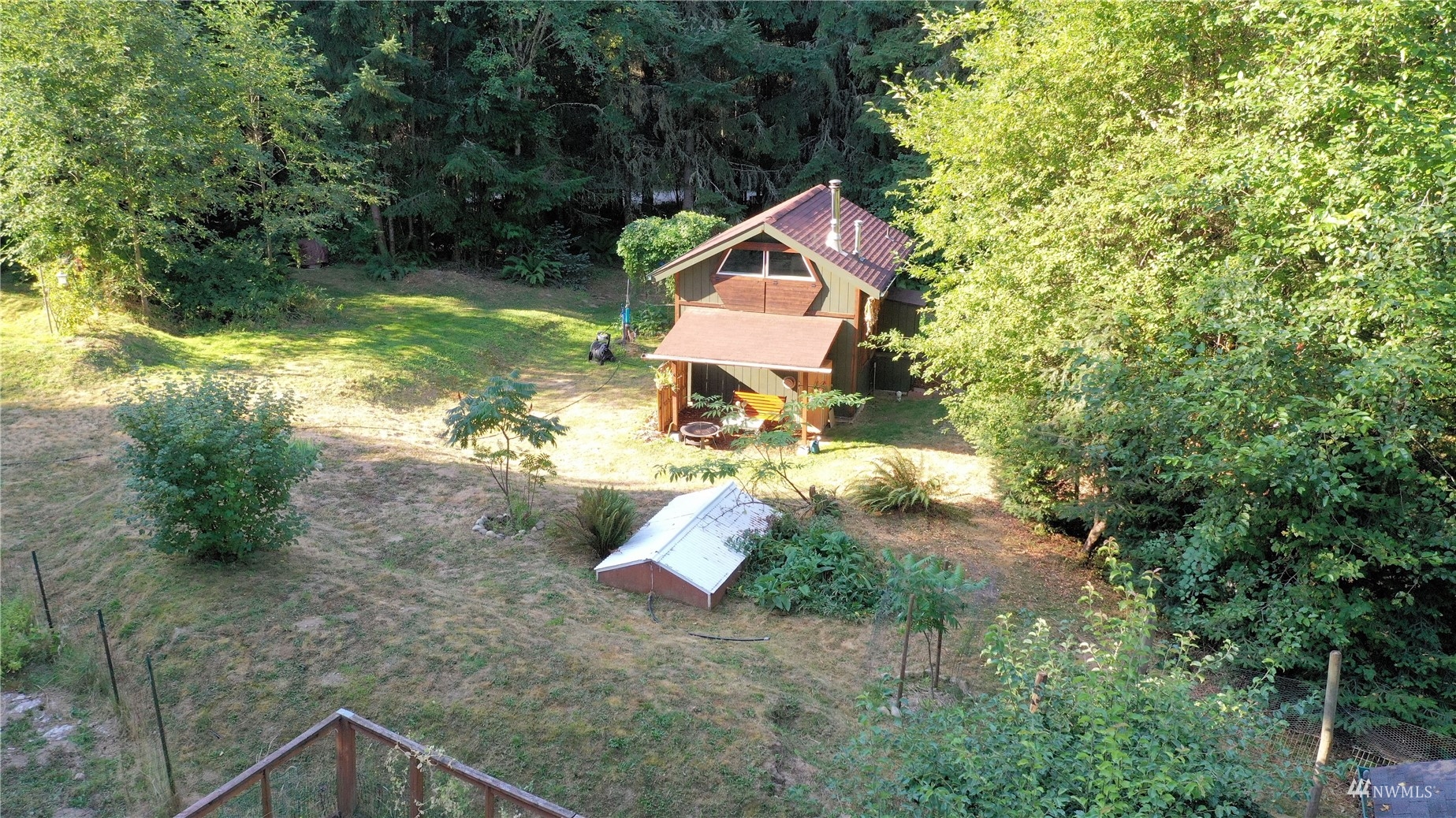 Looking for off-grid self-sufficient property? Then this is a must see. Completely off the grid w/generator & solar. Power is close by in the street. This secluded heavily wooded 5 acres parcel is great for year round living or weekend getaway. Very cute, & functional cabin w/bedroom loft, built so that it would be enlarged. Wood stove. Also propane heat. Lovely covered patio/seating area. Approved 2Bd septic. Well w/hand pump. No wet lands. Garden. Fruit Trees. Chicken coop. Large in-ground water tank. 10x40 container for storing your toys, owned 500 gal propane tank. Exterior painted couple years ago. Fabulous, fabulous location in an upscale gated community of McIntosh Ridge w/ hiking trails. Great investment. Close to Olympia & JBLM.