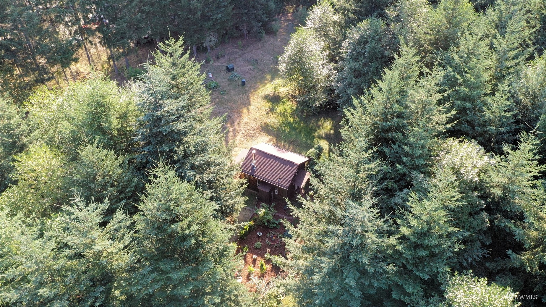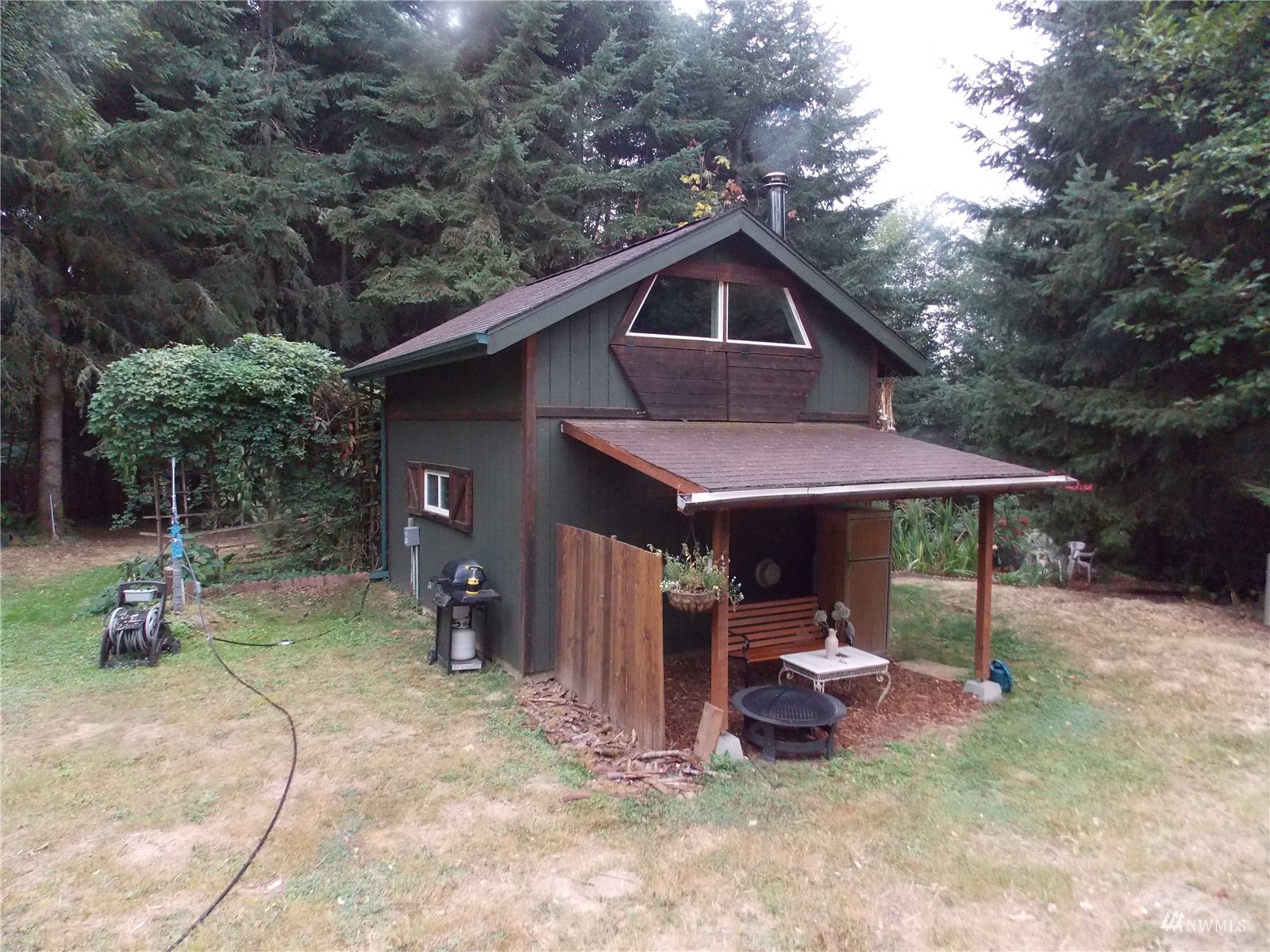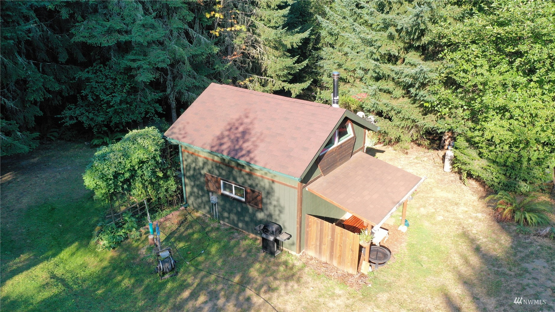 Looking for off-grid self-sufficient property? Then this is a must see. Completely off the grid w/generator & solar. Power is close by in the street. This secluded heavily wooded 5 acres parcel is great for year round living or weekend getaway. Very cute, & functional cabin w/bedroom loft, built so that it would be enlarged. Wood stove. Also propane heat. Lovely covered patio/seating area. Approved 2Bd septic. Well w/hand pump. No wet lands. Garden. Fruit Trees. Chicken coop. Large in-ground water tank. 10x40 container for storing your toys, owned 500 gal propane tank. Exterior painted couple years ago. Fabulous, fabulous location in an upscale gated community of McIntosh Ridge w/ hiking trails. Great investment. Close to Olympia & JBLM.