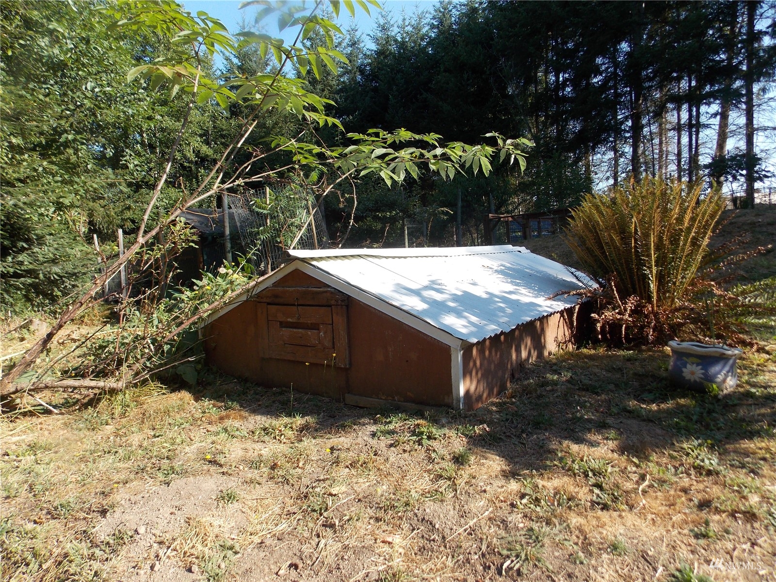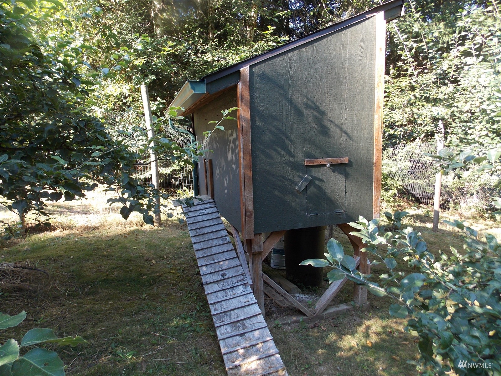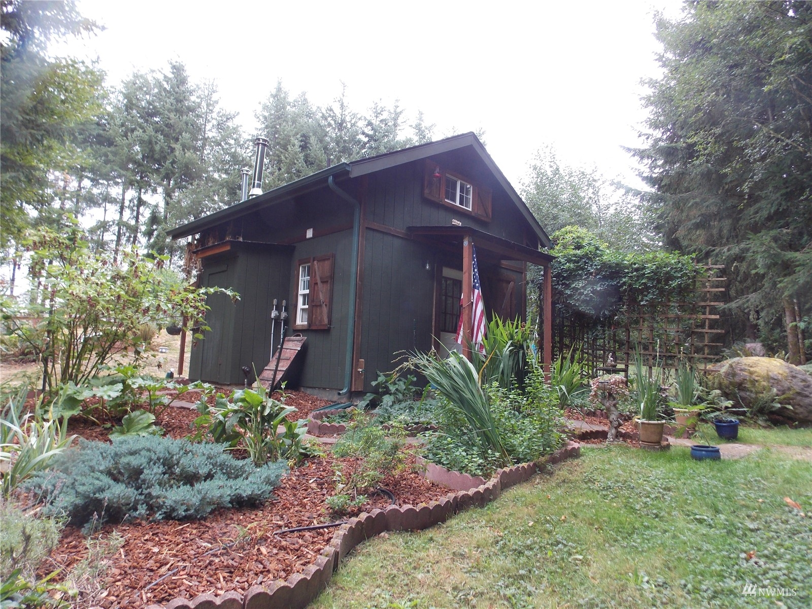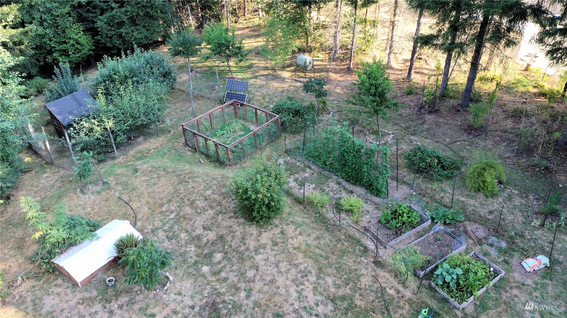 Looking for off-grid self-sufficient property? Then this is a must see. Completely off the grid w/generator & solar. Power is close by in the street. This secluded heavily wooded 5 acres parcel is great for year round living or weekend getaway. Very cute, & functional cabin w/bedroom loft, built so that it would be enlarged. Wood stove. Also propane heat. Lovely covered patio/seating area. Approved 2Bd septic. Well w/hand pump. No wet lands. Garden. Fruit Trees. Chicken coop. Large in-ground water tank. 10x40 container for storing your toys, owned 500 gal propane tank. Exterior painted couple years ago. Fabulous, fabulous location in an upscale gated community of McIntosh Ridge w/ hiking trails. Great investment. Close to Olympia & JBLM.