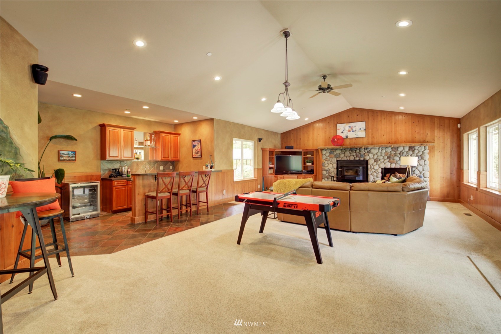 Central A/C Forced Air Hot Water Recirc Pump Ceramic Tile Hardwood Wall to Wall Carpet Bath Off Primary Built-In Vacuum Ceiling Fan(s) Double Pane/Storm Window Dining Room Fireplace (Primary Bedroom) French Doors High Tech Cabling Jetted Tub Security System Vaulted Ceiling(s) Walk-In Closet(s) Walk-In Pantry Wet Bar Wired for Generator