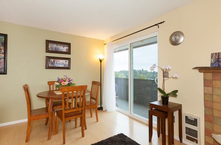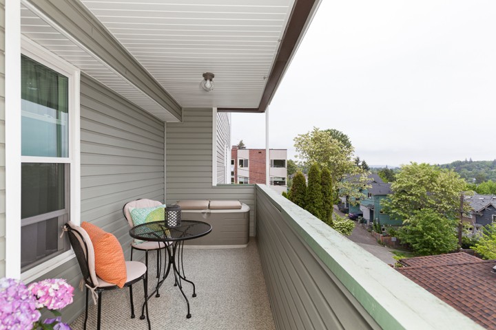 Located on a quiet street with nice views over the Madison Valley, this great location is a short distance to Capitol Hill, the charming shops and restaurants of Madison Valley, the Arboretum and a couple of blocks to bus lines. This charming condo is east-facing with great light and a large view deck. Updated laminate flooring throughout for a modern look. WB fireplace. Bedrooms on opposite sides for great privacy. Bldg has newer siding & windows and a strong HOA. Secure garage parking