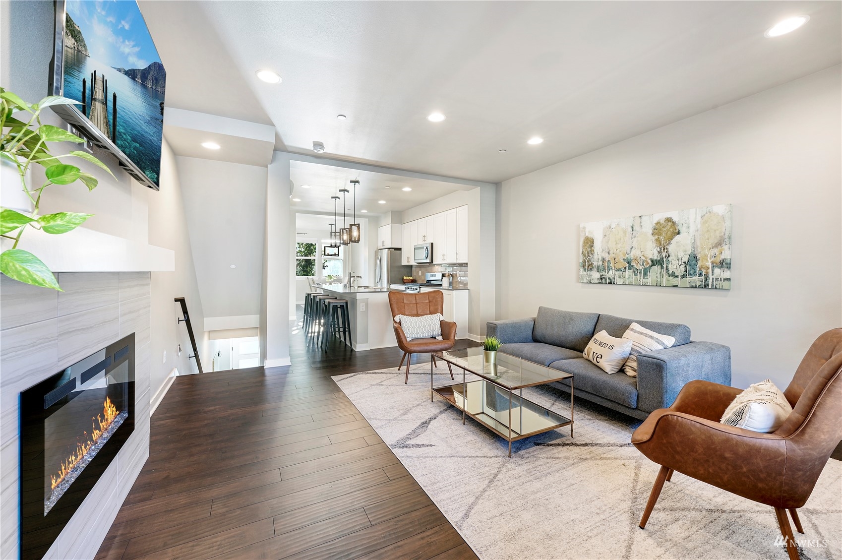 The very best & heart of Issaquah is right outside your door. You will love living steps from Gilman Village, Issaquah Commons, dining, shopping, parks & play. This former model townhome, built in 2019, offers luxury quality and an ideal floor plan with a park-side view. Chef’s kitchen features quartz counters, oversized island, abundant cabinetry and stainless appliances, great for entertaining. Unwind after a long day in the family room in front of the cozy electric fireplace. Air conditioning & smart/dimmable lighting throughout the home. 3 private ensuite bedrooms, primary is a dream w/ heated floors. Issaquah School District, close to transit, plenty of parking for residents & guests, and preinspected! Nothing else like this in town!