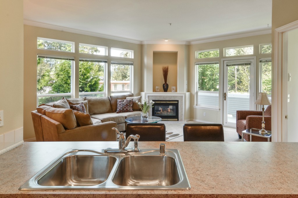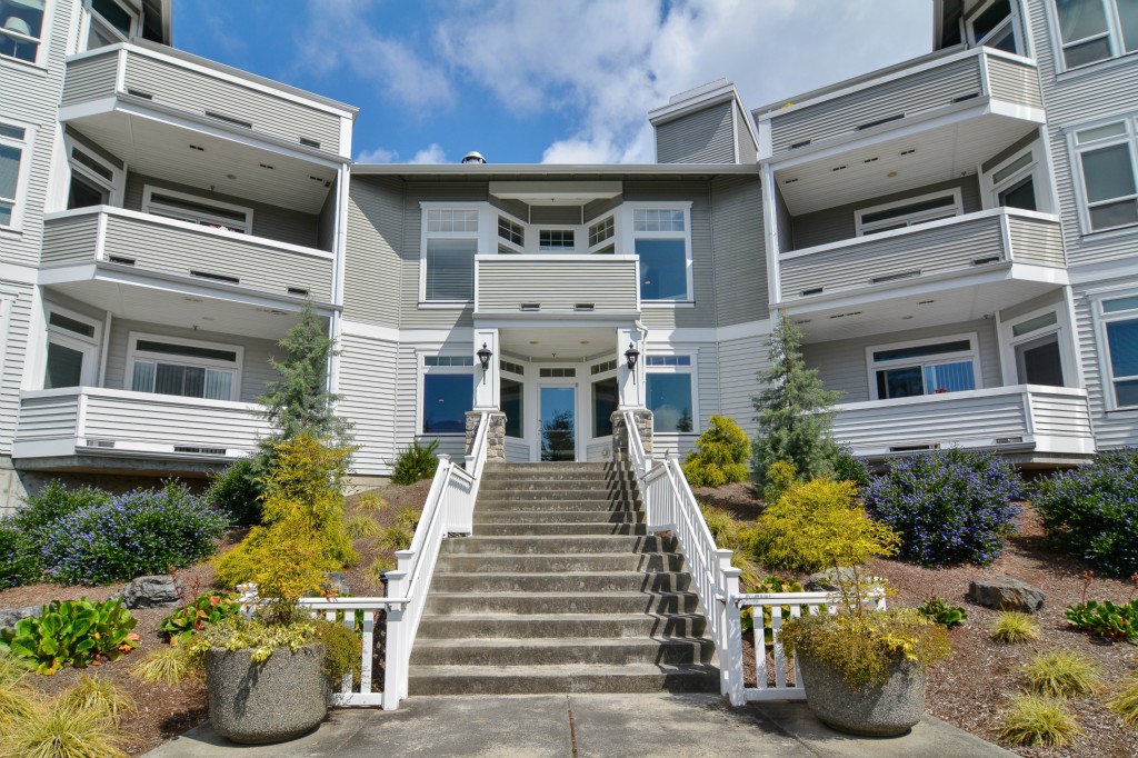 Great condo bldg situated on a large corner lot across from the golf course. Large grounds with garden and views of the golf course from private deck. Secure underground parking with storage unit and ample guest parking. Elevator access so no stairs. Large common areas for social activities and fitness room. New carpet, paint, appliances, heating system and hot water tank. Gas fireplace. Super clean building. Close to shopping, bus and restaurants.