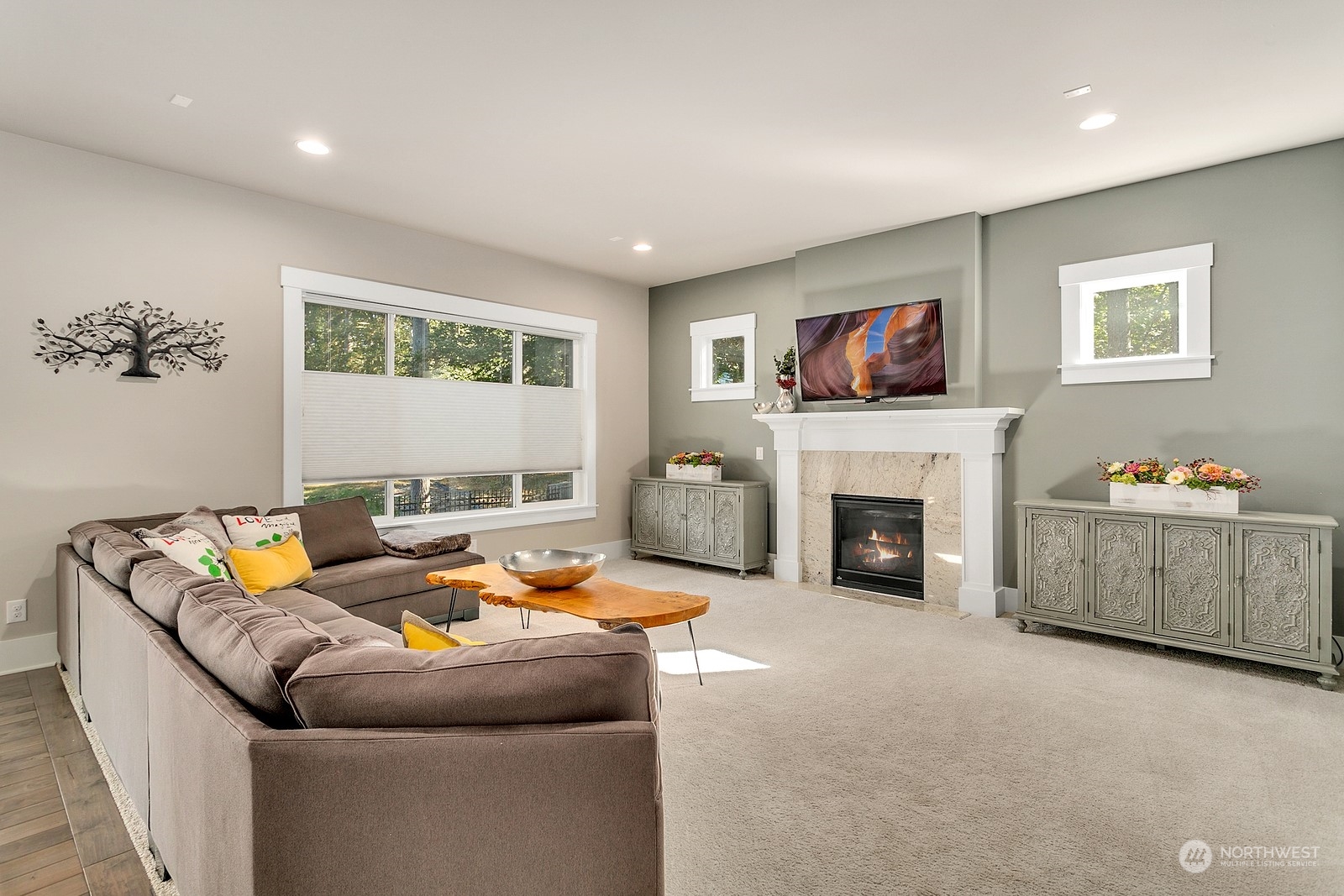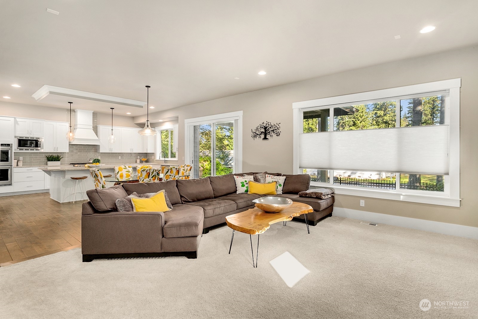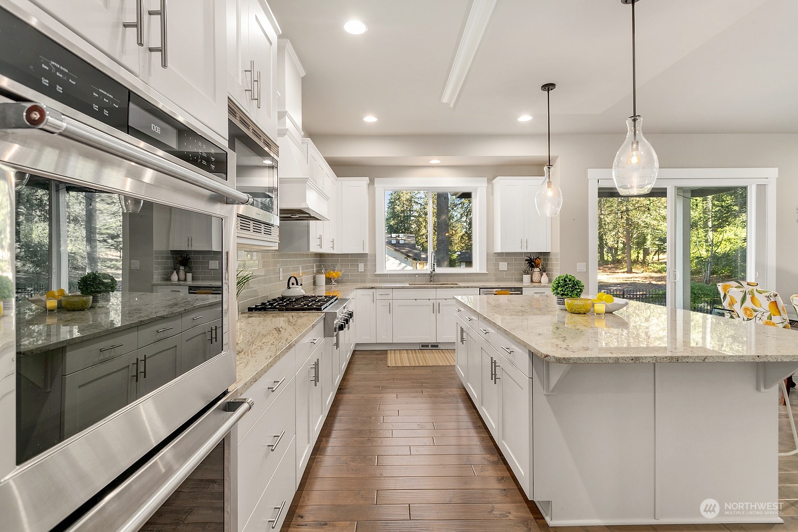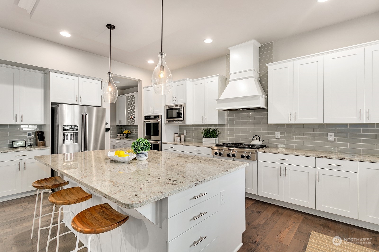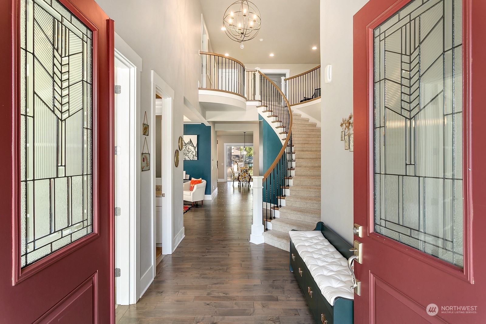 Beautifully built home by American Classic Homes in coveted Porter's Run community- an 8 home enclave! This 3,910 sqft home lives large. 5 bedrooms, 3.75 baths, chef's kitchen, open eating area/ great room & main floor bedroom. Impressive, grand staircase welcomes upon entry. Separate office/den/play area w/ 6th bedroom flexibility, plus additional living area or formal dining room. Spacious upstairs includes primary suite, 3 other large bedrooms, bonus room, utility room. Natural light & upgraded millwork/ cabinetry throughout. Lots of storage! Situated on a large peaceful cul-de-sac, the exterior boasts both covered /uncovered spaces. Fenced yard, 3 car garage! Easy I-90 access, walking distance to Creekside Elementary, Issaquah Schools!