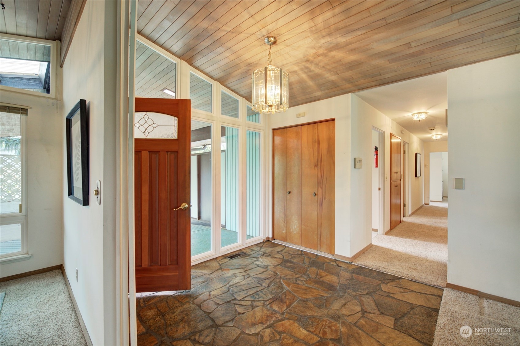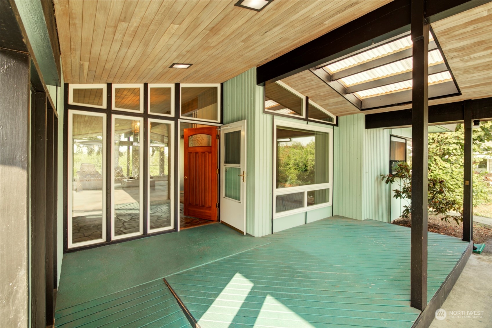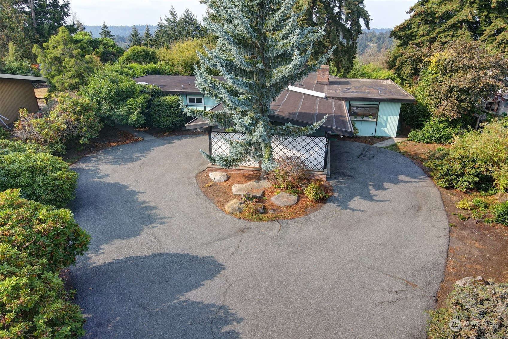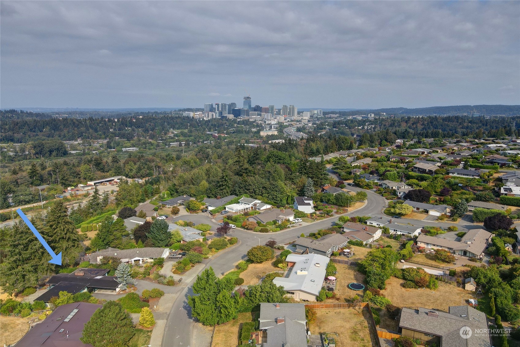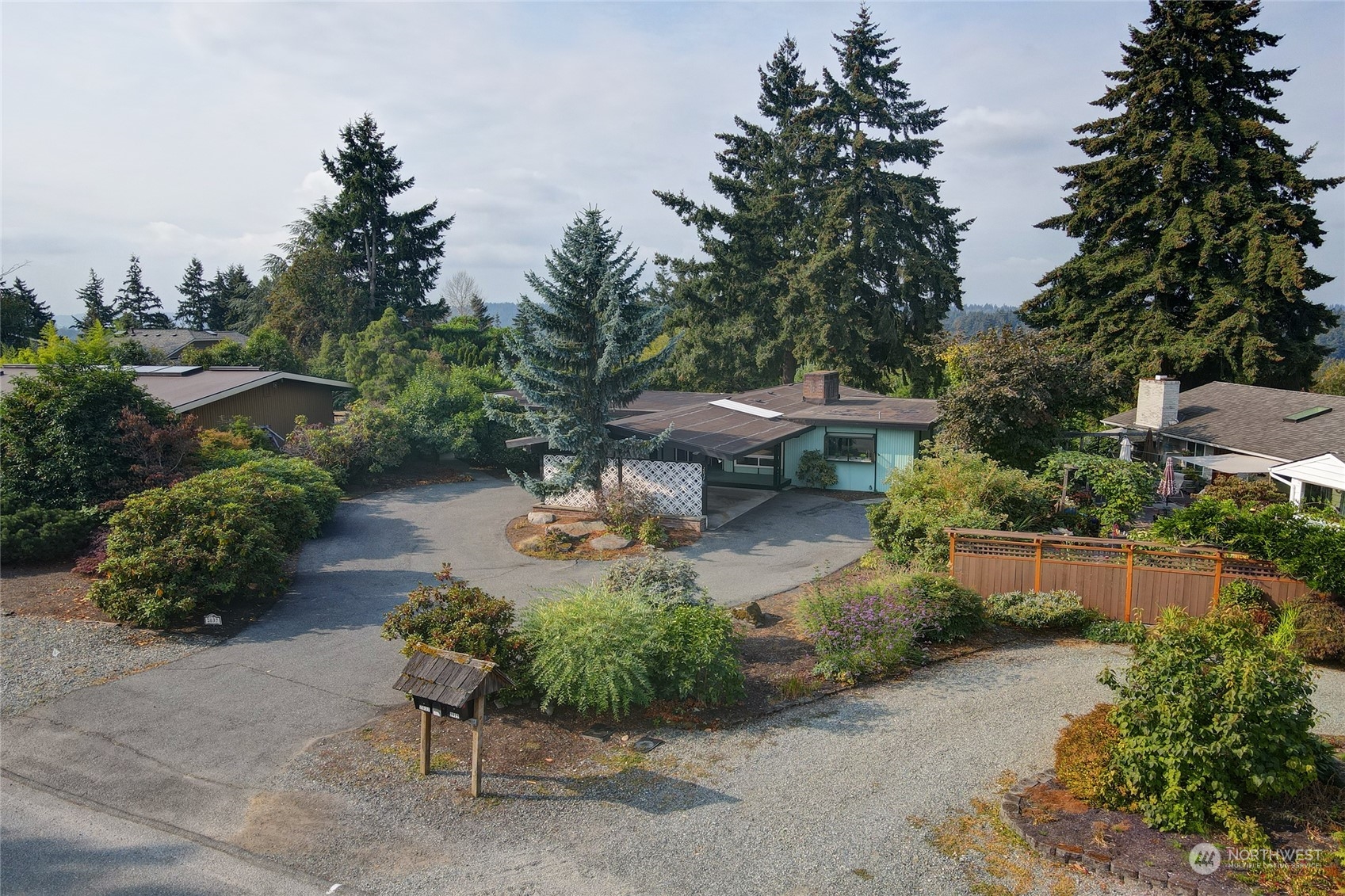 Incredible mid-century home with many of the original design features intact: huge windows, tongue and groove cedar vaulted ceilings, open floorplan with all living area on one level. Remodeled main and primary baths. Remodeled kitchen with stainless steel appliances, Corian counters, and eating bar. Hardwood floors under the carpet. Slider to large view deck and huge patio. Carport with covered front sitting area. Lovely, park-like setting on gently sloping, sunny lot with city and mountain views. Large unfinished basement area. Fantastic Woodridge location with Bellevue schools, easy access to downtown Bellevue or Factoria. This gem is ready for your vision! Two tax lots included in sale. Vacant lot not currently buildable per the City.