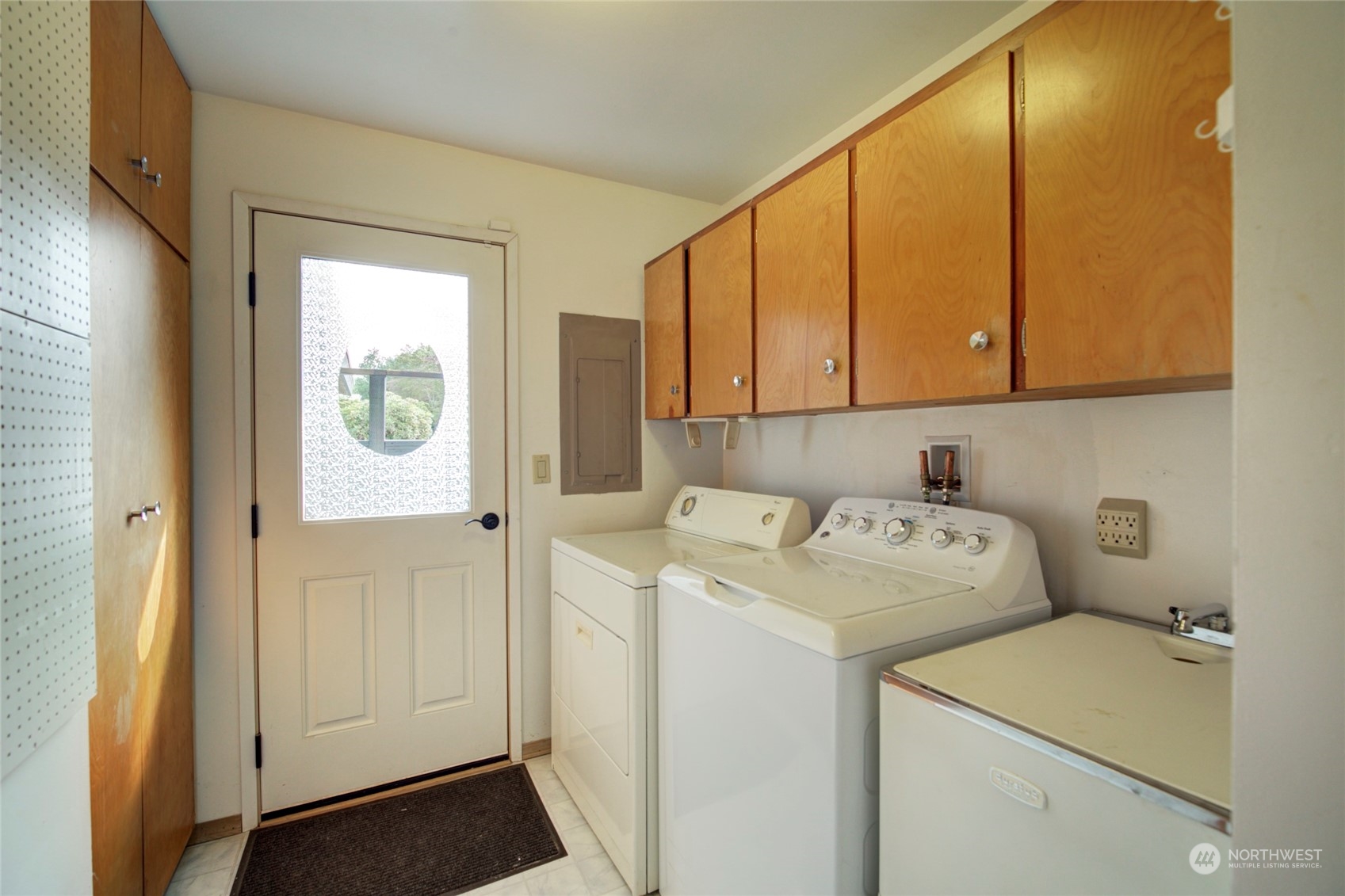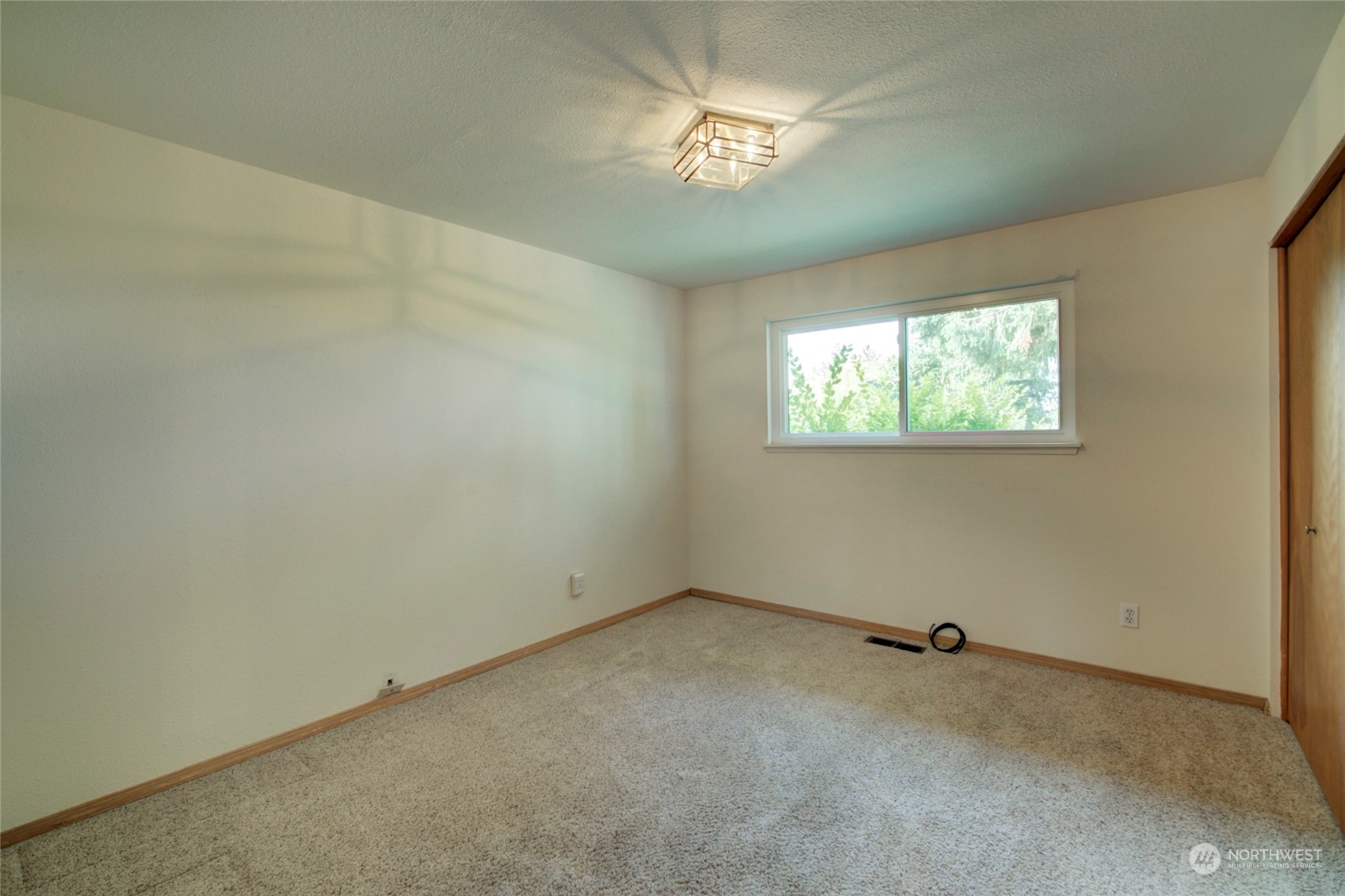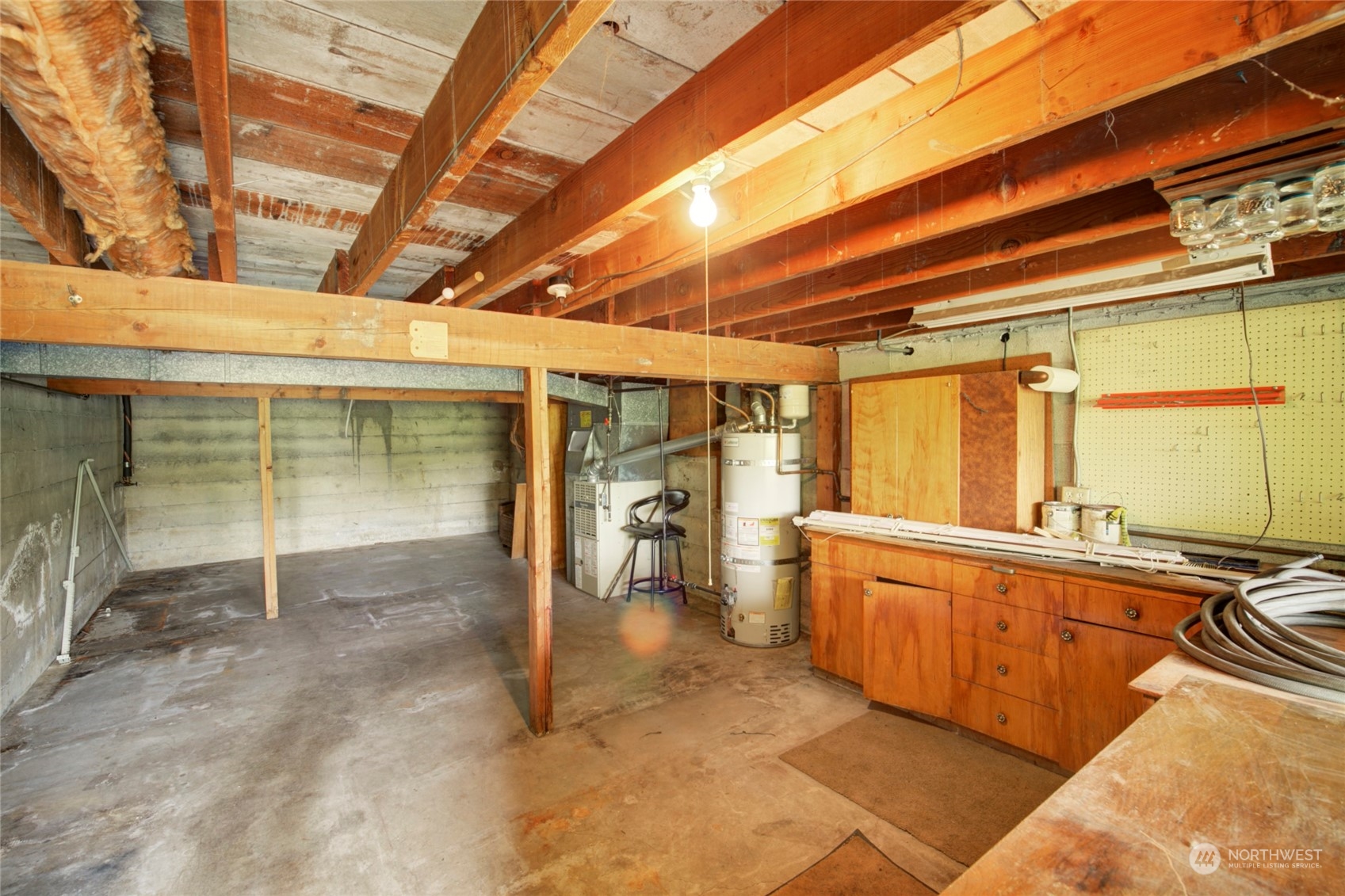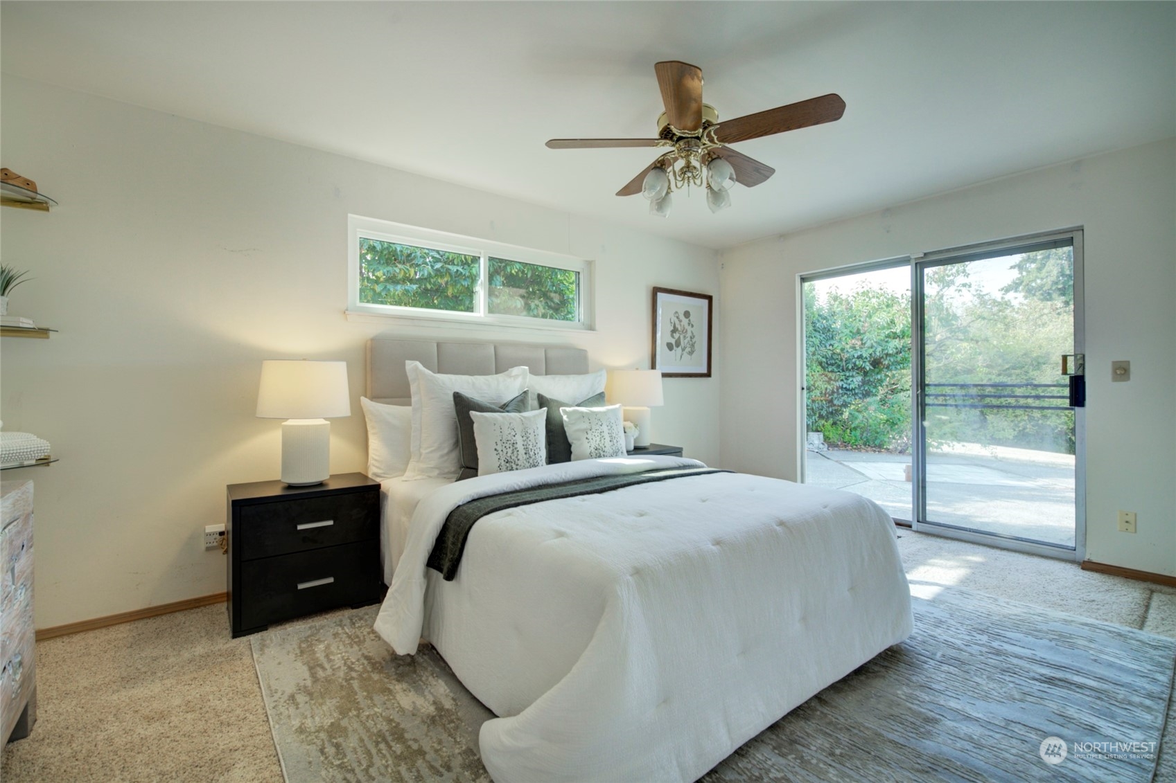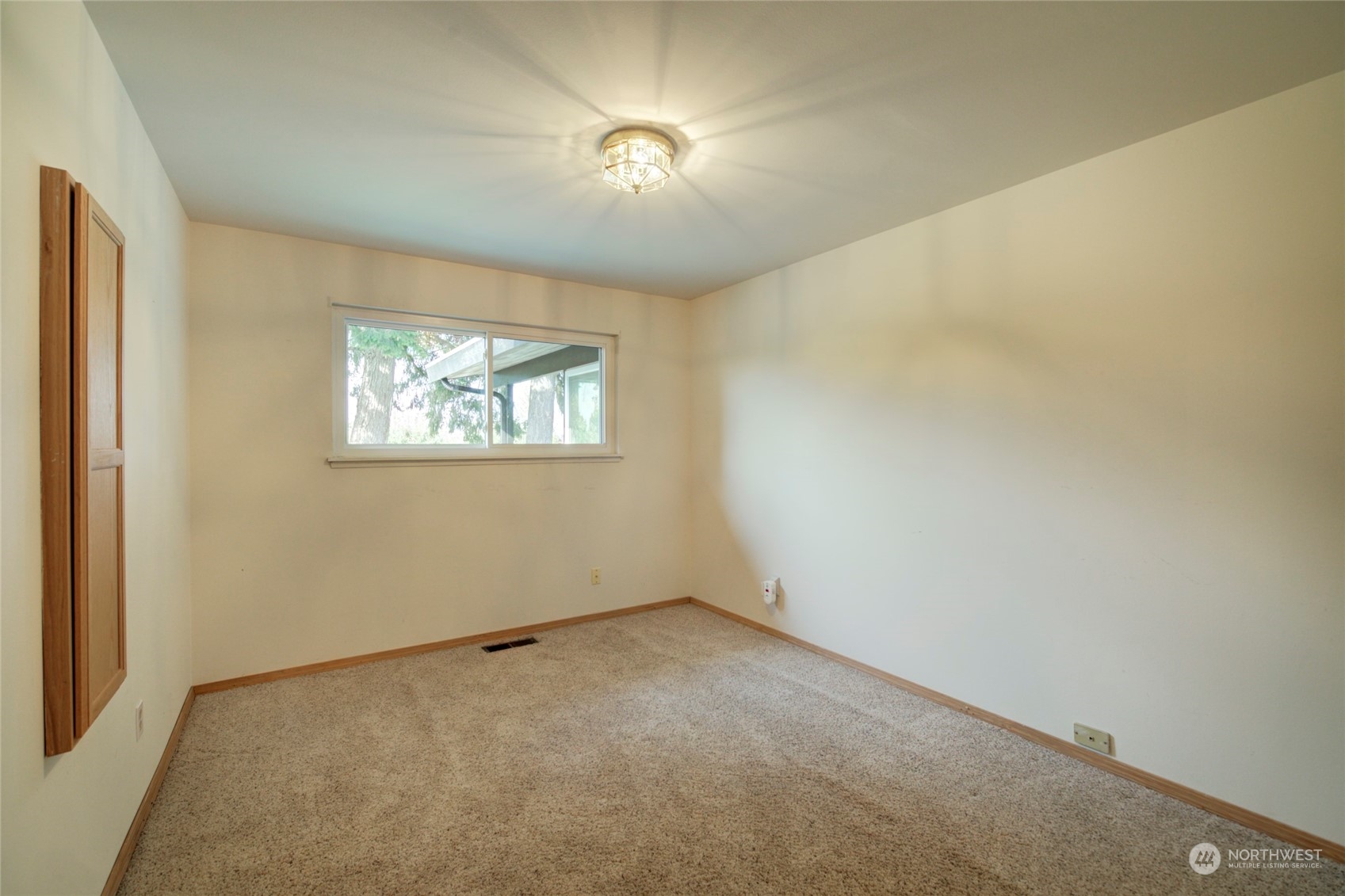 Incredible mid-century home with many of the original design features intact: huge windows, tongue and groove cedar vaulted ceilings, open floorplan with all living area on one level. Remodeled main and primary baths. Remodeled kitchen with stainless steel appliances, Corian counters, and eating bar. Hardwood floors under the carpet. Slider to large view deck and huge patio. Carport with covered front sitting area. Lovely, park-like setting on gently sloping, sunny lot with city and mountain views. Large unfinished basement area. Fantastic Woodridge location with Bellevue schools, easy access to downtown Bellevue or Factoria. This gem is ready for your vision! Two tax lots included in sale. Vacant lot not currently buildable per the City.
