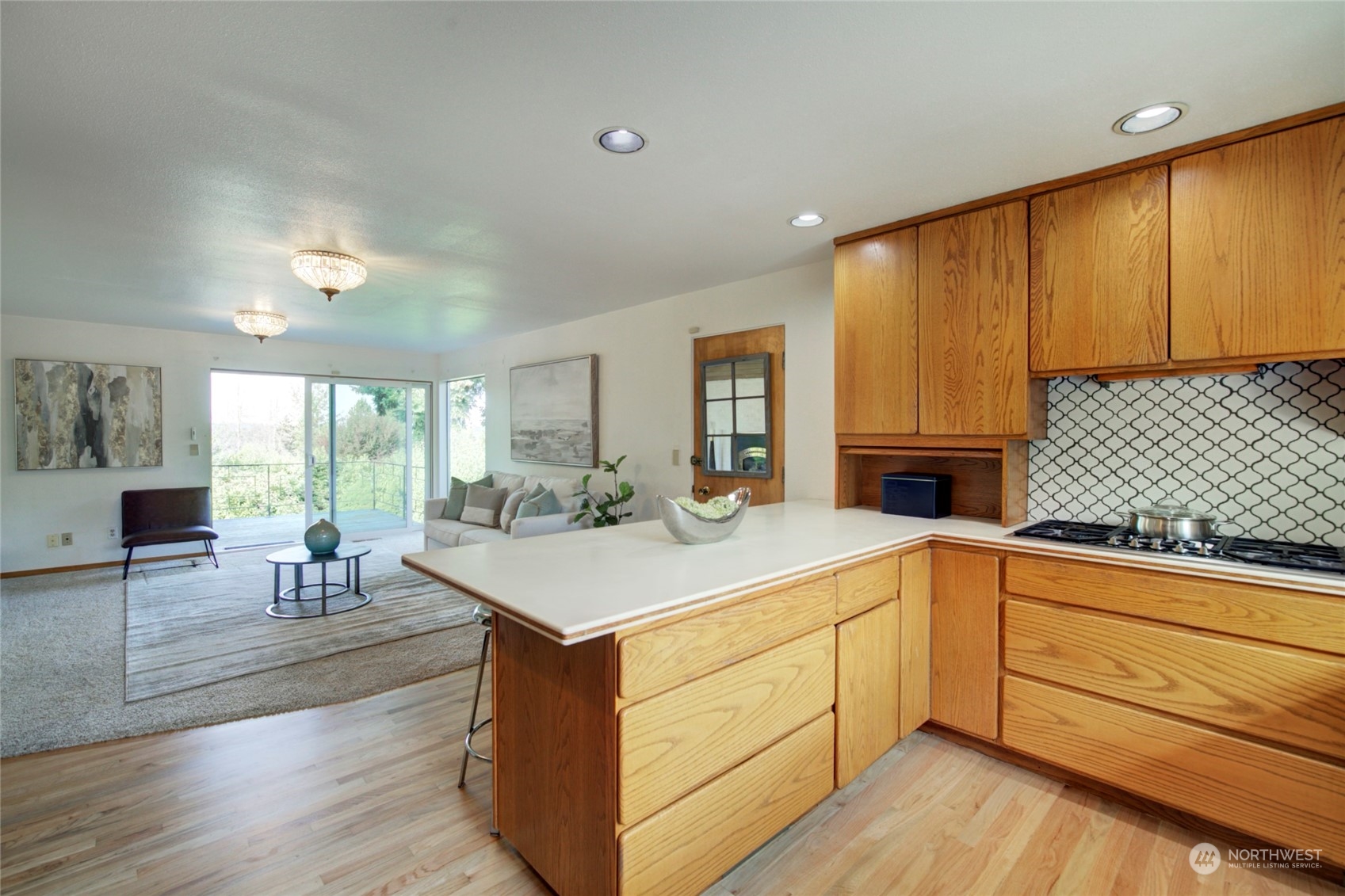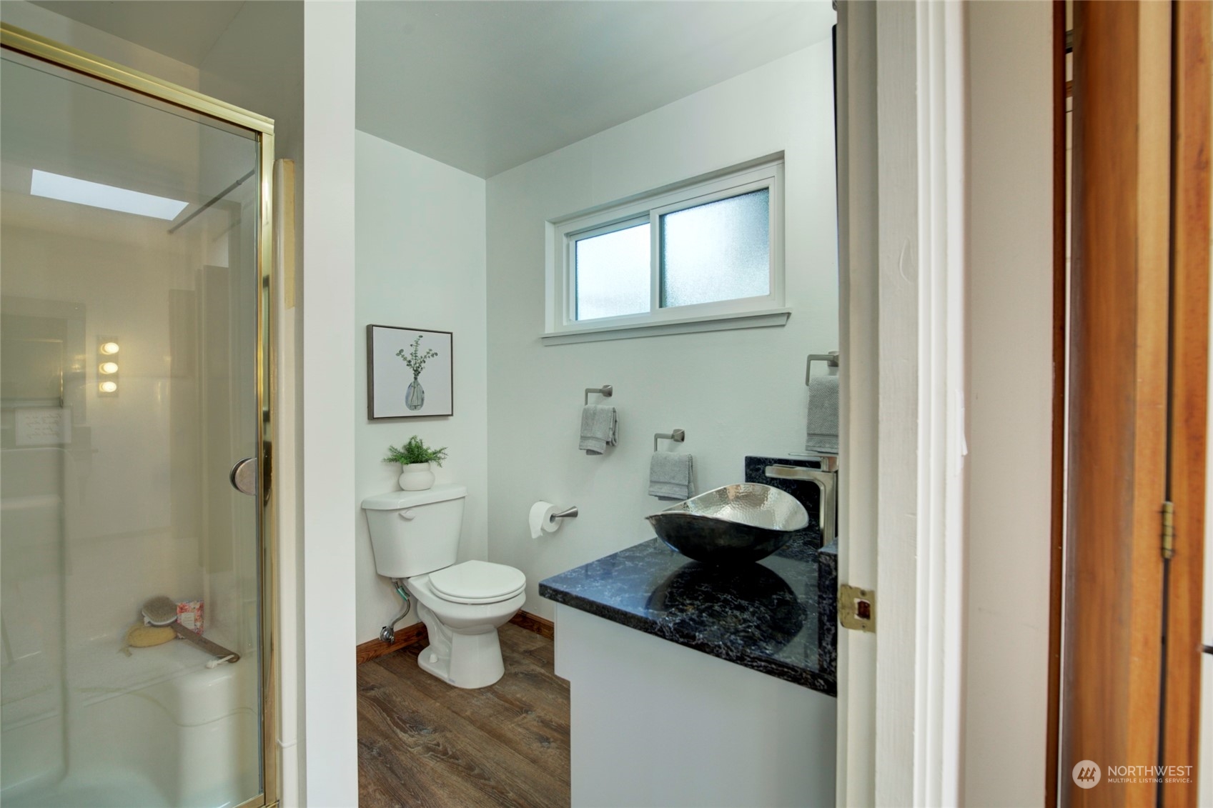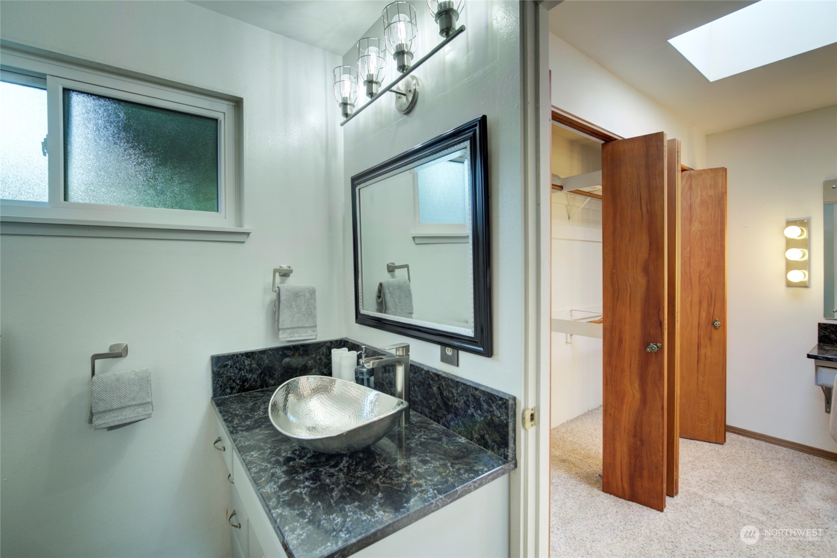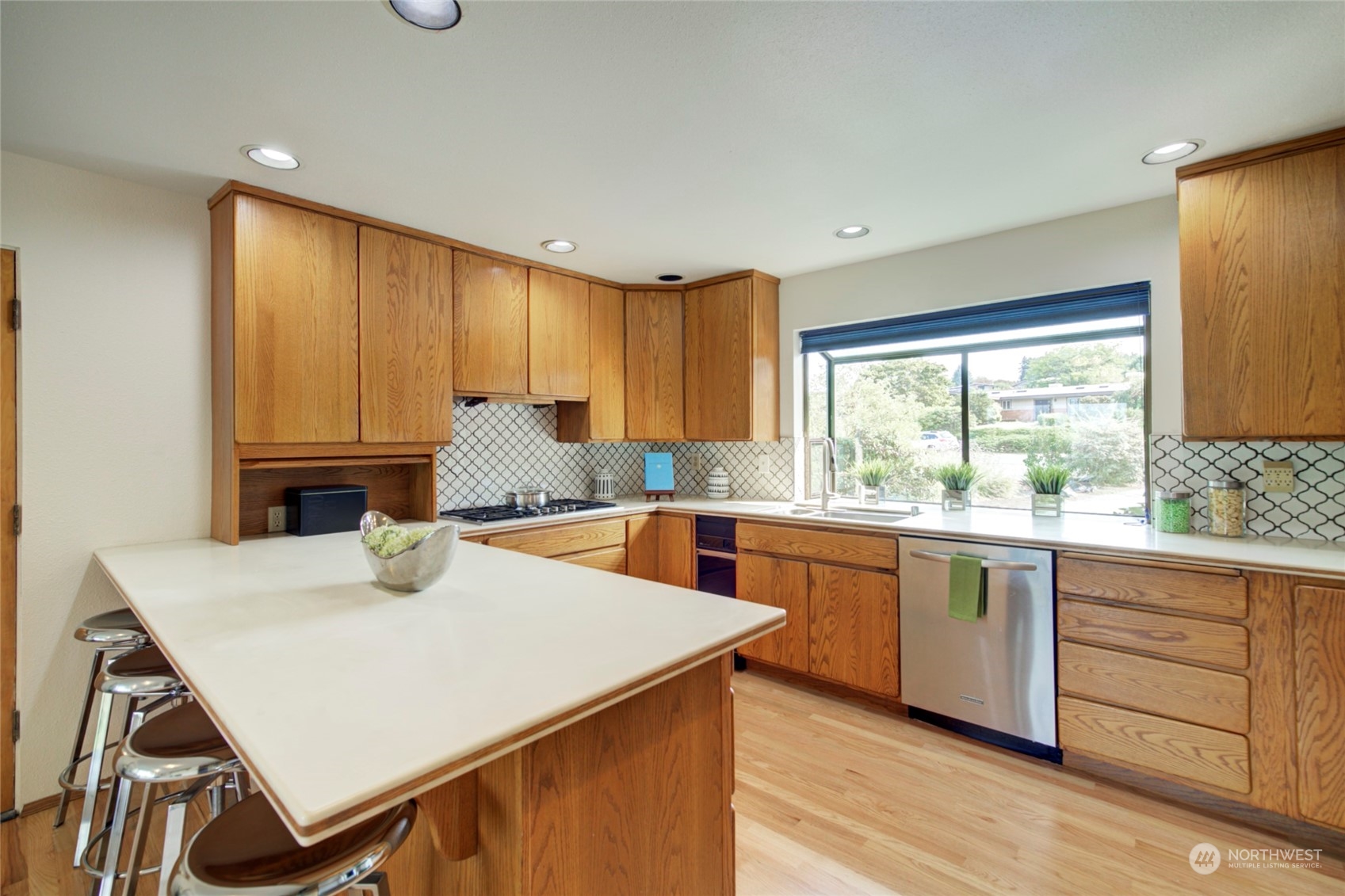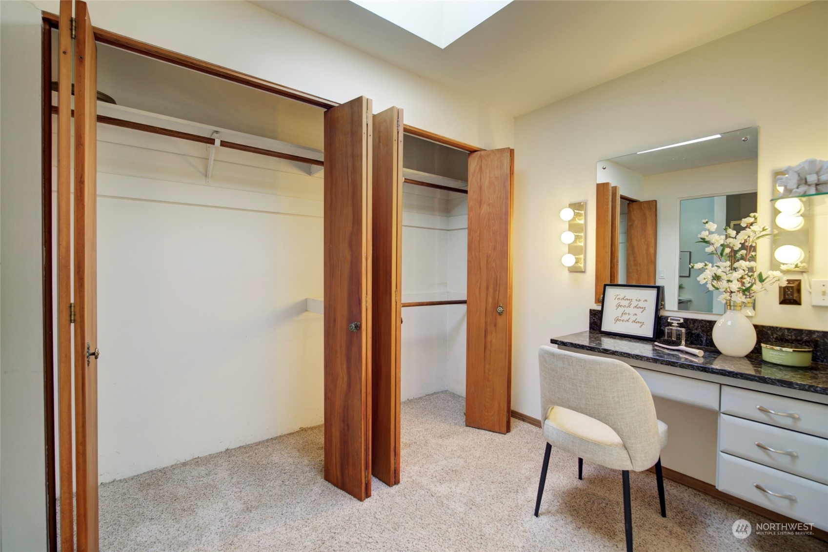 Incredible mid-century home with many of the original design features intact: huge windows, tongue and groove cedar vaulted ceilings, open floorplan with all living area on one level. Remodeled main and primary baths. Remodeled kitchen with stainless steel appliances, Corian counters, and eating bar. Hardwood floors under the carpet. Slider to large view deck and huge patio. Carport with covered front sitting area. Lovely, park-like setting on gently sloping, sunny lot with city and mountain views. Large unfinished basement area. Fantastic Woodridge location with Bellevue schools, easy access to downtown Bellevue or Factoria. This gem is ready for your vision! Two tax lots included in sale. Vacant lot not currently buildable per the City.