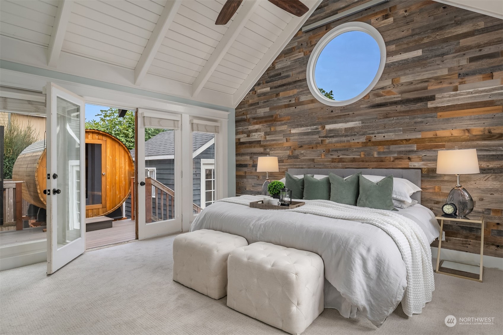 Forced Air Central A/C Hardwood Wall to Wall Carpet Laminate Hardwood Second Primary Bedroom Bath Off Primary Ceiling Fan(s) Double Pane/Storm Window Dining Room French Doors Sauna Vaulted Ceiling(s) Water Heater