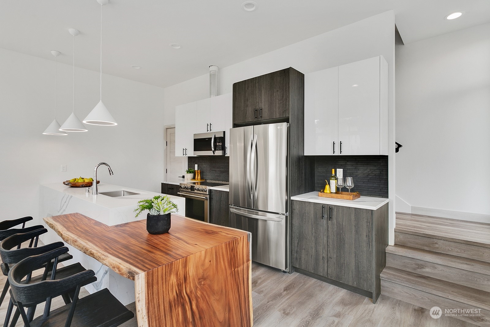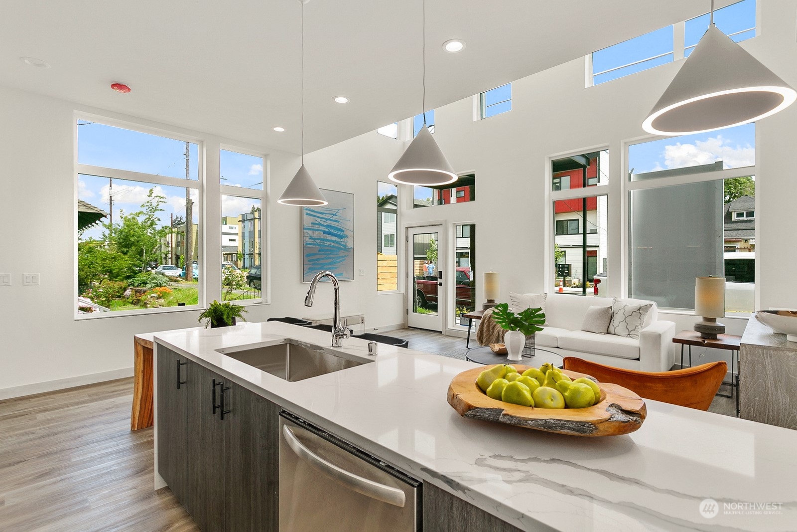 Welcome home to the Carleton, a collection of 7 Urban Centric townhomes located in the heart of Georgetown! This collection of homes blends efficient open concept living with high-end style. This 2bed, 2bath home features high-vaulted ceilings, open gourmet kitchens w/SS Appliances, custom quartz kitchen island with waterfall edging. The Primary Suite invites you in with a private deck, heated bathroom flooring and a oversized walk-in shower. Laundry located conveniently on the 2nd floor and has 1car covered parking spot. Entertaining made easy with a expansive Roof Deck with views of Seattle/Mt Rainier. Near hip restaurants, local breweries & a unique retail core; Georgetown is the place!