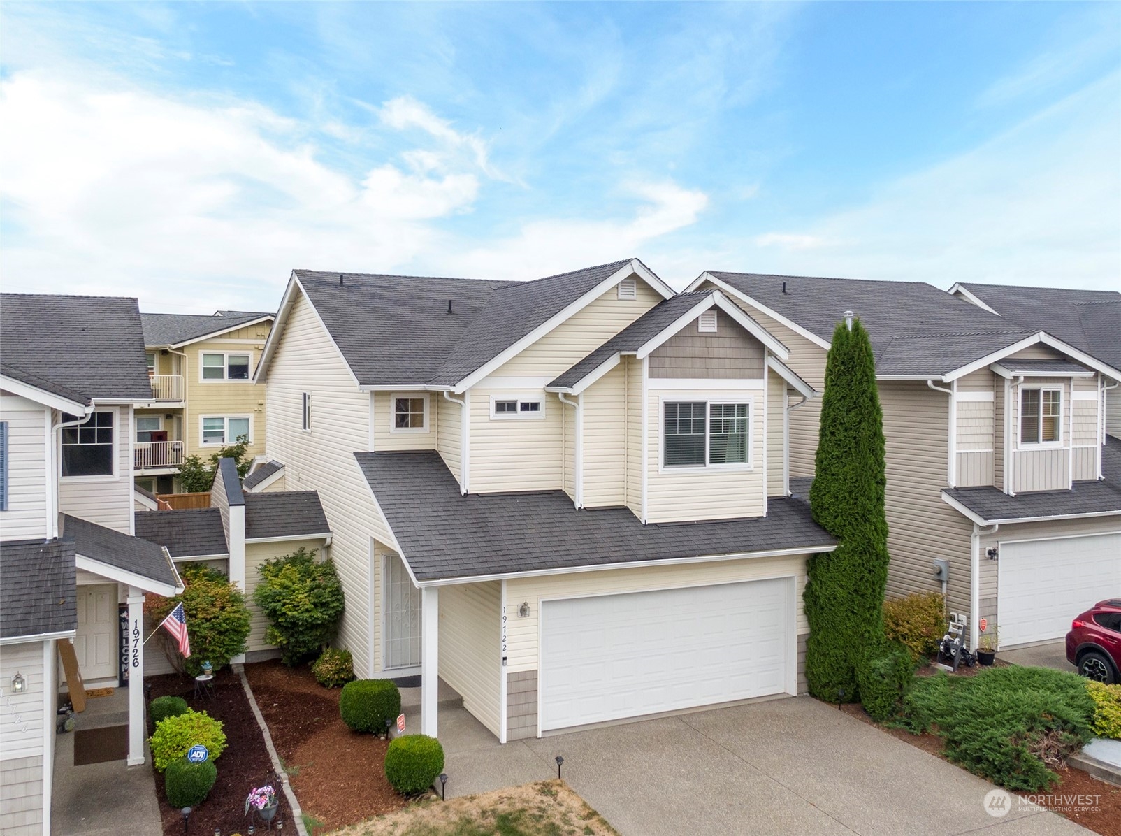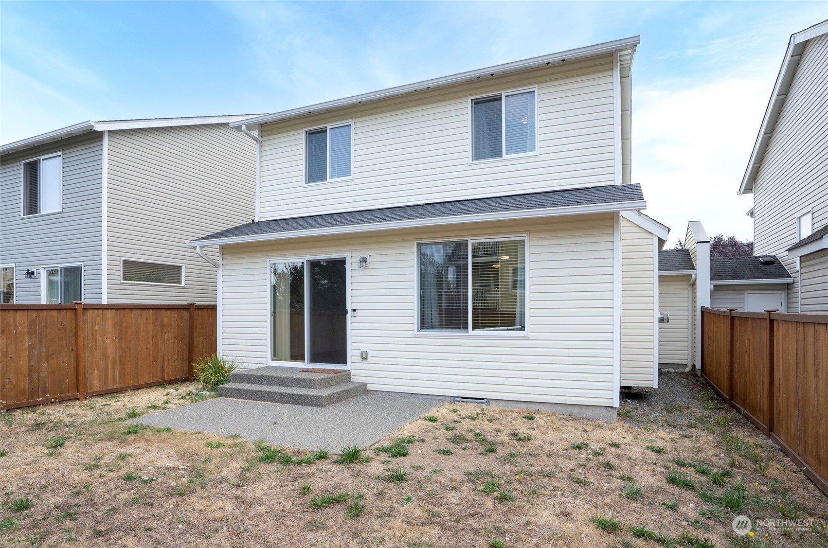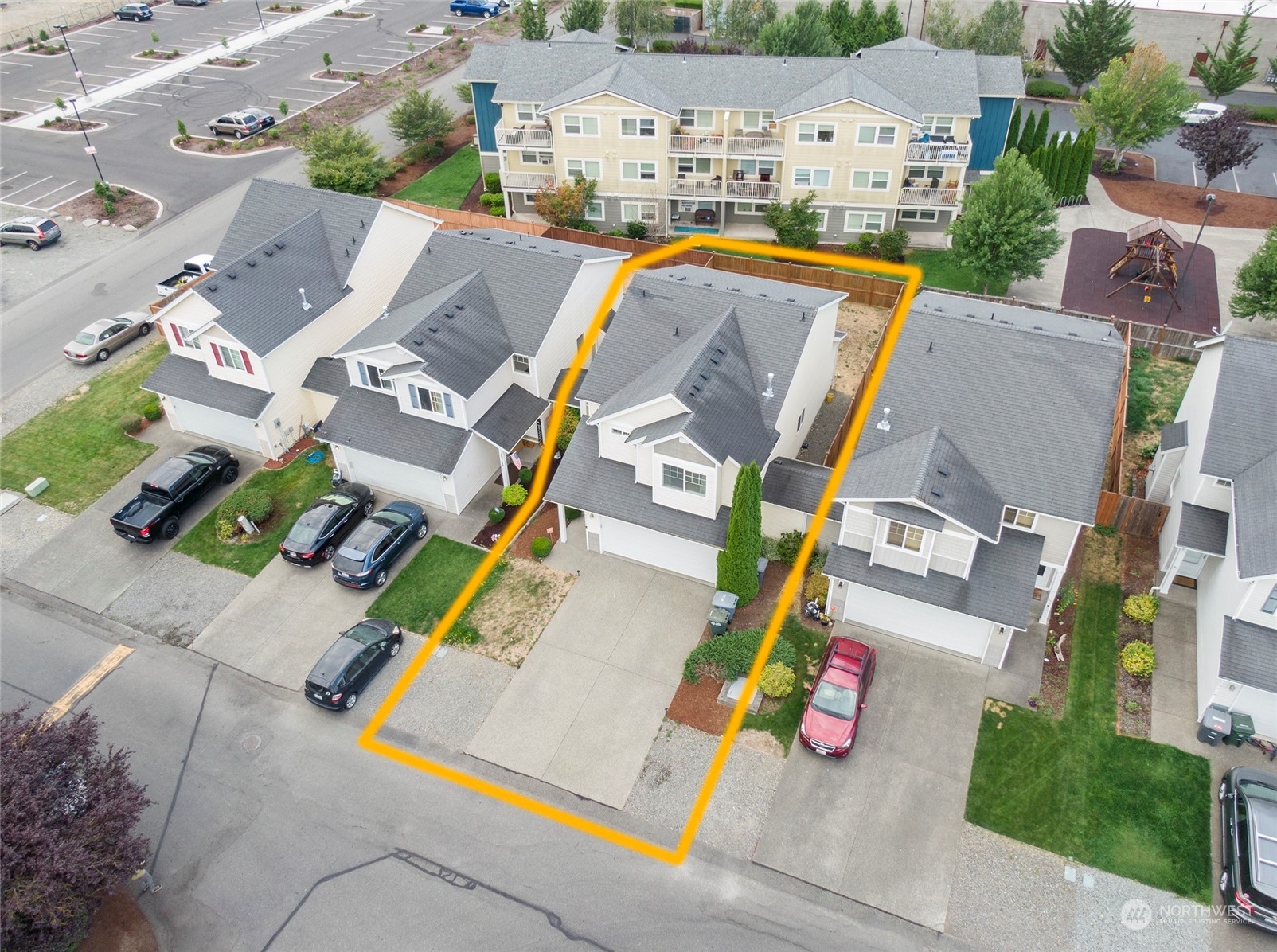 Built in comfort with this Townhome featuring 3 bedrooms & 2.5 bath. Connection to adjoining unit is only through storage area w/no shared walls. Spend cozy days/nights by the beautiful fireplace in the living space. Kitchen is complimented by SS appliances, offers tons of counter, cabinet space and flows into the open concept of living/dining spaces. Upper-level features primary suite with private bath, double sinks, & 2 walk-in closets. 2 more guest suites, full guest bath & utility room. Enjoy a beautiful day in your fully fenced private backyard. Community features a park & sports court. Conveniently located near the heart of Puyallup, you are just minutes away from restaurants, shopping, target and parks, with an easy drive to JBLM.