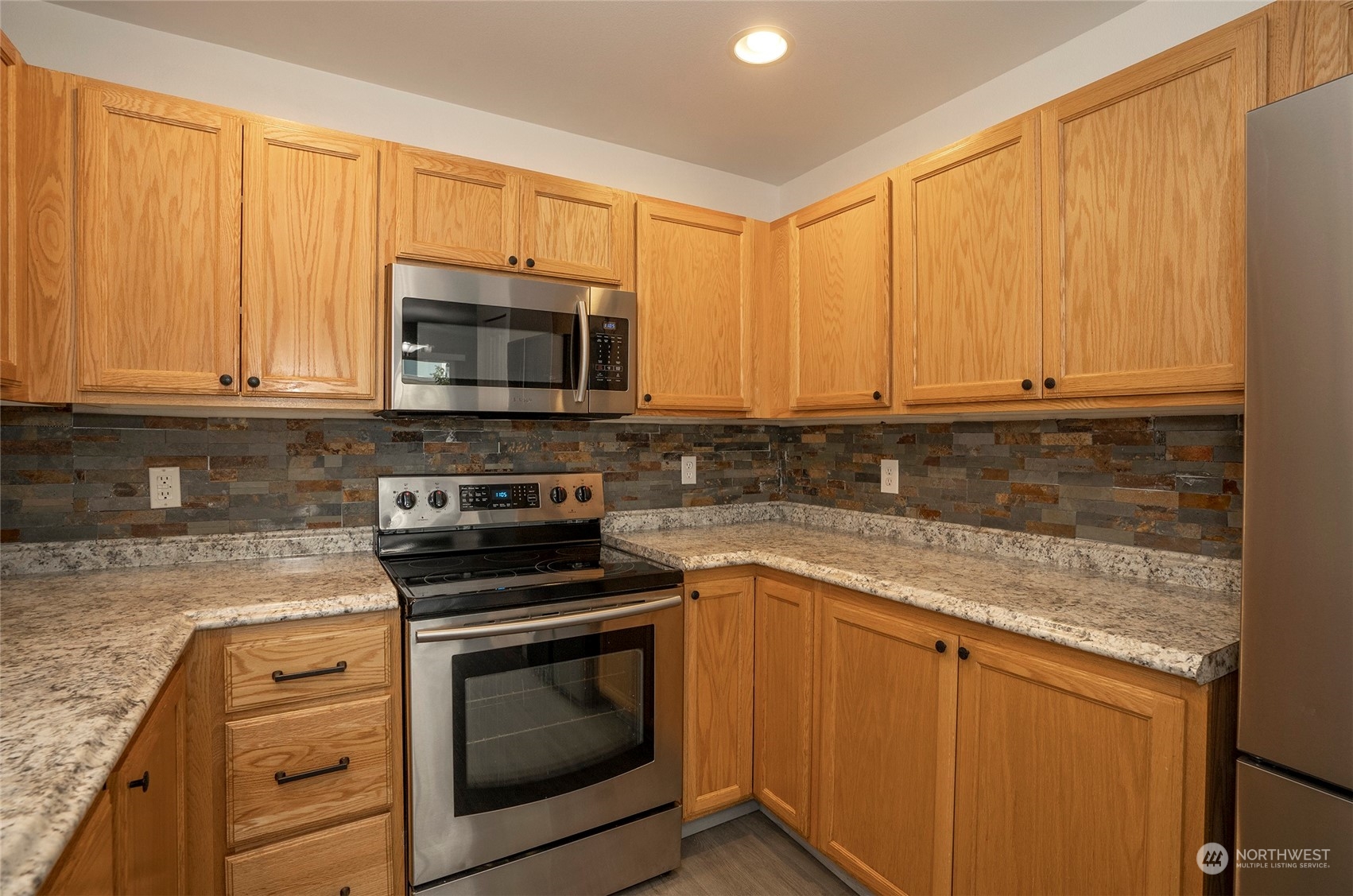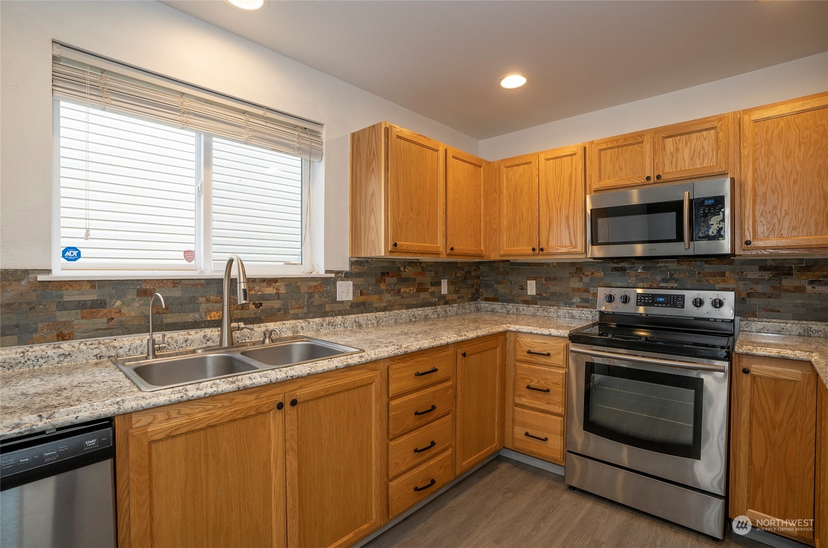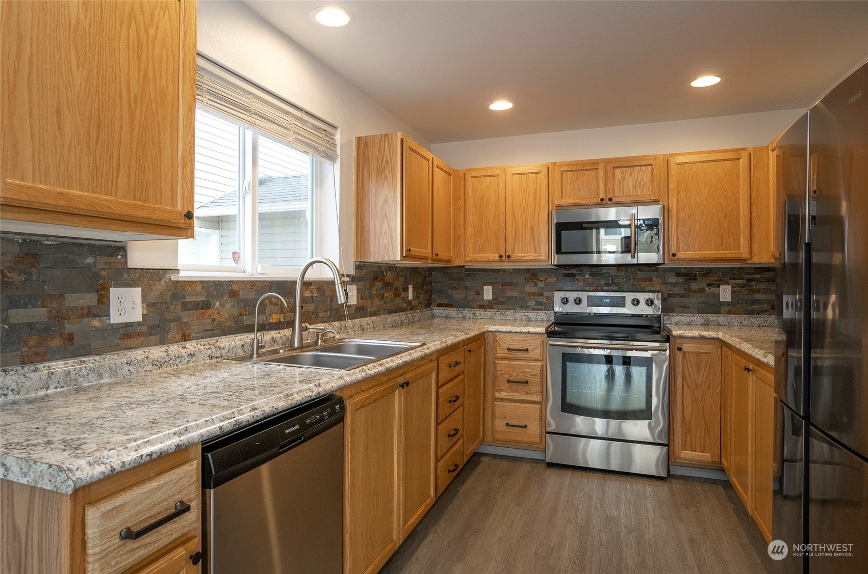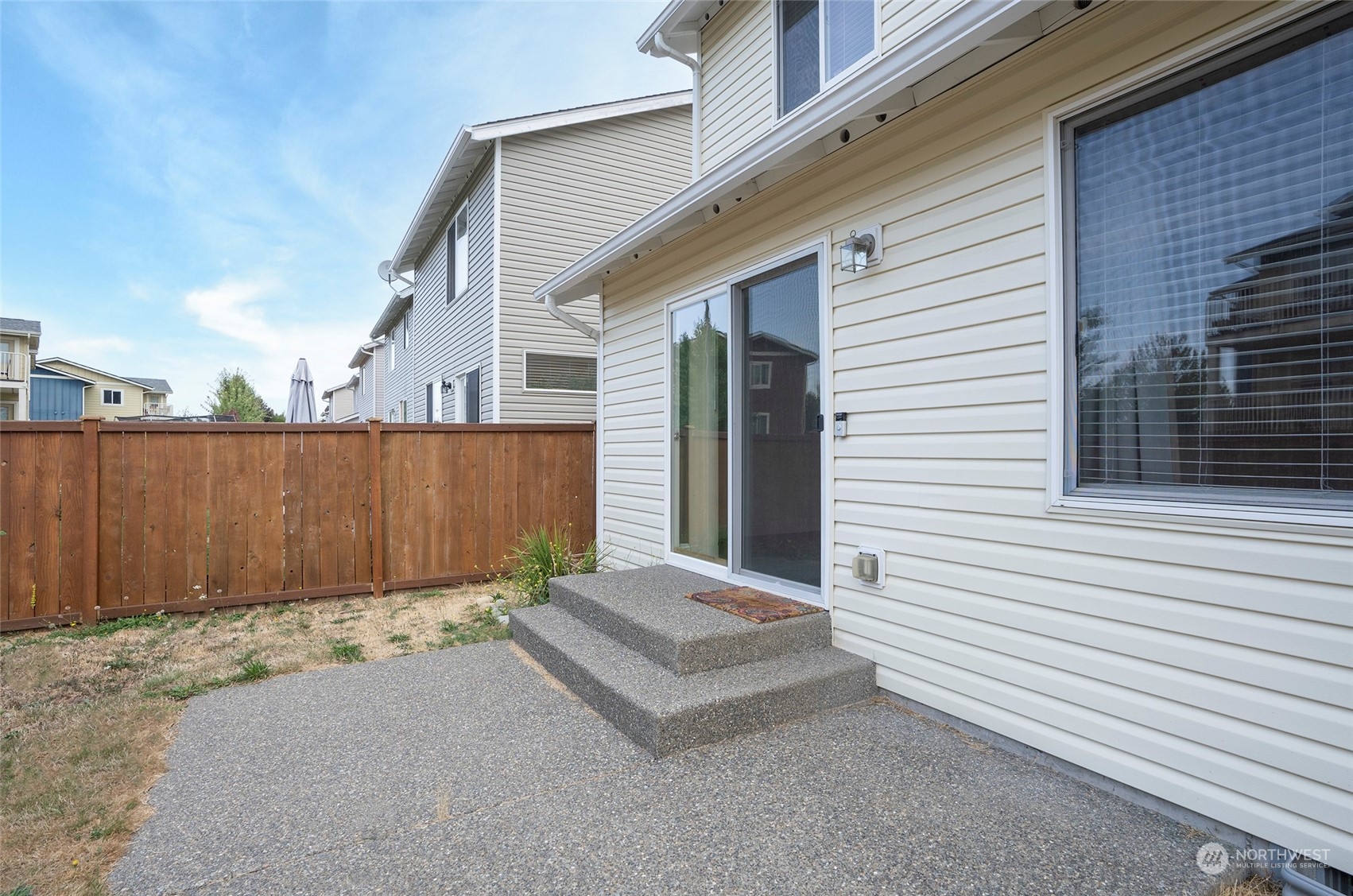 Built in comfort with this Townhome featuring 3 bedrooms & 2.5 bath. Connection to adjoining unit is only through storage area w/no shared walls. Spend cozy days/nights by the beautiful fireplace in the living space. Kitchen is complimented by SS appliances, offers tons of counter, cabinet space and flows into the open concept of living/dining spaces. Upper-level features primary suite with private bath, double sinks, & 2 walk-in closets. 2 more guest suites, full guest bath & utility room. Enjoy a beautiful day in your fully fenced private backyard. Community features a park & sports court. Conveniently located near the heart of Puyallup, you are just minutes away from restaurants, shopping, target and parks, with an easy drive to JBLM.