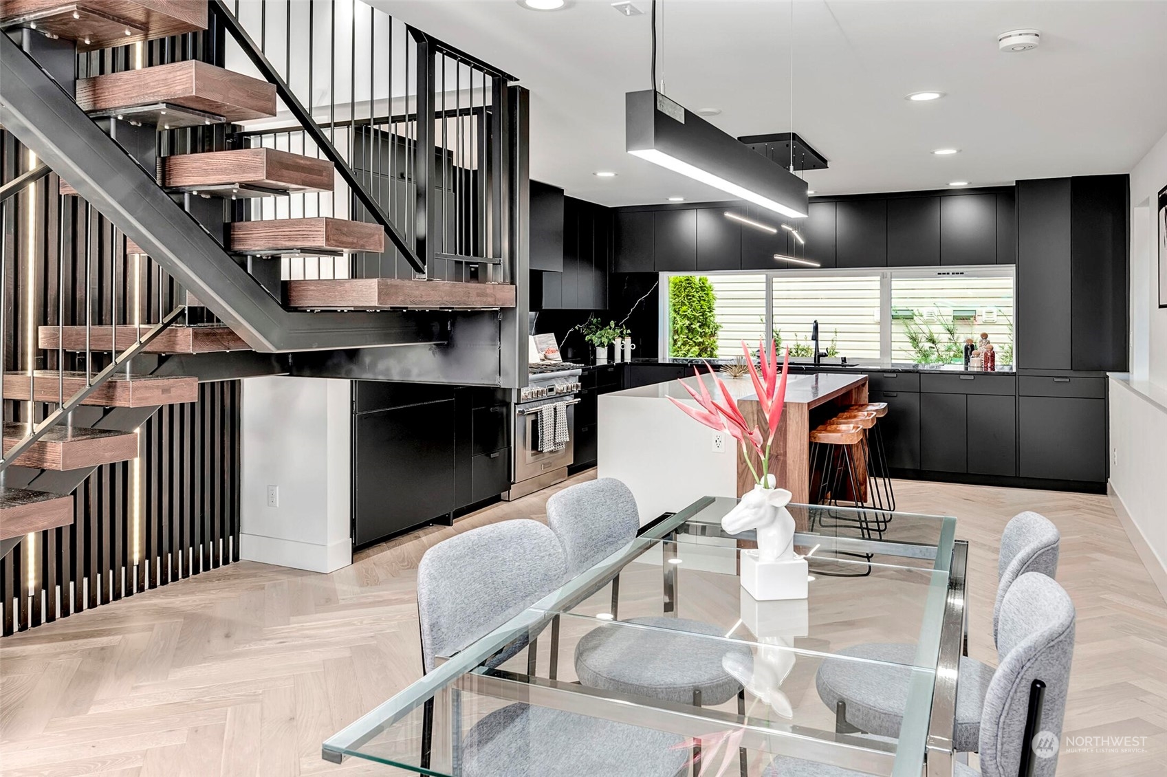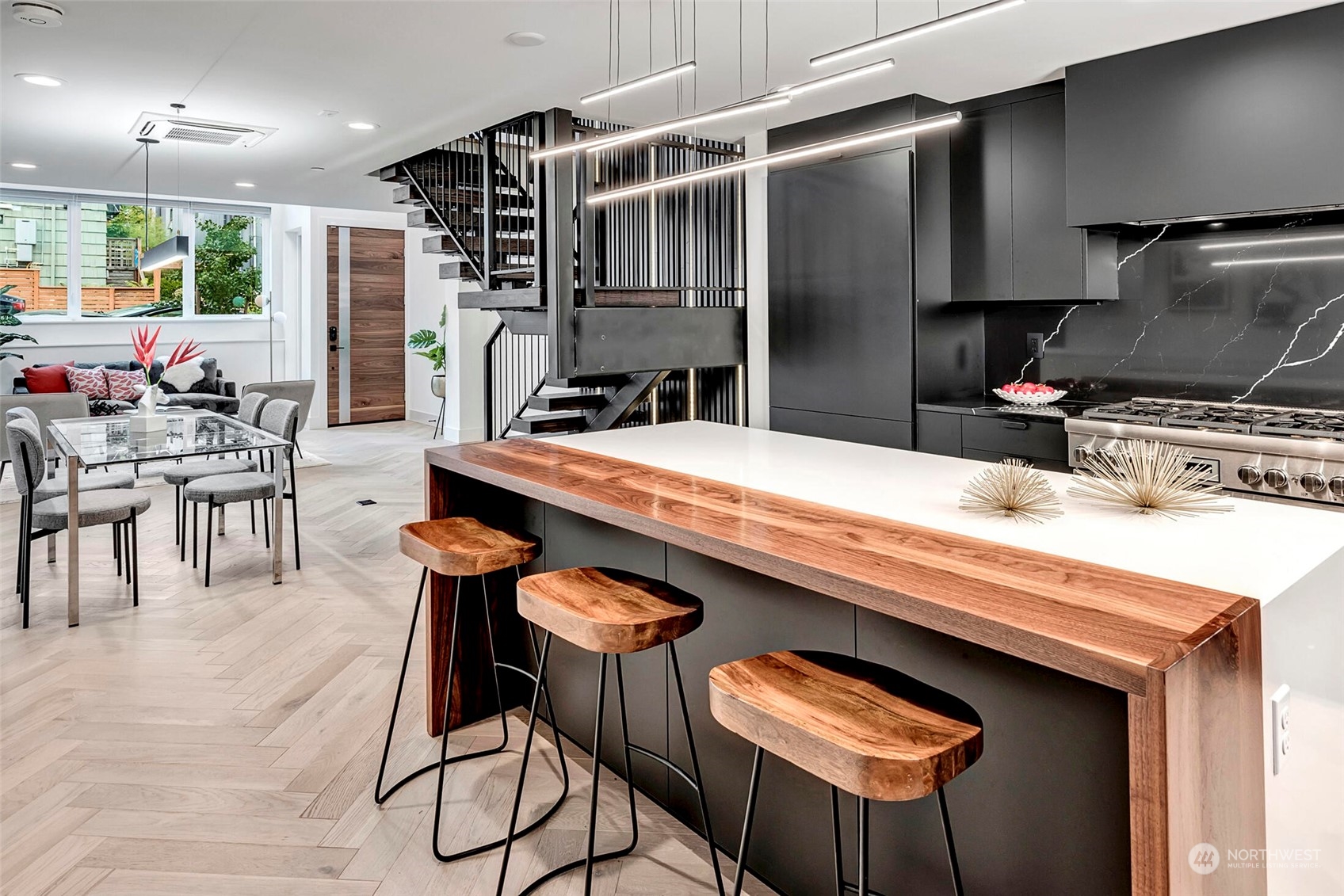 This Ultra Modern Westlake home offers a refreshing approach to luxury living. Fall in love with this home’s chic design, soaring ceilings, and Lake Union views. The huge top floor provides an incredible indoor/outdoor living room with north-facing NanaWall, a kitchenette, and access to the spacious roof deck - perfect for twilight BBQs, or game day fun. When it’s time to throw that dinner party, enjoy creating delicious meals in your sleek kitchen complete with Smart Home appliances. This home is chock full of Smart Home tools ready to make your life easier and keep your utility bills low. Leave your car in the garage because you are minutes away from Meta, Google, SLU, Downtown, Fremont, Seattle Center & Westlake Bikeway.