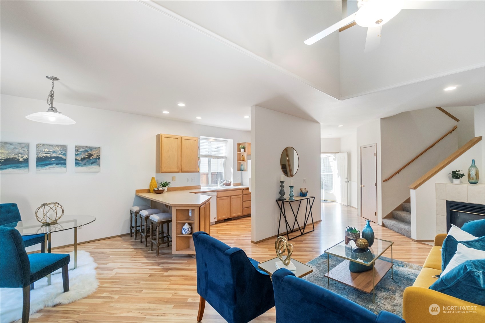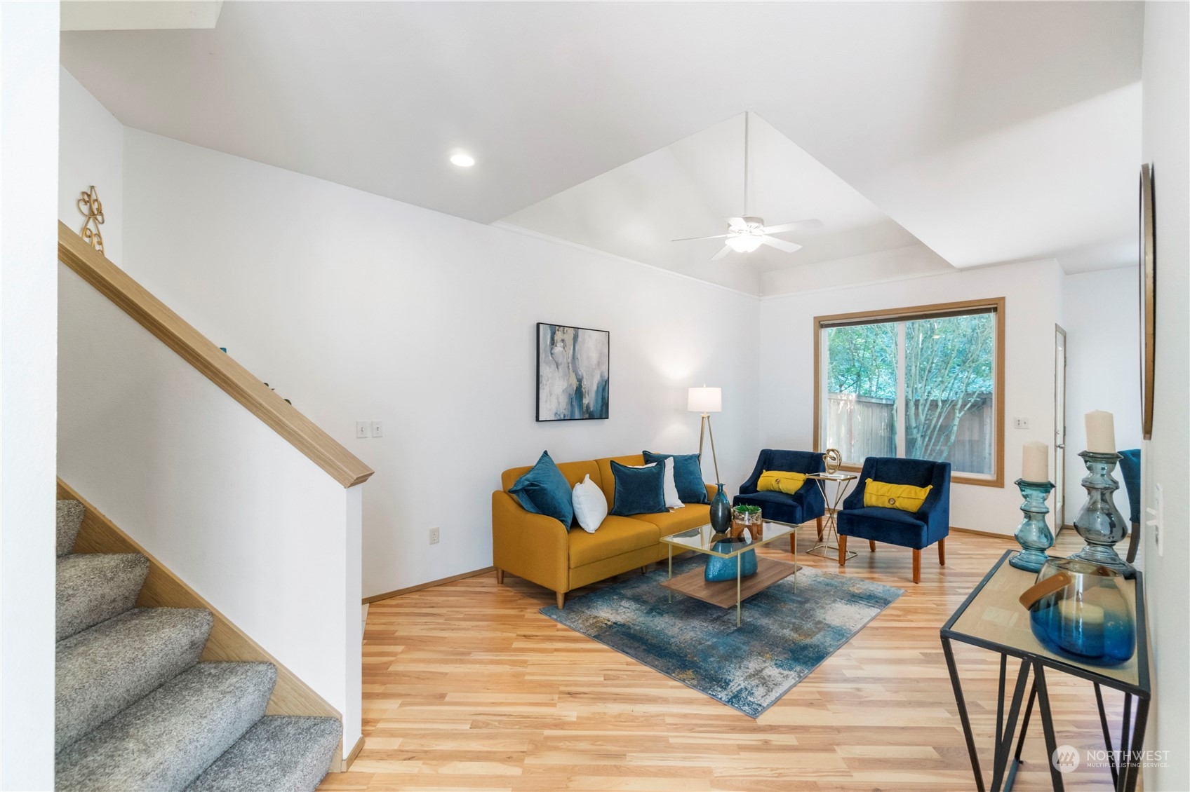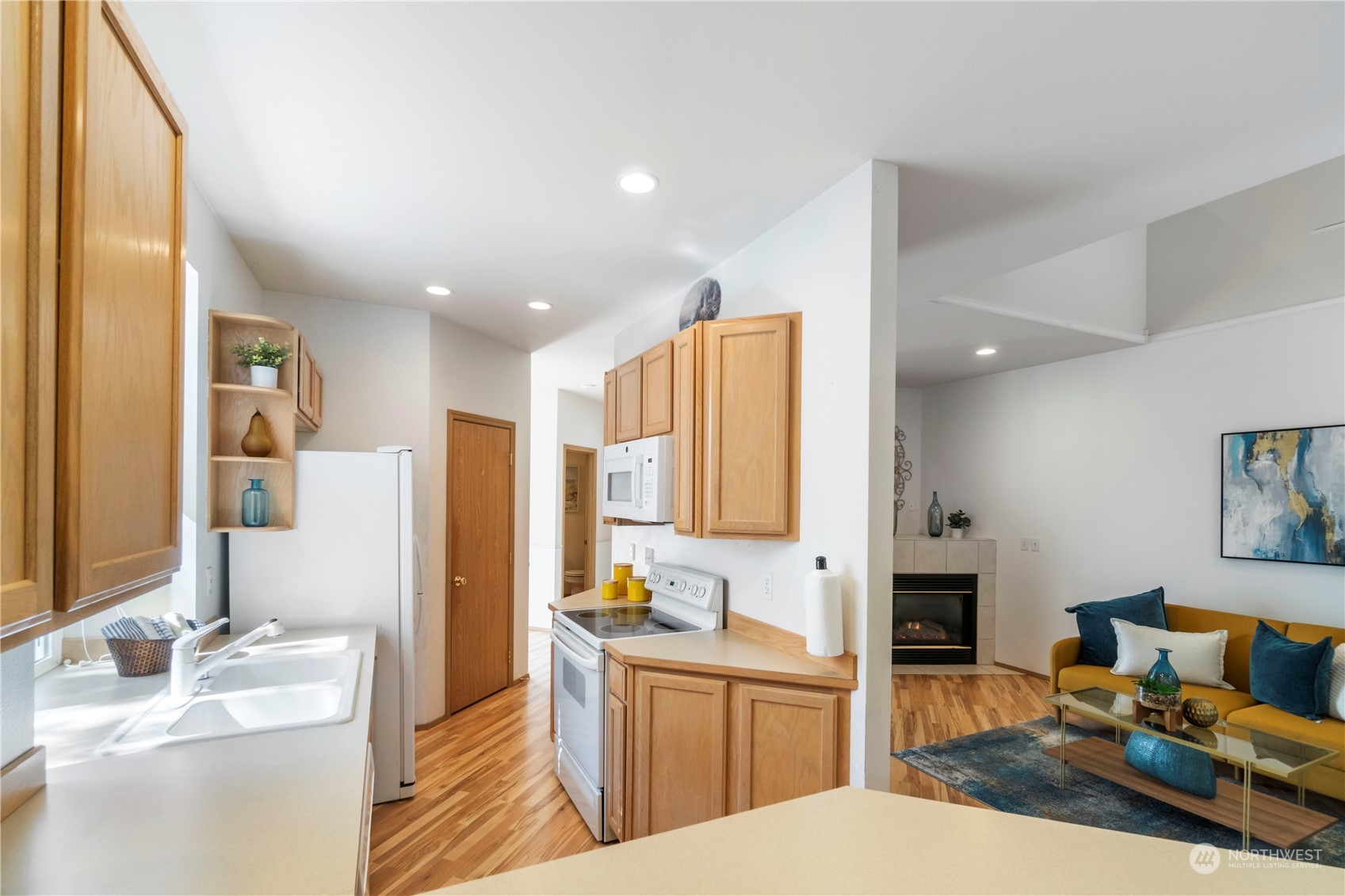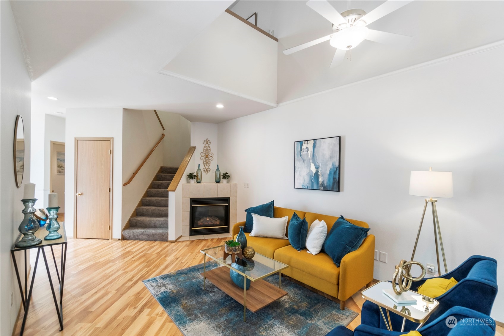 Scenic and Move-In Ready Townhome in a quiet Puyallup setting. This 3 Bed 2.25 Bath home features a cozy yet spacious living area with Fireplace, laminate flooring, and vaulted ceilings. Freshened up with Brand New Carpet throughout stairs and upper floor. Full Primary Suite PLUS 2 more Beds, Extra full Bath, and Utility Room all conveniently upstairs. Home is set against a large Greenbelt creating a Peaceful & Serene Private Fully-Fenced backyard: Perfect for entertaining or just relaxing! Garage features extra storage above. HOA covers exterior, roof, front/side yard maintenance, PLUS playground, sports court & common areas. Located near all Puyallup & South Hill shopping/amenities/nightlife. Desirable and Highly-Rated Puyallup Schools.