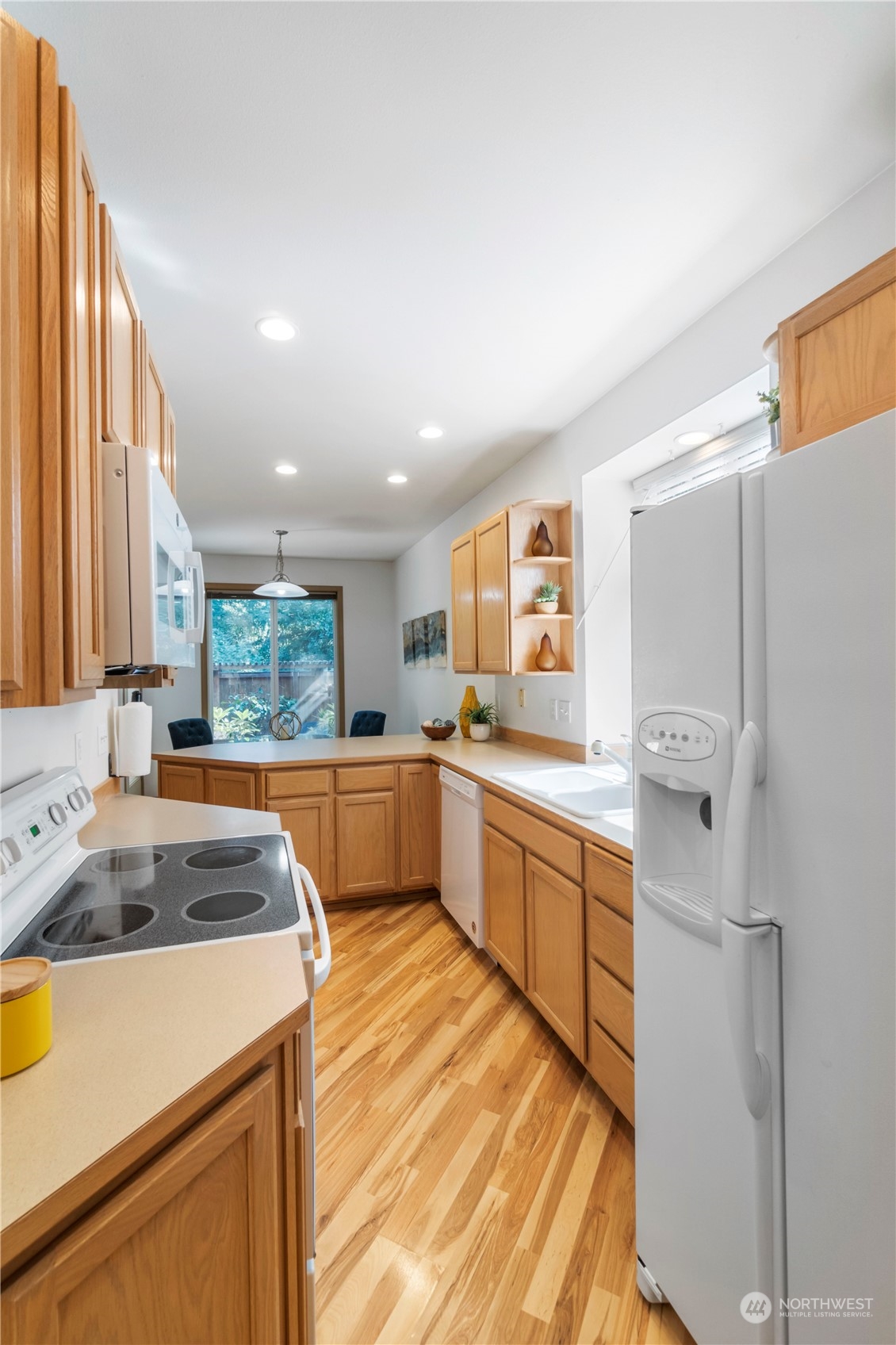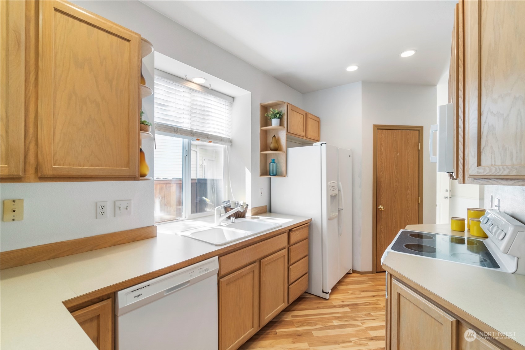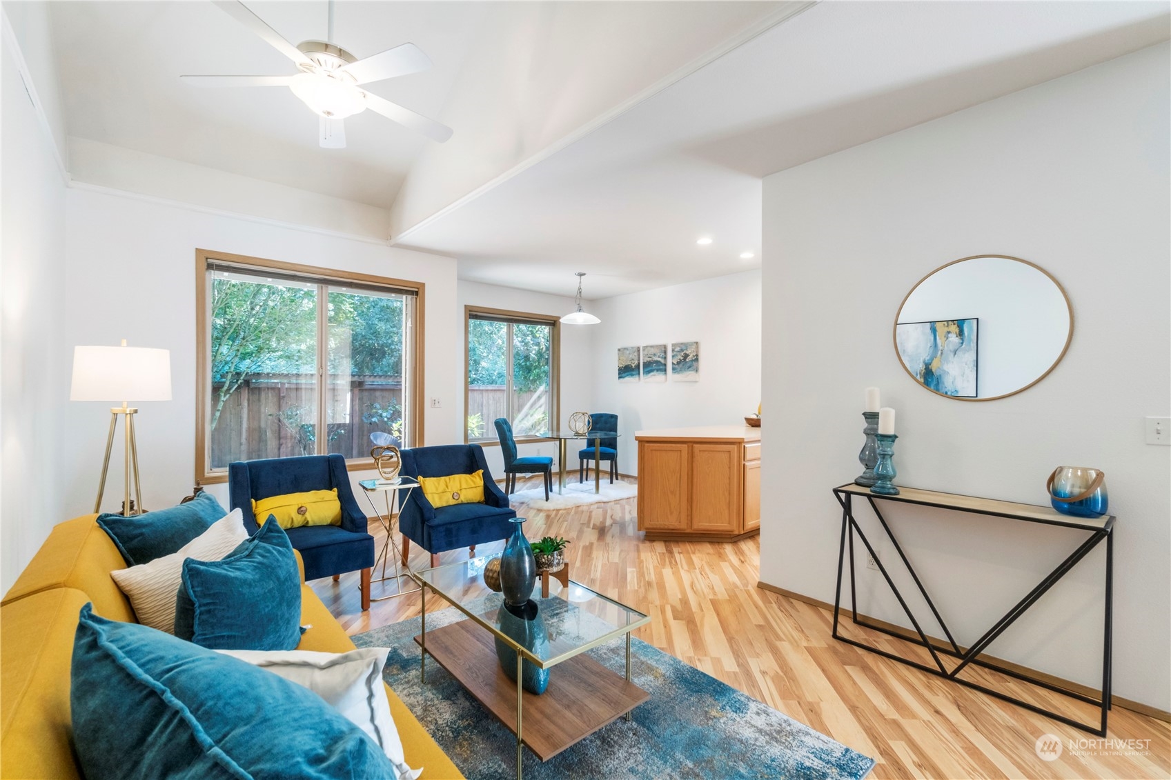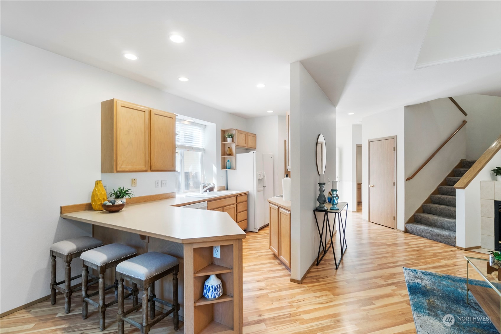 Scenic and Move-In Ready Townhome in a quiet Puyallup setting. This 3 Bed 2.25 Bath home features a cozy yet spacious living area with Fireplace, laminate flooring, and vaulted ceilings. Freshened up with Brand New Carpet throughout stairs and upper floor. Full Primary Suite PLUS 2 more Beds, Extra full Bath, and Utility Room all conveniently upstairs. Home is set against a large Greenbelt creating a Peaceful & Serene Private Fully-Fenced backyard: Perfect for entertaining or just relaxing! Garage features extra storage above. HOA covers exterior, roof, front/side yard maintenance, PLUS playground, sports court & common areas. Located near all Puyallup & South Hill shopping/amenities/nightlife. Desirable and Highly-Rated Puyallup Schools.