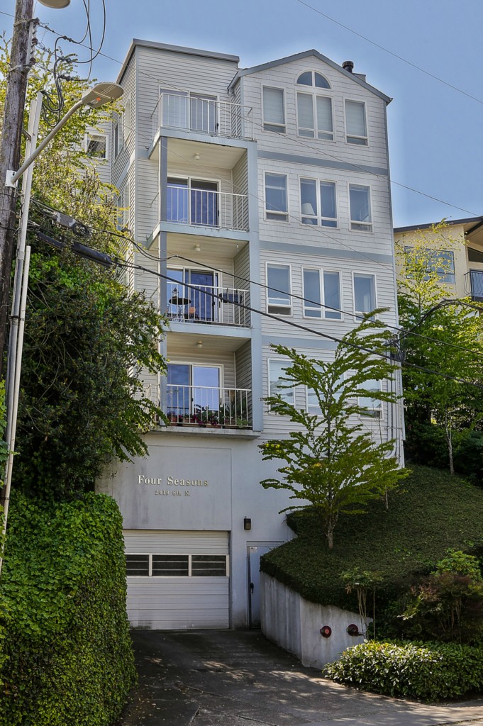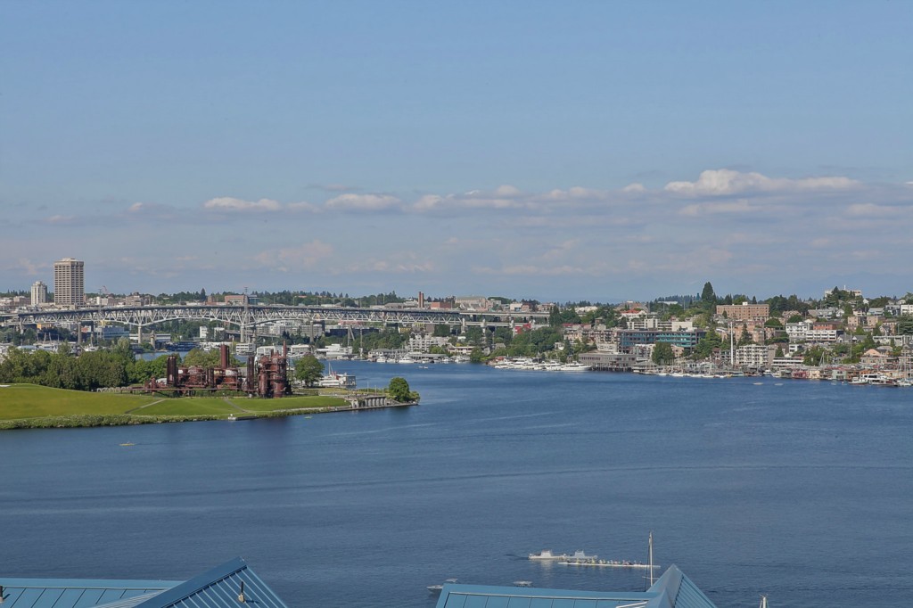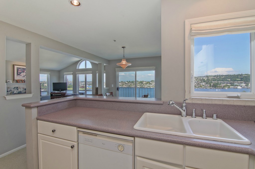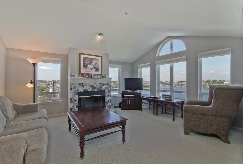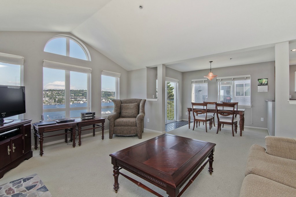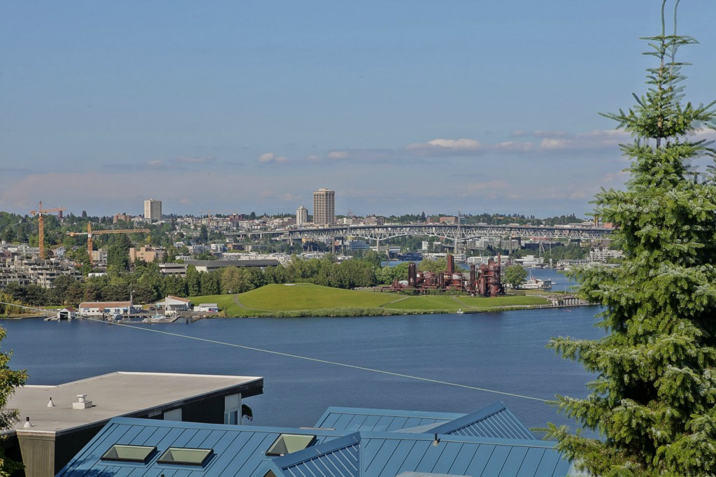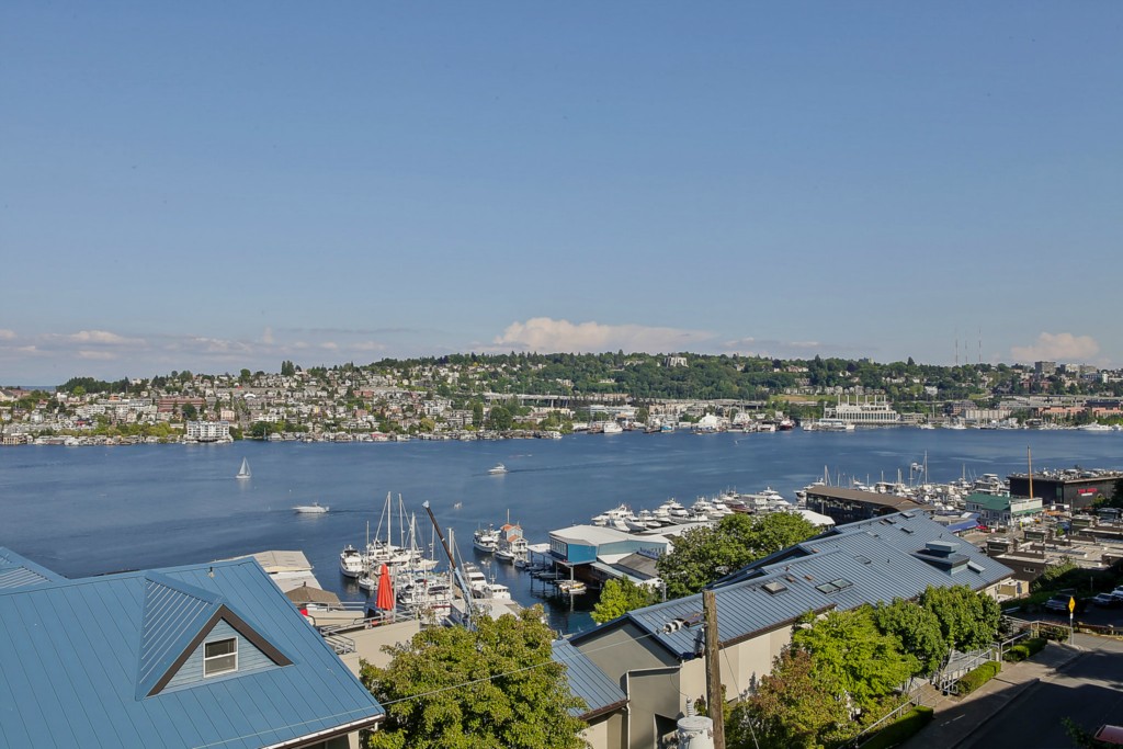Spectacular views of Lake Union, Gas Works Park, Cascades, city skyline and more! Top floor, walls of windows, two decks, one level, skylights, vaulted ceilings. Open floor plan with views from all rooms. Master suite with walk in closet, soaking tub, Chihuly glass sinks, custom closets throughout. Walking distance to Amazon and South Lake Union. Quiet as can be sitting proudly up above Lake Union and below Dexter Avenue. Garage parking and storage. A perfect place to call home.