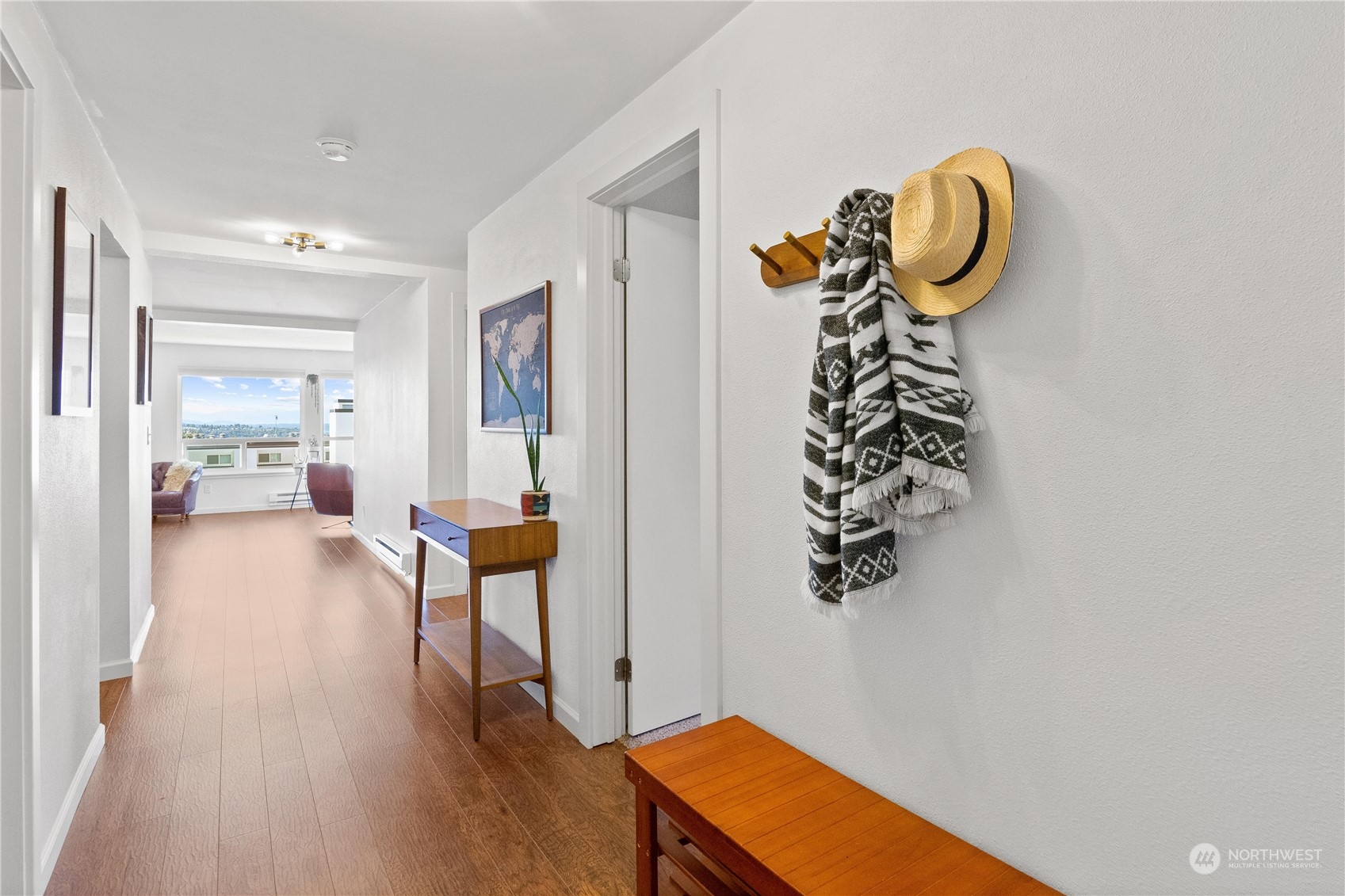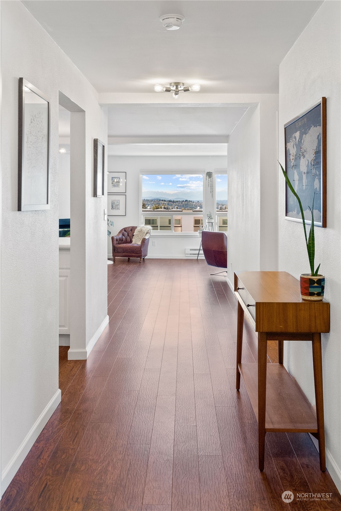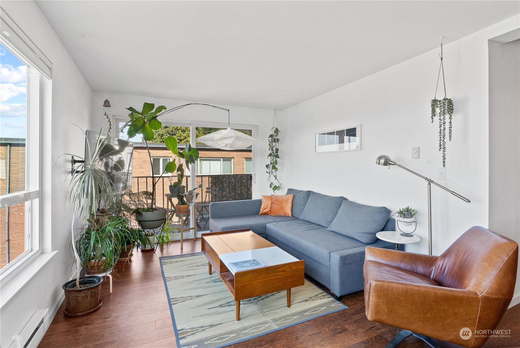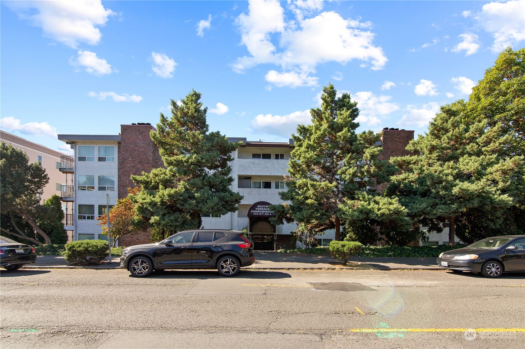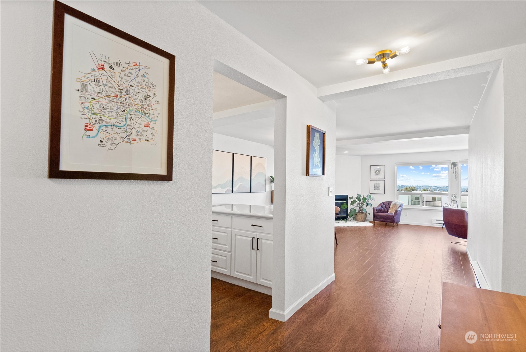 Feel the cozy wood-burning fireplace while basking in sunset glows silhouetted against the visible Olympic mountaintops! Light-filled, ultra-spacious corner end unit w/ gorgeous views of the Olympic mountains, stadium fireworks, downtown skyscrapers, peekaboo Puget Sound waters + Space Needle. Open concept living/dining, updated kitchen+baths, off-street indoor garage parking space (rare!), guest parking, laundry room, patio, storage unit, shared rec room. Desirable location: minutes drive access to I-5, I-90, bus lines 36 + 60; walk to International District, SODO, stadiums, neighborhood parks. Friendly, respectful HOA community, no rental cap, low dues, exterior/deck renovation upcoming. A must-see, unique gem in the city.