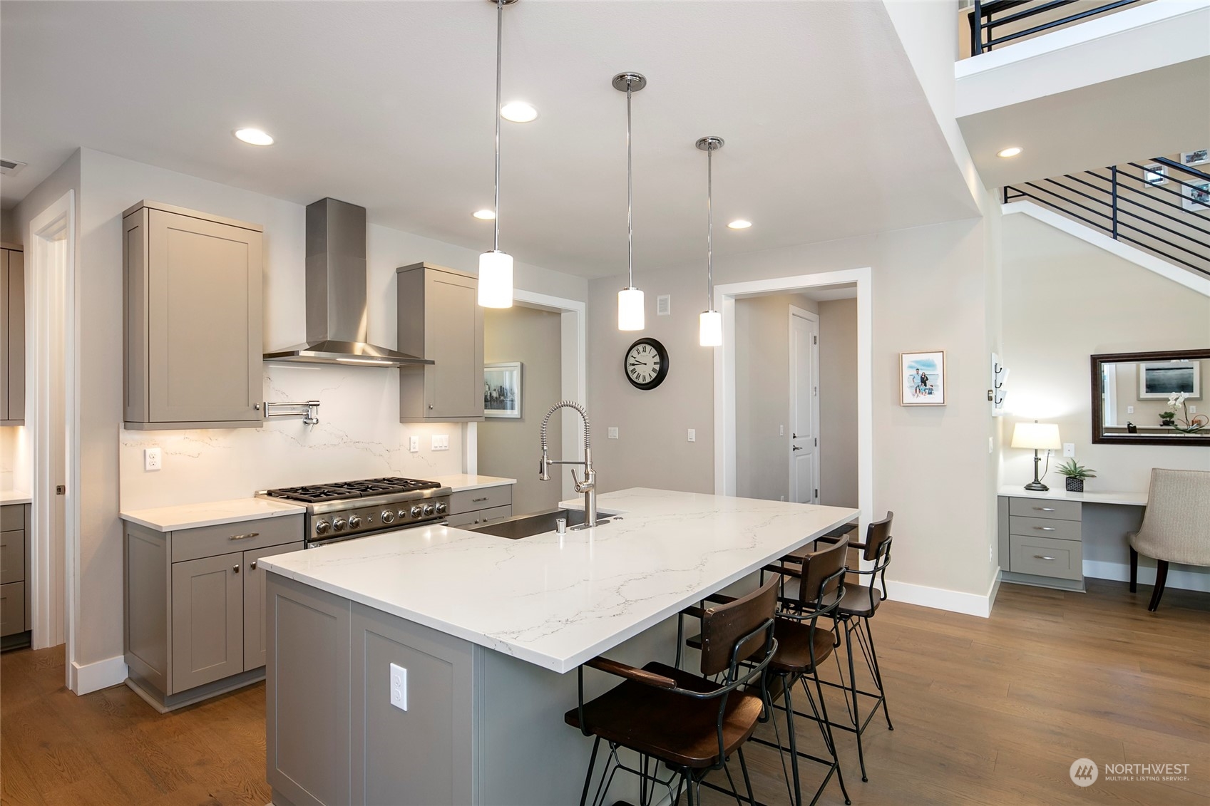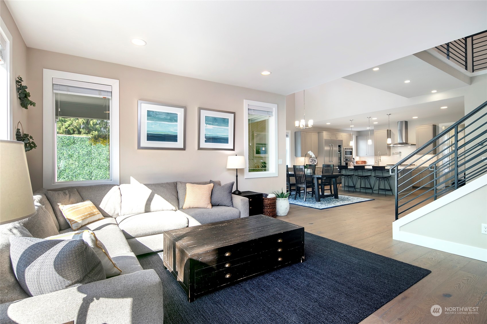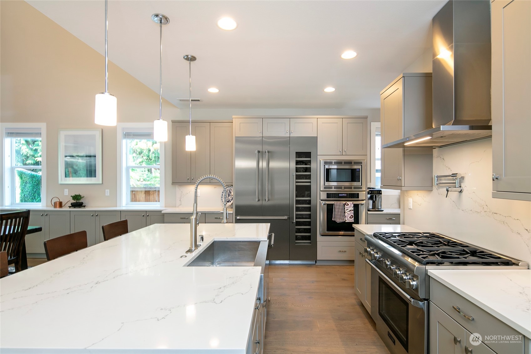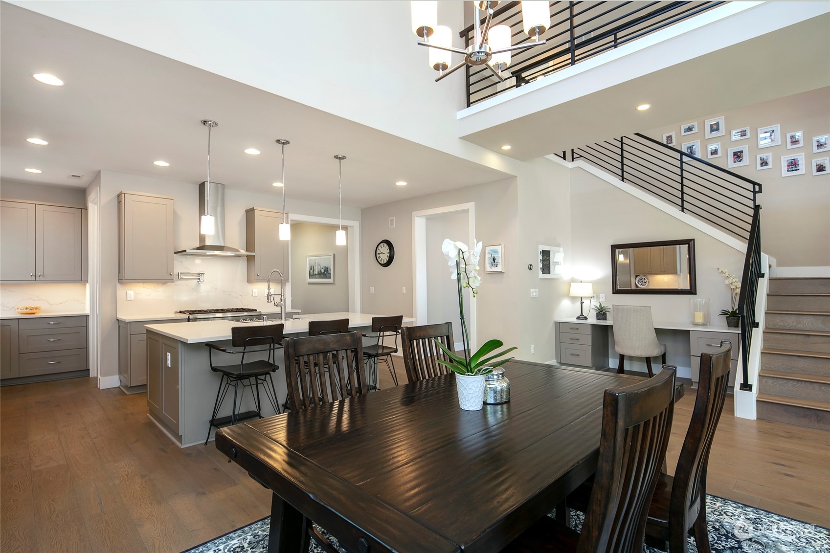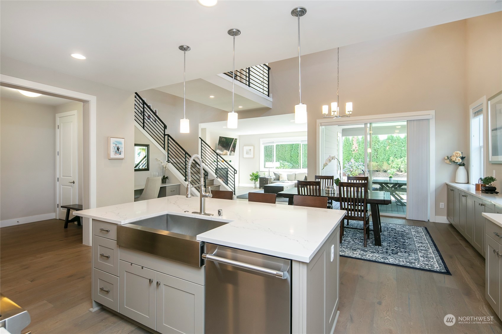 Picture the perfect marriage of contemporary architecture and luxe finishes. This stunning home welcomes you with a spacious open plan design, 9’ ceilings soaring to 2-stories in the generous dining area, and a kitchen that is a gourmet’s delight - it features Thermador appliances, a dual zone wine fridge, walk-in pantry, and bountiful storage and counter space. Plentiful windows fill the living areas with natural light. The primary suite is a peaceful retreat with a spa-like 5-piece bath and 2 walk-in closets. You will find 3 additional bedrooms, a full bath, a large laundry room with tons of storage and a bonus room on the upper level. The 3-car garage has great options for parking and storage. Just minutes from the heart of Woodinville.