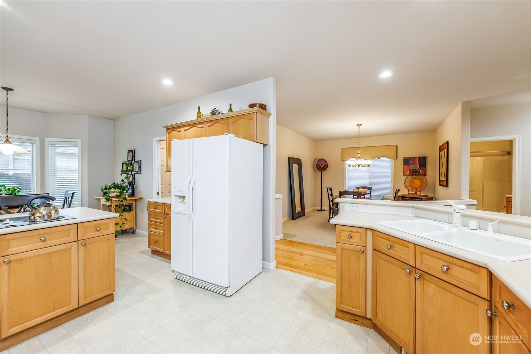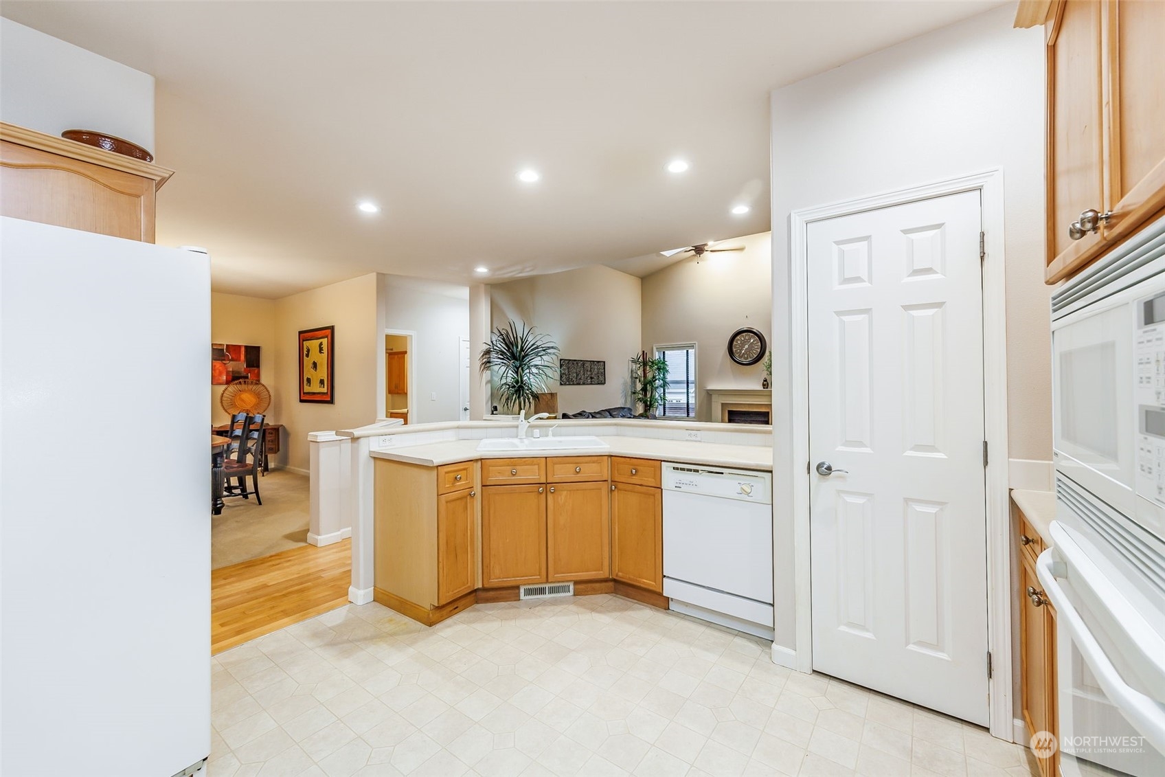 Welcome to a private & highly sought-after condo in Pemberton Creek! Floor plan features spacious 1,848 sq ft of one-level living. Off the entrance to the left is a den/office that could also double as a 3rd bedroom. To the right, walk into a large kitchen with a breakfast eating area & bartop seating. A separate formal dining room off the hall is spacious enough for a large dinner party. Vaulted ceiling & skylights let in natural light in the living room with gas fireplace to keep you warm. 2nd bedroom & full bath allow for privacy. Laundry room off the garage with utility sink & cabinets. Primary bedroom complete with 5-piece bath & walk-in closet. You will love the oversized 2-car garage with storage, heat pump, & low-maintenance yard.