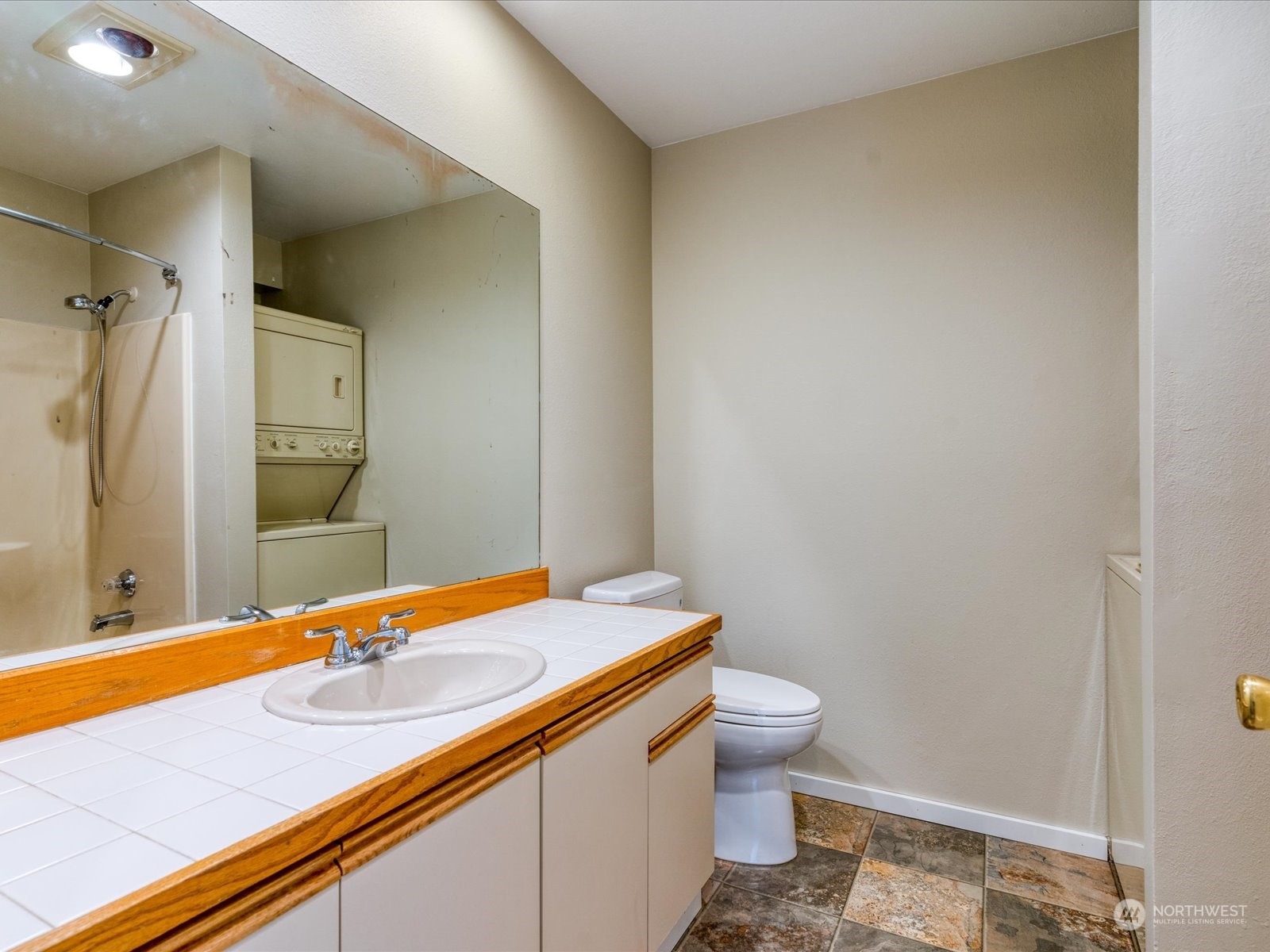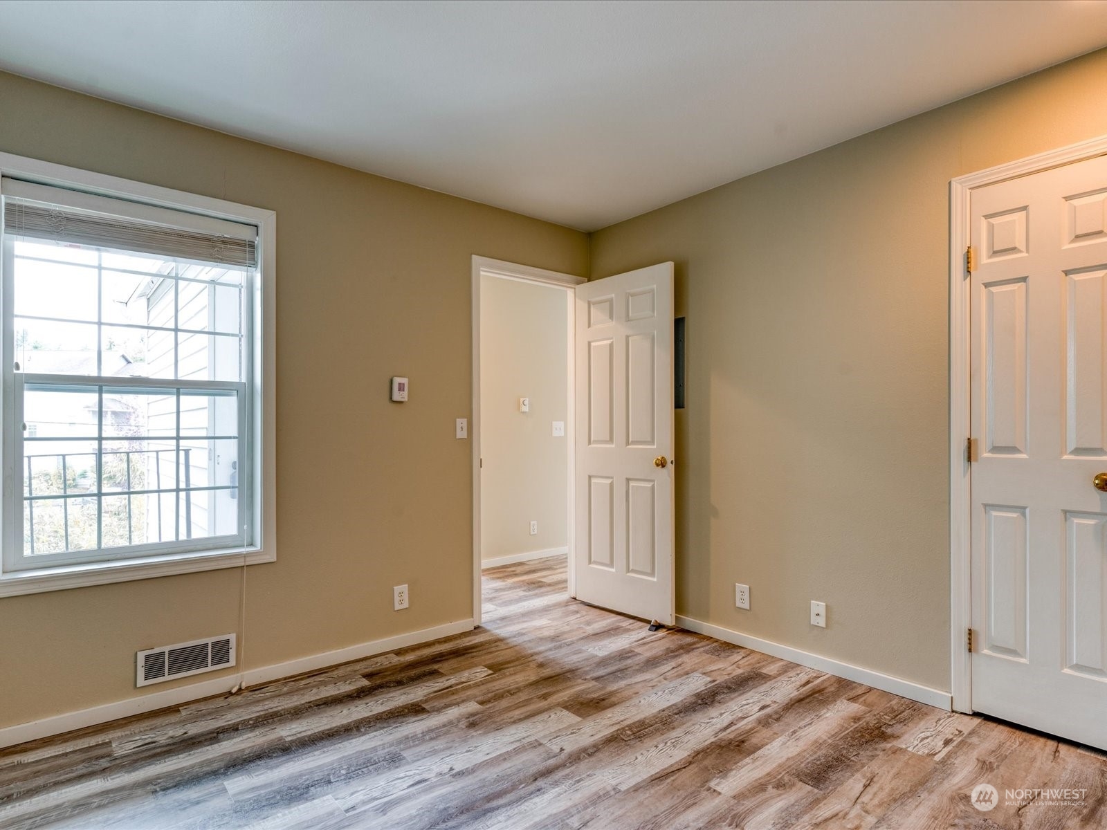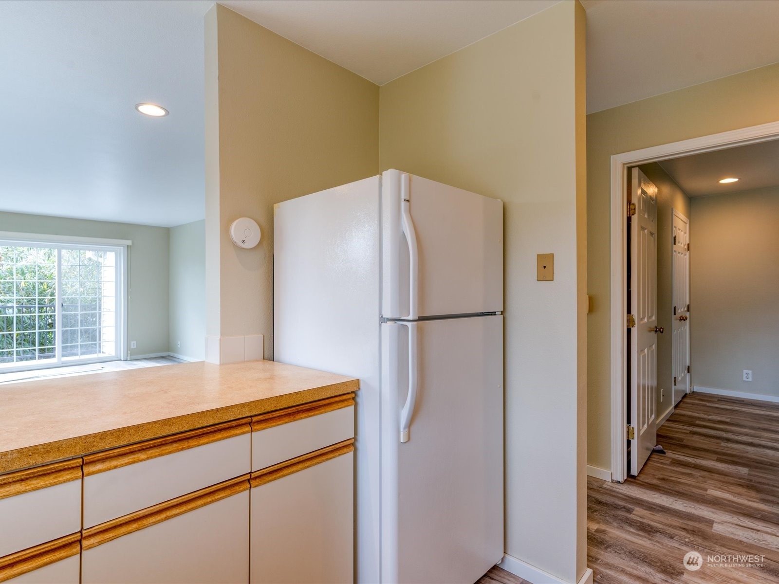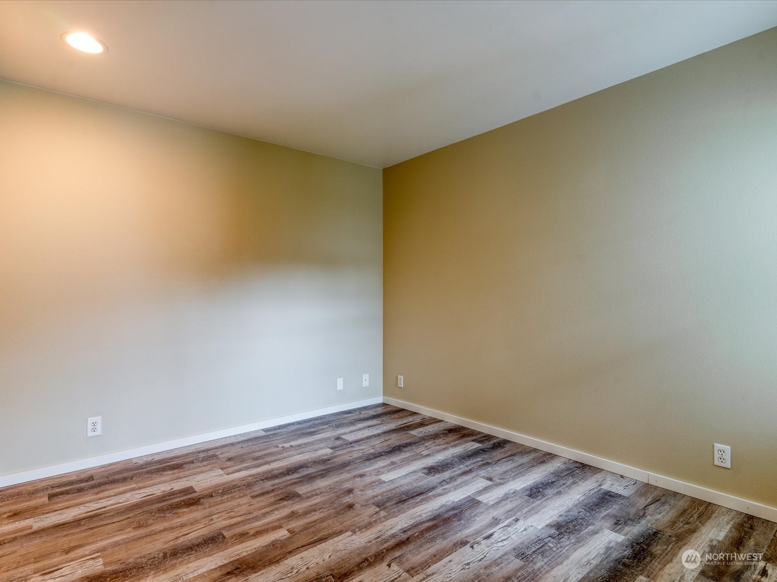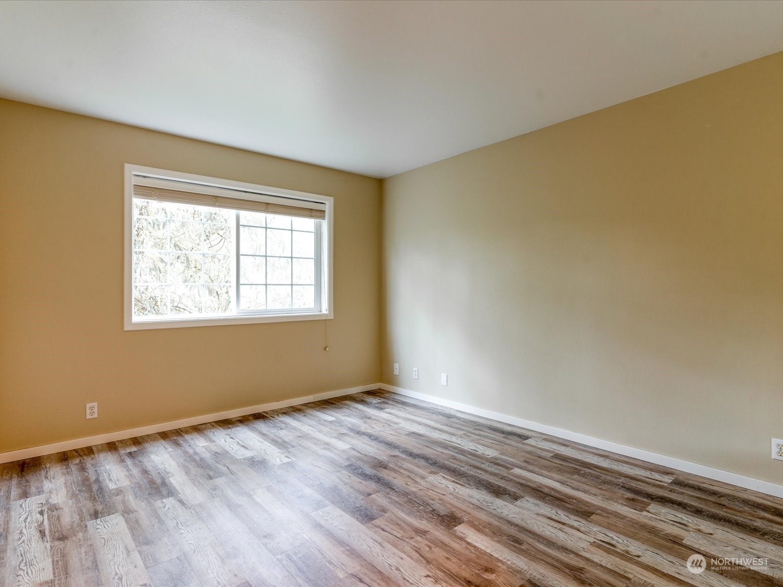 Freshly updated top floor corner unit with only one shared wall. New laminate hardwoods, paint, and trim throughout makes this place shine. The SW natural light makes it bright and the best location in the complex. There is green space below and easy access to I5 and Hwy 99.