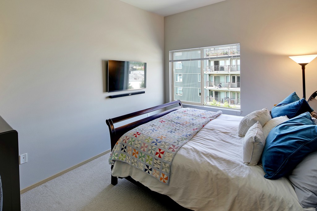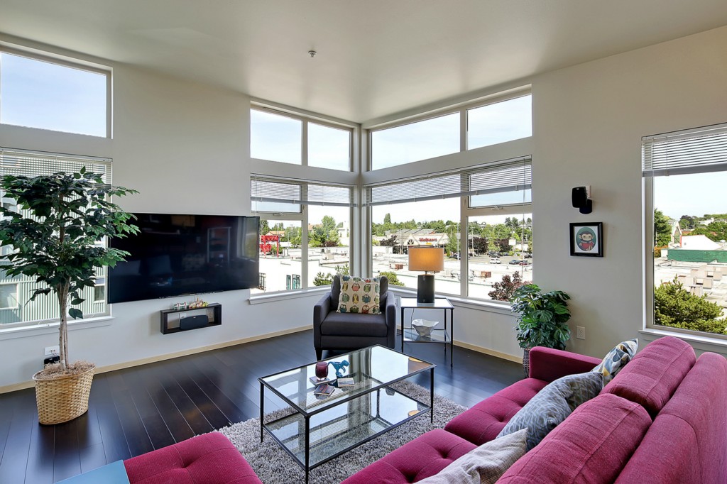 Bright, airy, spacious 2 BR/1.75 BA top floor corner unit. Huge windows & vaulted ceilings. Bamboo floors, tile baths, & carpeted bedrooms. Kitchen includes new fridge and stainless steel appliances. Large closets, secure garage parking & entrance, common patio, fitness center, & concierge station. Large Master has walk-in closet & room for a king size bed. Pets ok, with restrictions. Walk to local coffee shops, grocery stores, & restaurants. Near freeways, downtown, & stadiums.
