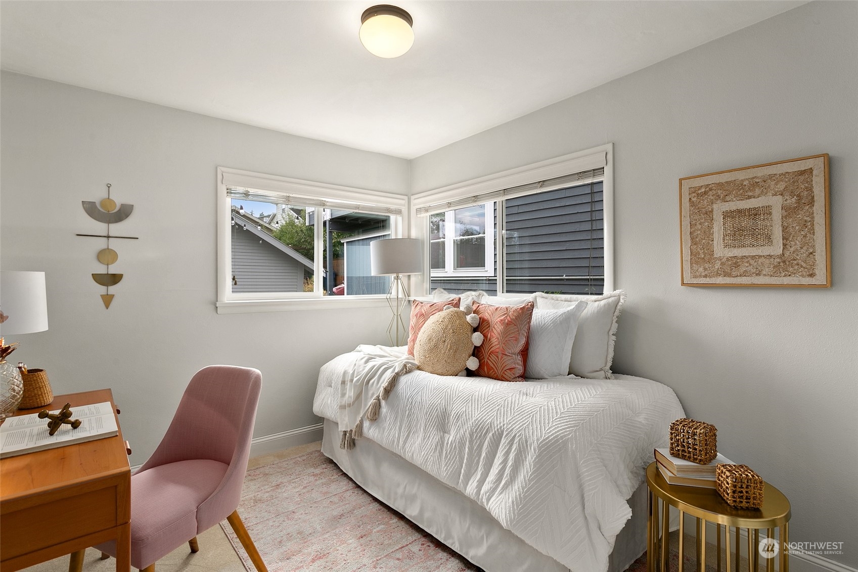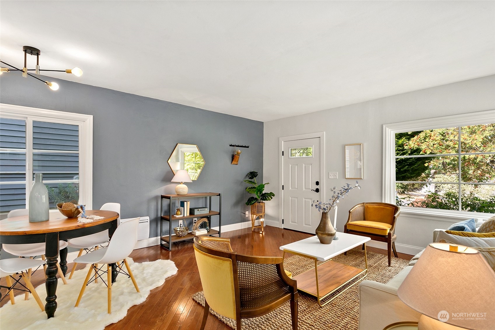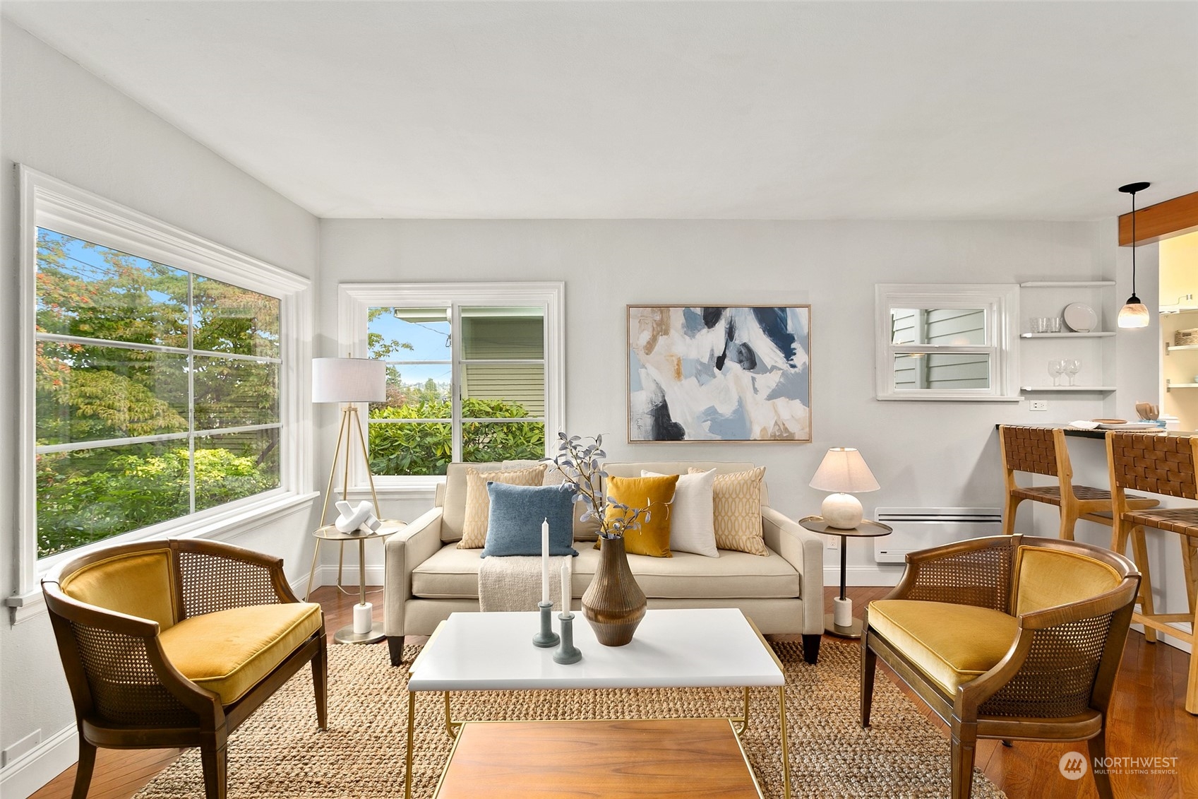 Stroll around Greenlake all year long, taking in each season’s colors and activity. Host friends for dinner on your spacious, serene patio under the twinkling cafe lights. Enjoy amazing community events like the Phinney Farmers Market (Fridays all summer long!), PhinneyWood Art Walk in the fall and Winter Market during the holidays. Charming. Bright. Cheerful. This adorable bungalow, a block from Greenwood Ave and all it offers, has an open floorplan with abundant natural light and lives much larger than its square footage. Plus a list of improvements: tankless water heater, bathroom's heated floors, 50 year new roof in 2013, new exterior paint and carpet in 2022 and more. The outdoor space will surprise and delight you as well!