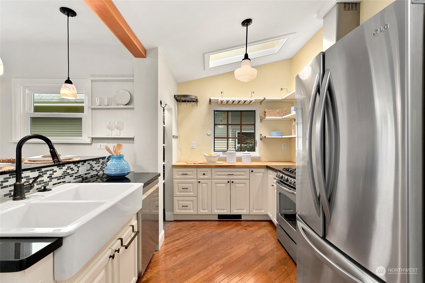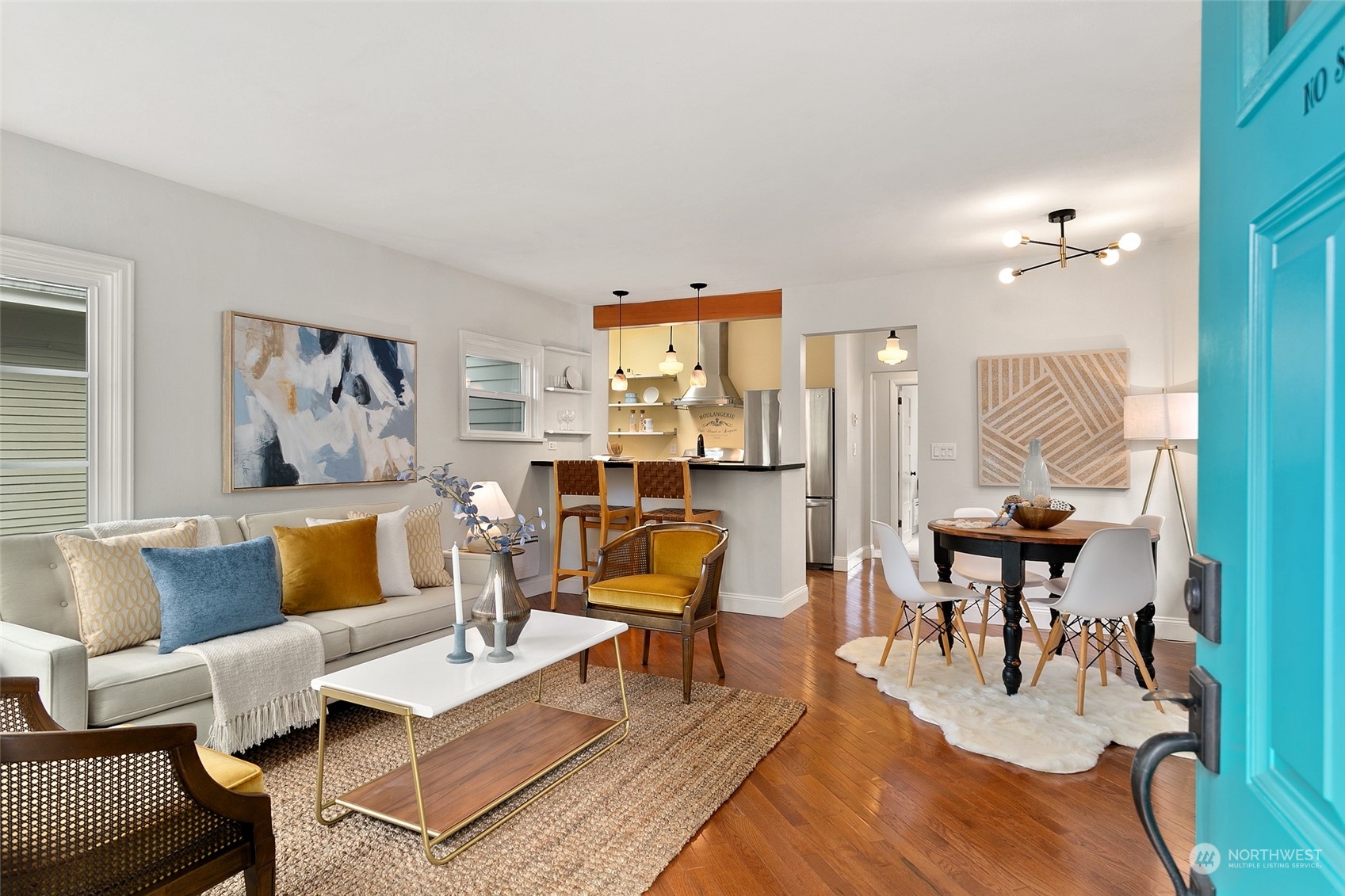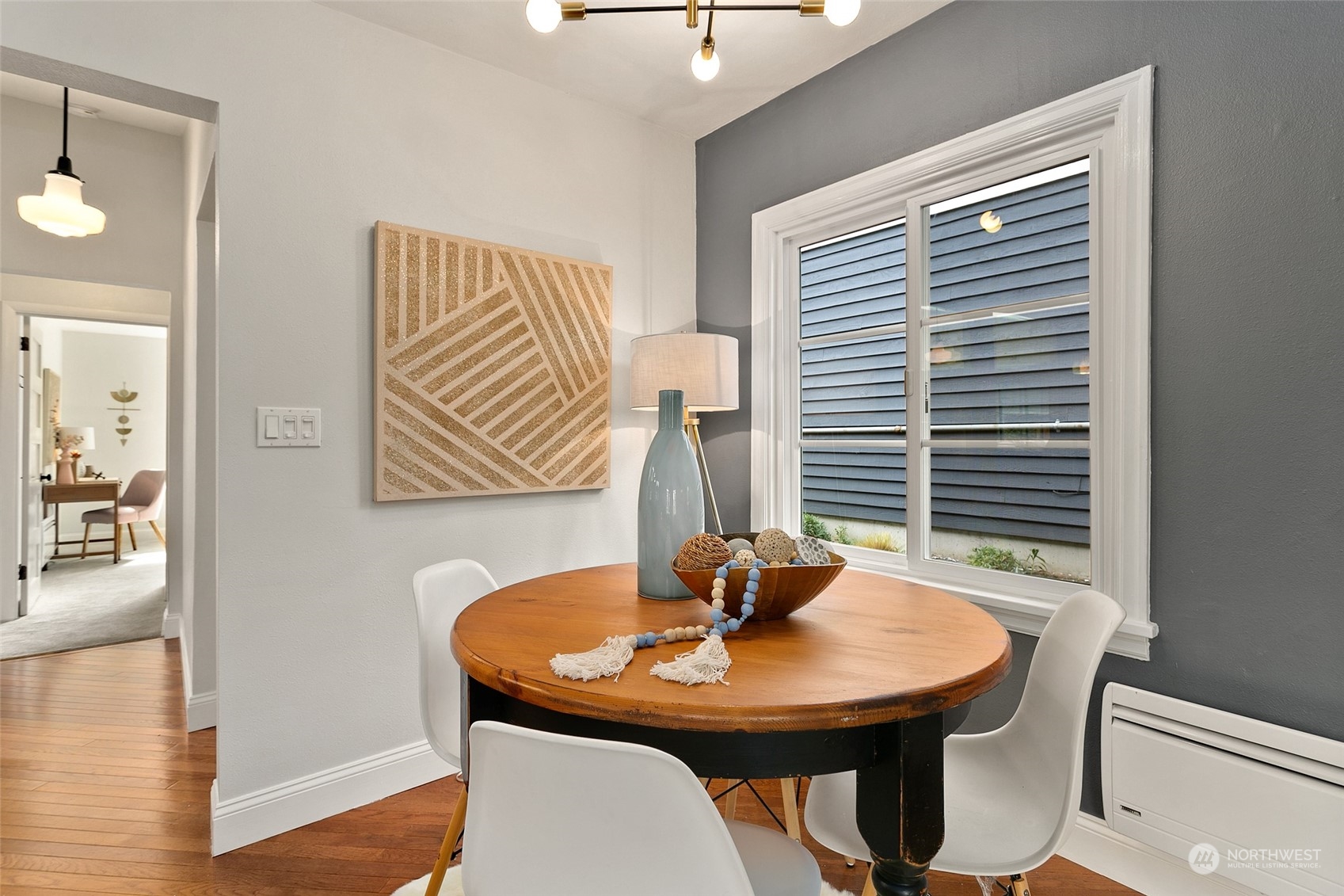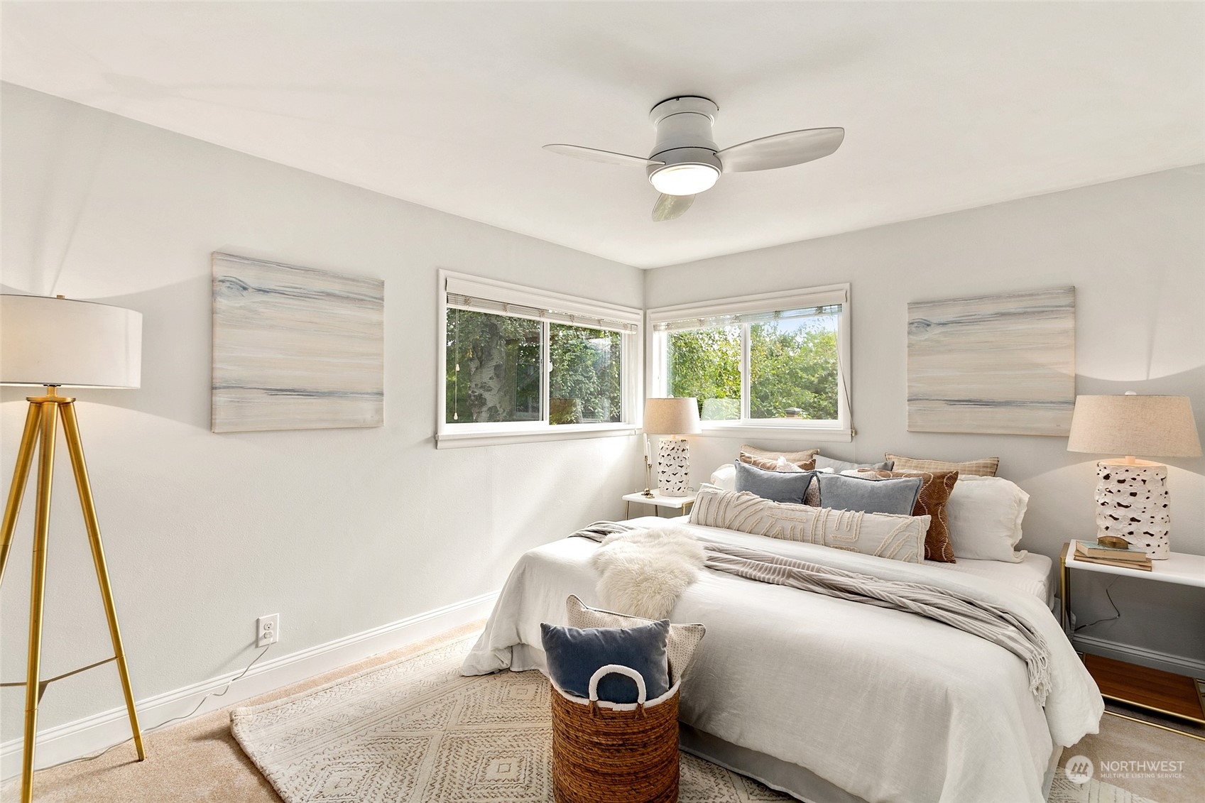 Stroll around Greenlake all year long, taking in each season’s colors and activity. Host friends for dinner on your spacious, serene patio under the twinkling cafe lights. Enjoy amazing community events like the Phinney Farmers Market (Fridays all summer long!), PhinneyWood Art Walk in the fall and Winter Market during the holidays. Charming. Bright. Cheerful. This adorable bungalow, a block from Greenwood Ave and all it offers, has an open floorplan with abundant natural light and lives much larger than its square footage. Plus a list of improvements: tankless water heater, bathroom's heated floors, 50 year new roof in 2013, new exterior paint and carpet in 2022 and more. The outdoor space will surprise and delight you as well!